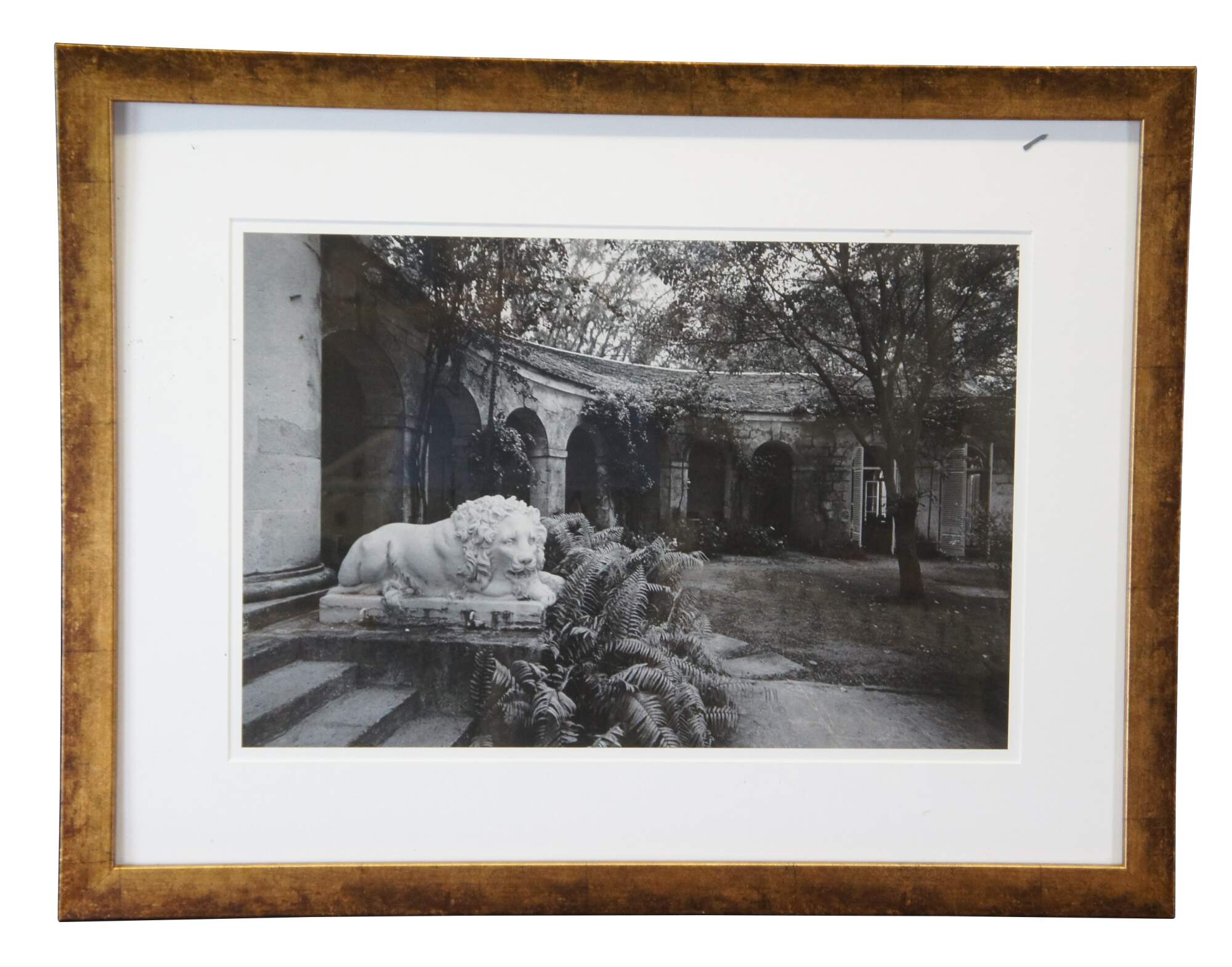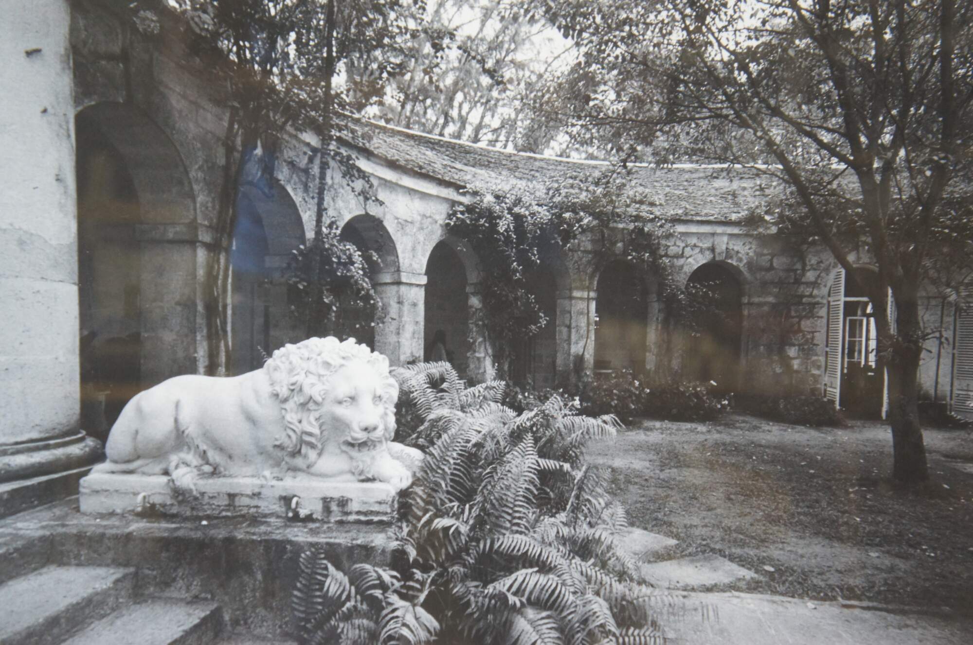 A sculpture of a lion in a garden by Patrick Litchfield