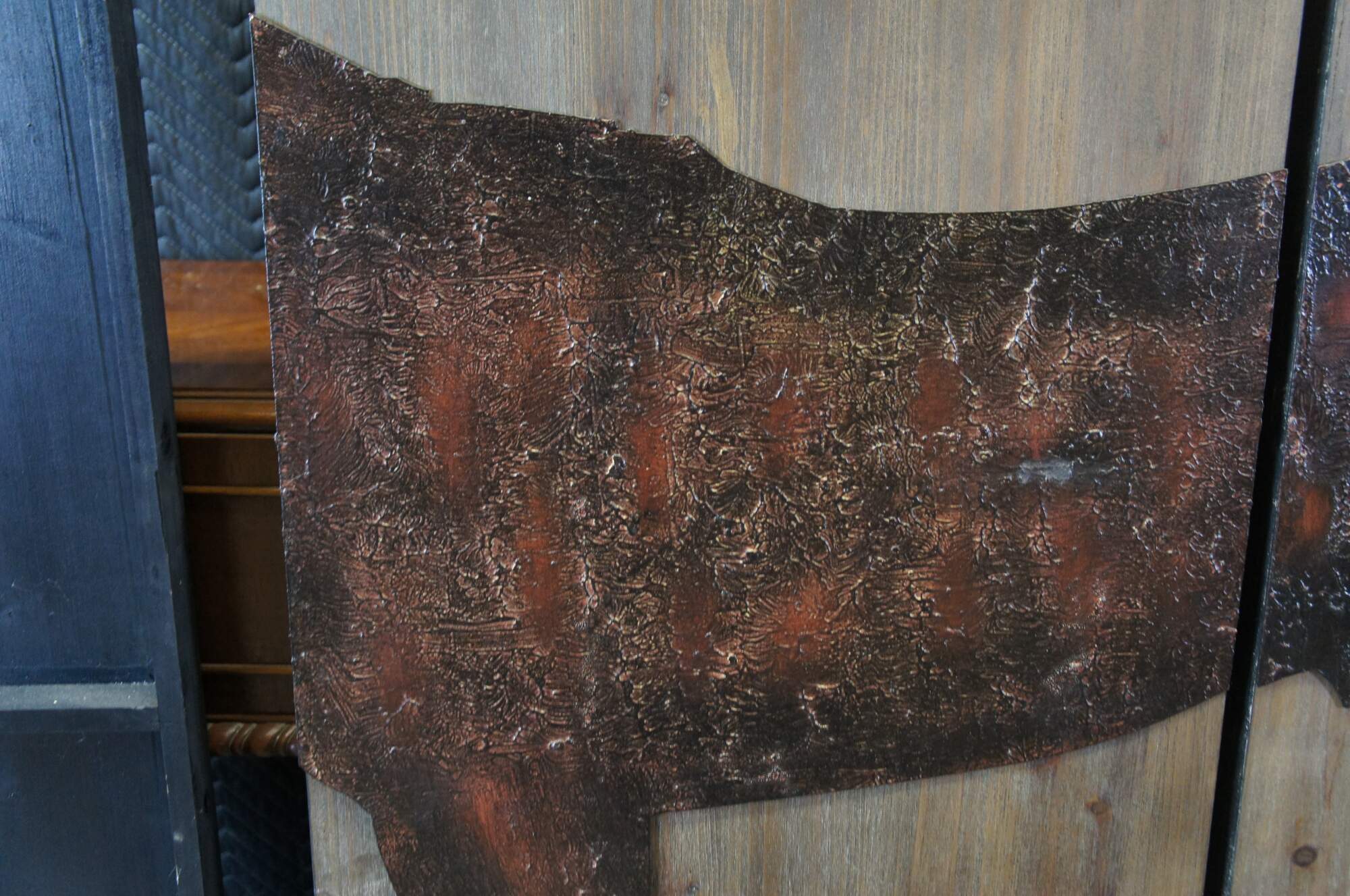 The rustic silhouette of this gallant steed is a bold design for any space! With three wooden panels, each piece features a weathered finish and bronze metal rivets.