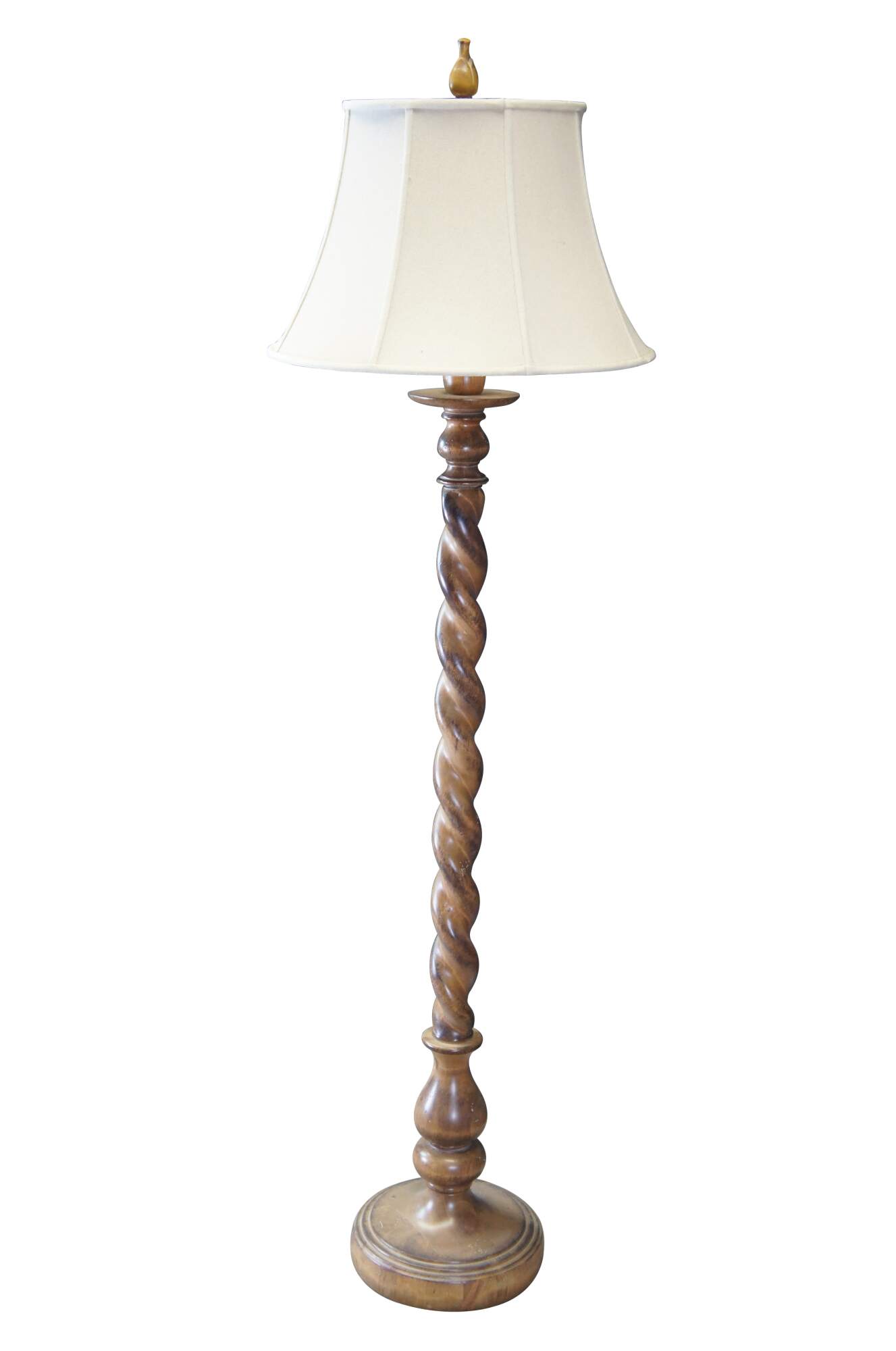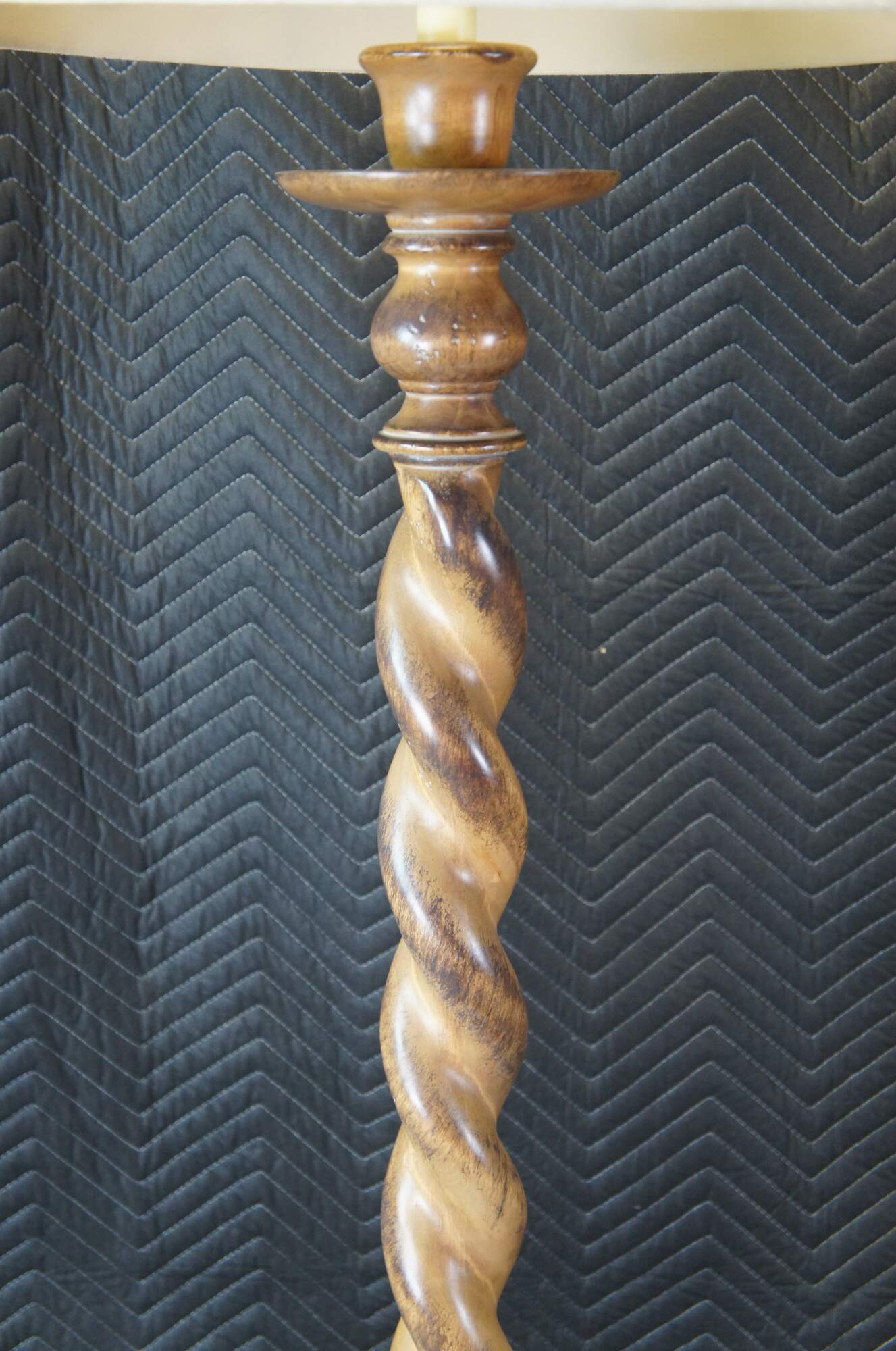 Handmade Italian Barley Twist Floor Lamp. Natrually distressed with candlestick design, tapered shade and tulip finial.