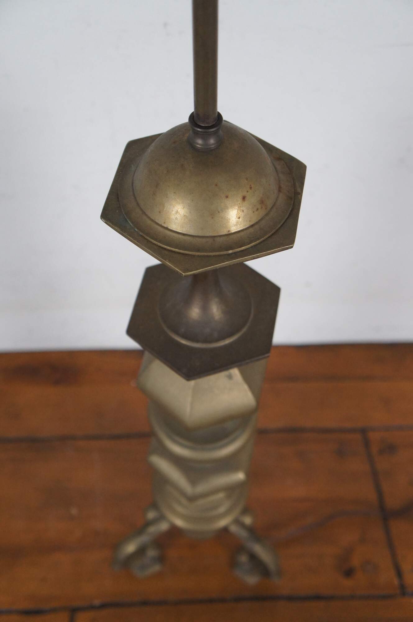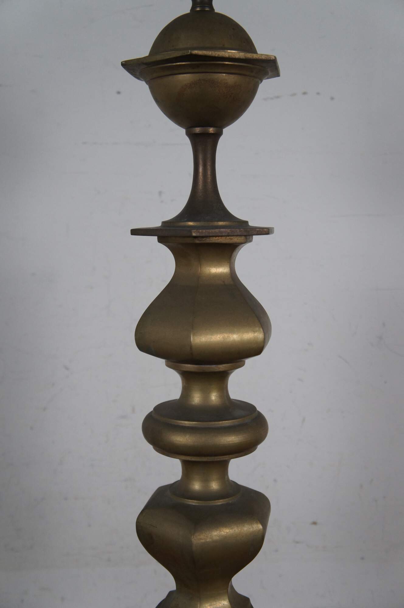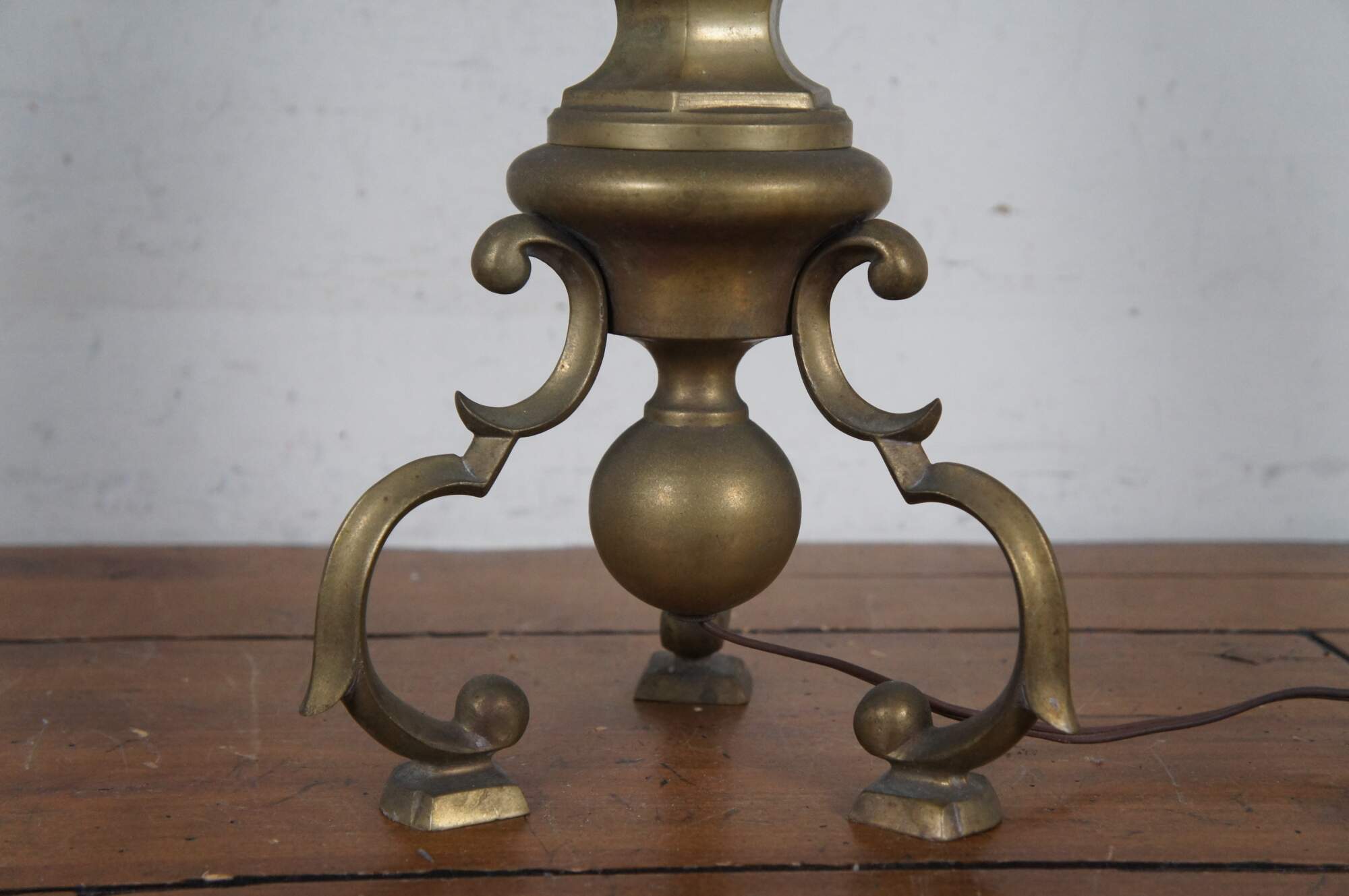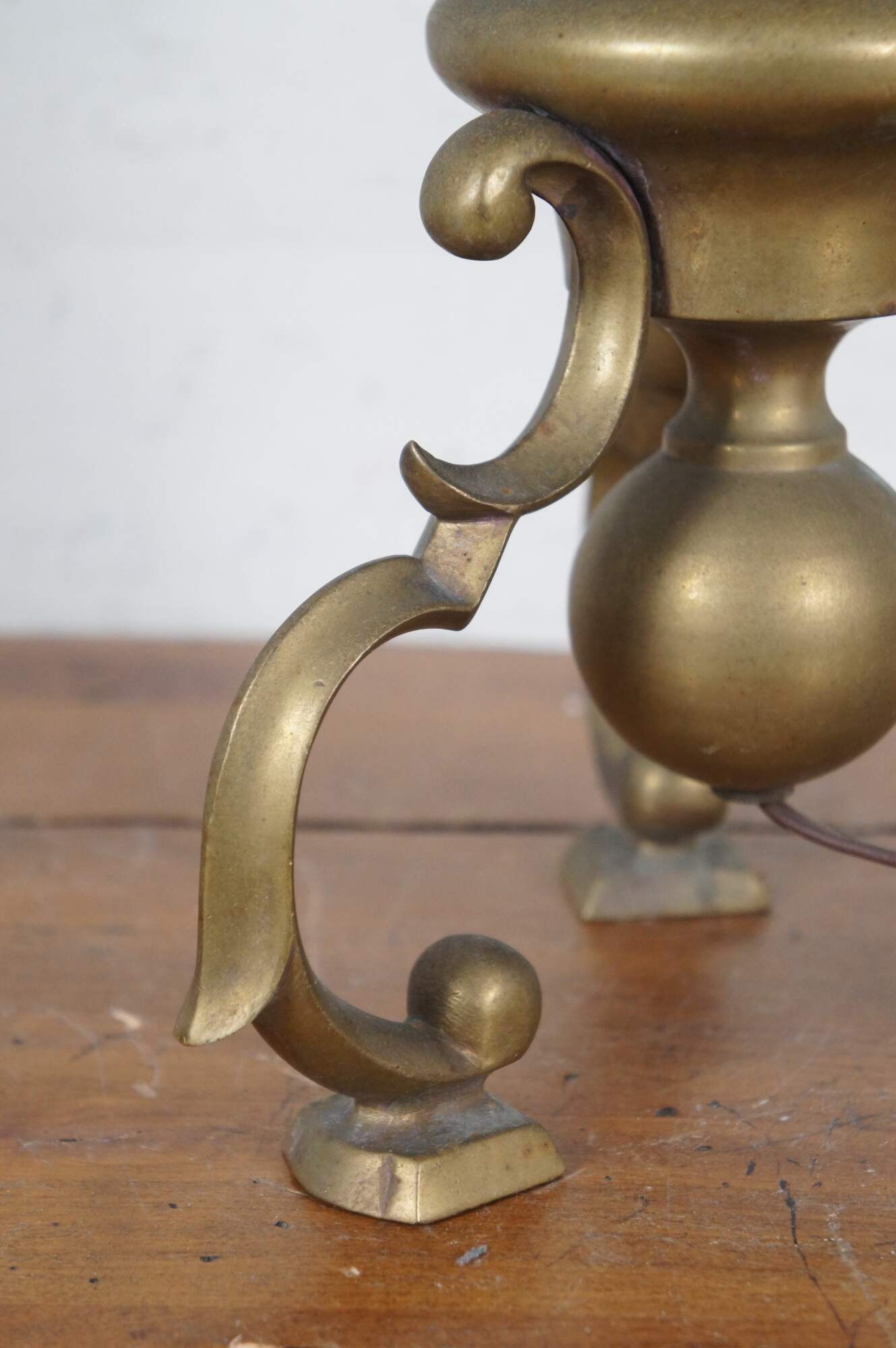 Pair of mid century Hollywood Regency Chapman brass two light table lamps, featuring a turned baluster design supported on three scrolled legs. Circa 1977.