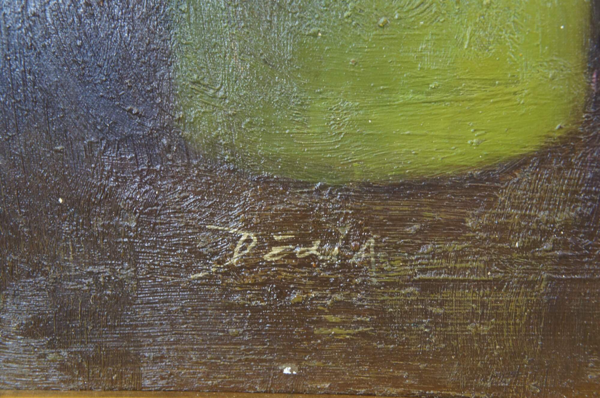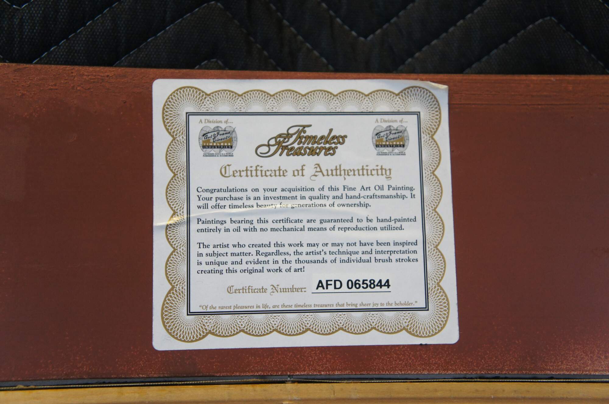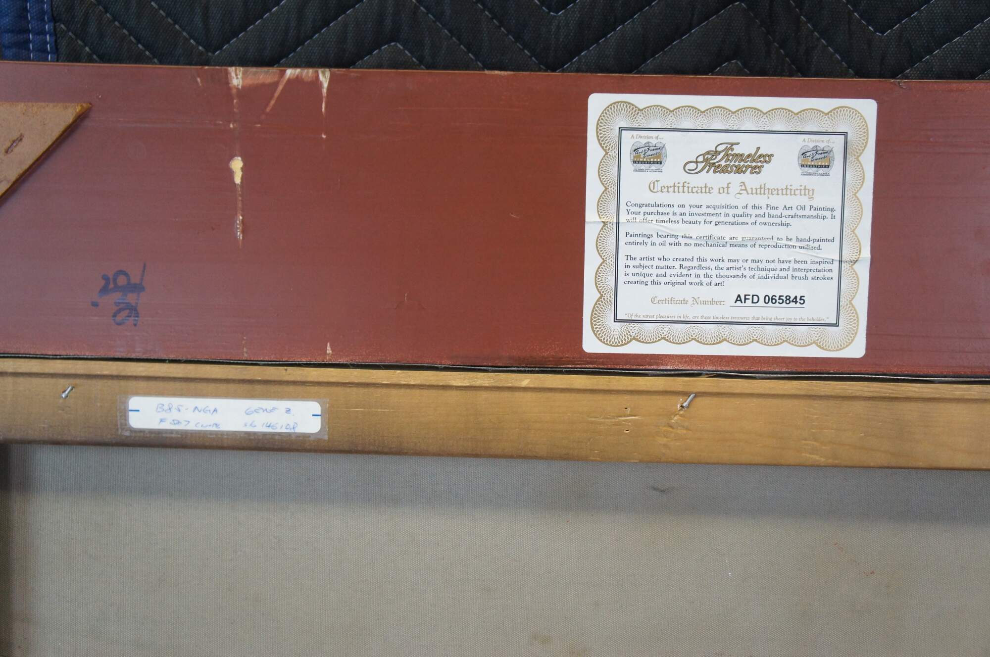 Set of 3 realist oil paintings on canvas, circas 1990s. Each painting features a southwestern pottery scene with vases and jars. signed by Delia lower left. The paintings are framed in pine with a dark wood tone and gold trim. Each painting Includes a COA from Timeless Tresures