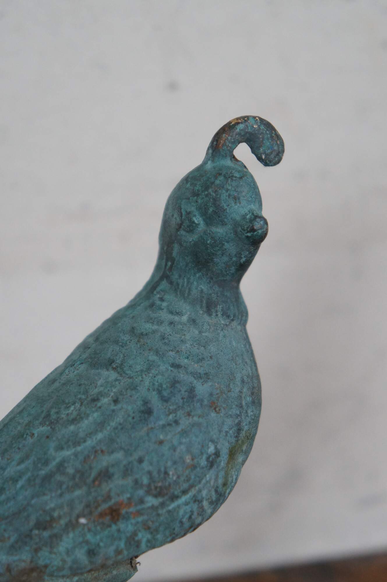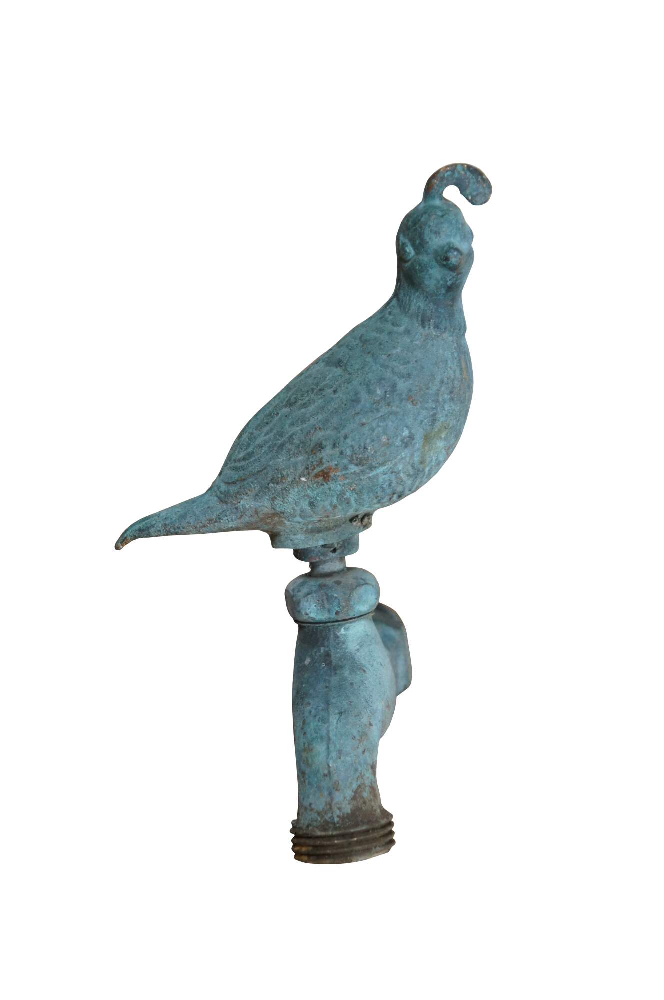 Vintage brass hunt theme water faucet / garden hose spigot with handle in the shape of a California Gambel's Quial - featuring the distinctive head plumage.