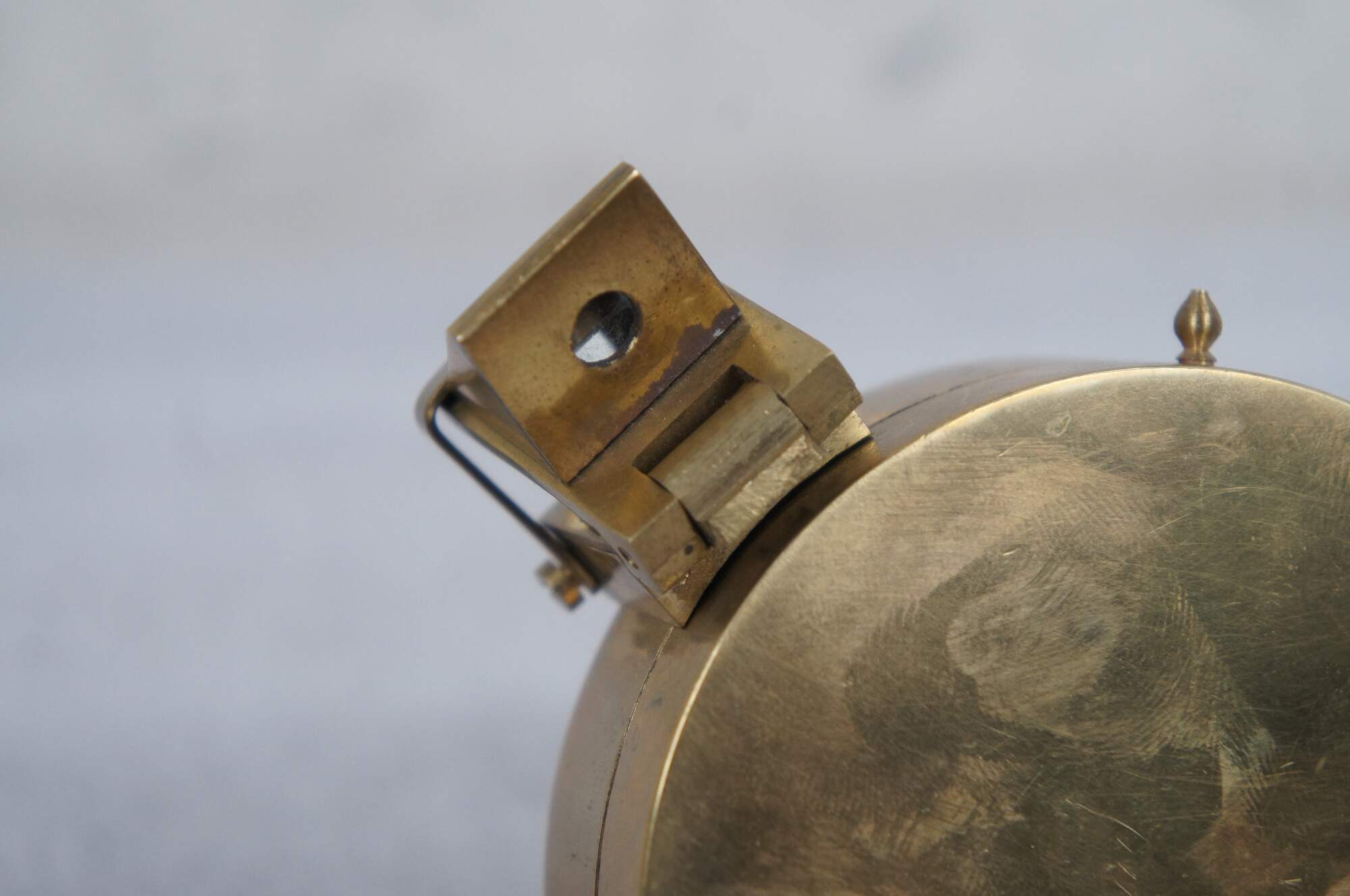 Vintage T. Cooke of London England prismatic compass. Brass case with mirrored lid interior, folding prism, metallic brass face, and short stand able to be screwed onto a tripod for stabilization.