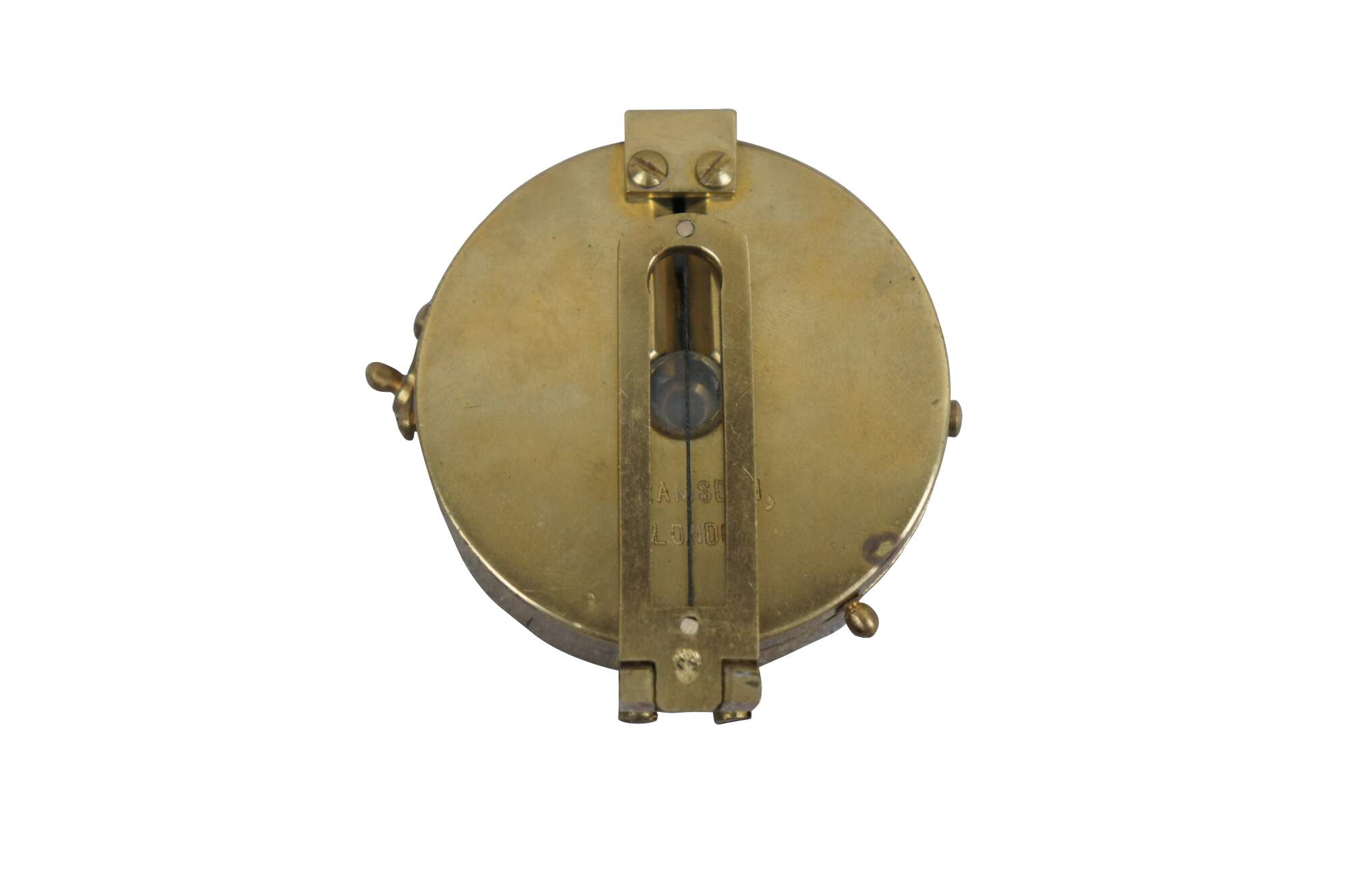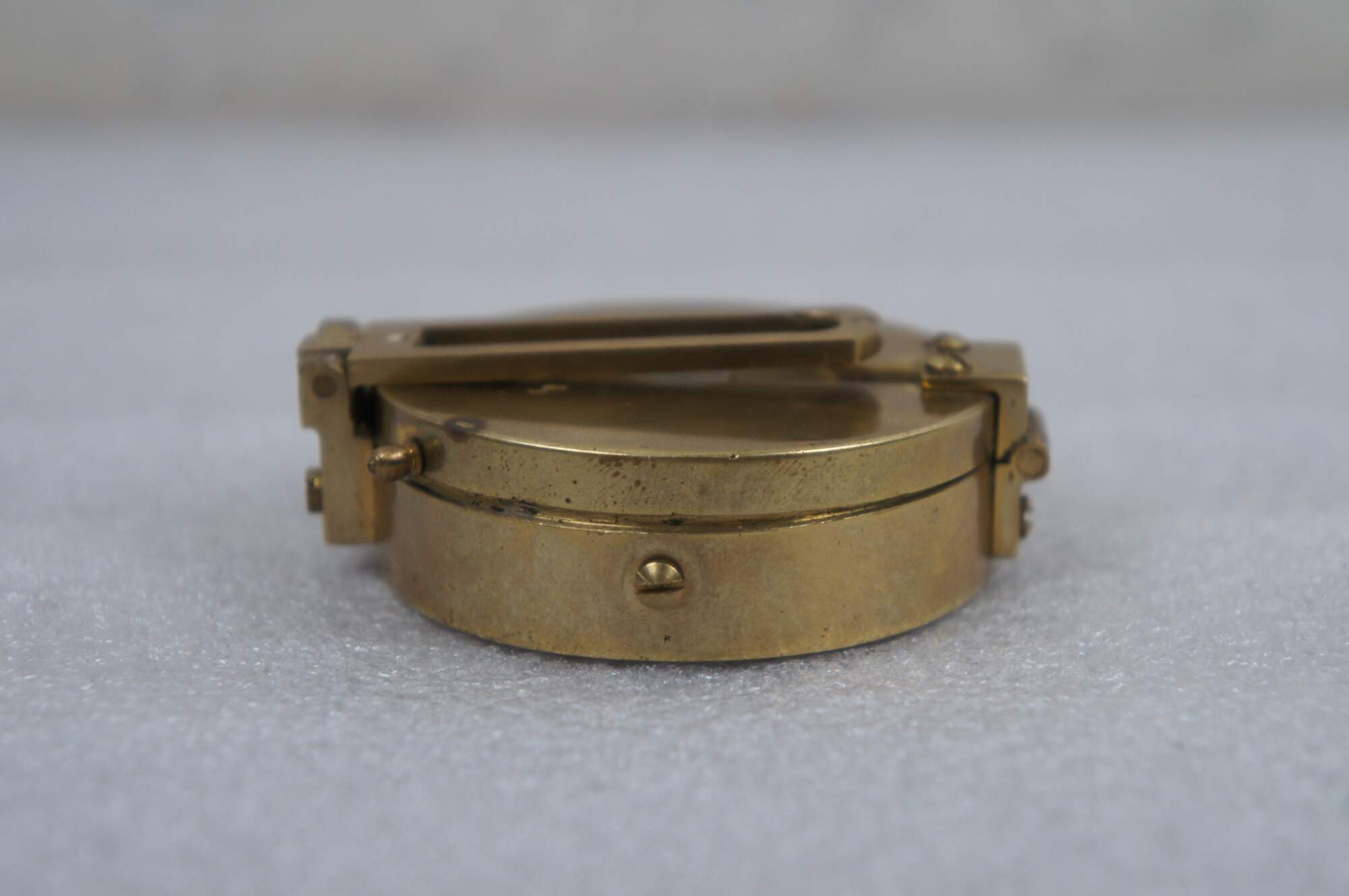 Antique Elliott Brothers of Ramsden, London brass surveyors / nautical maritime compass with brass case and face and folding sightline.