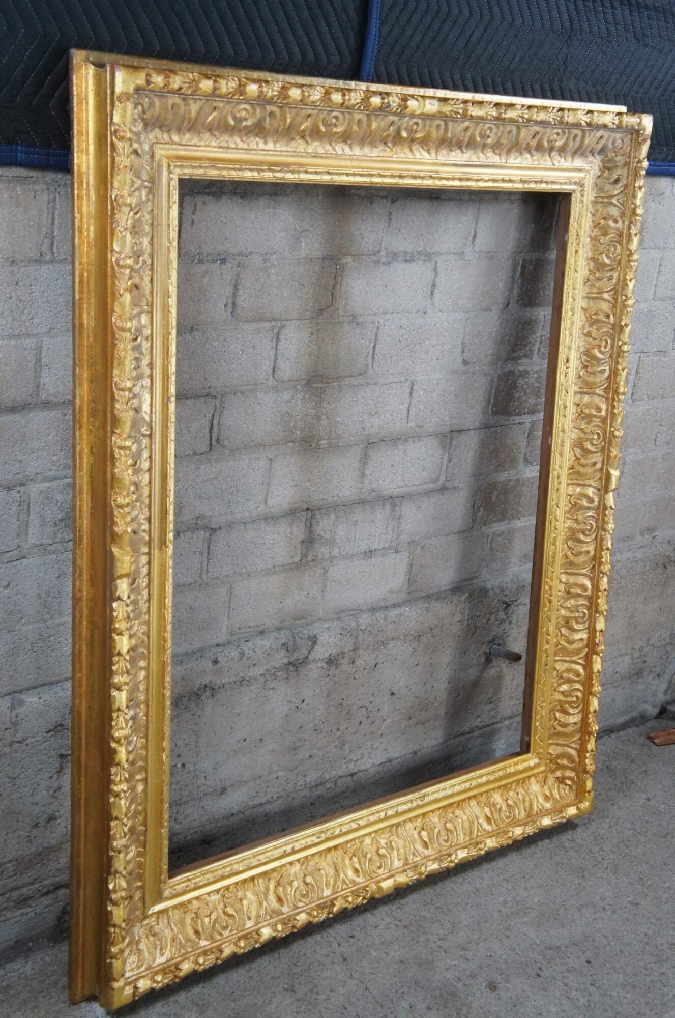 A very large and impressive antique giltwood picture / artwork / mirror frame featuring vibrant gold gilt acanthus design. Accomodates artwork or mirror size 41" x 33".