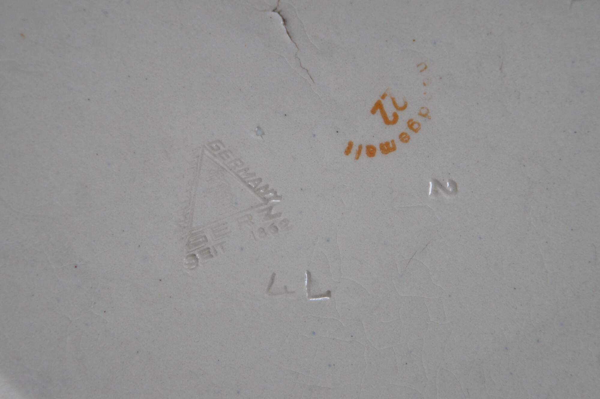 "Simon Peter Gerz I was born in 1830 and founded his stoneware company in 1857 in the village of Höhr, likely based on an existing family pottery business that dated back as far as 1810. He finally received its license to produce in 1862. Simon Peter Gerz I, died in 1893 and was succeeded by his son-in-law Alphons Wilhelm Lötschert (1863 - 1945). The company became a G.m.b.H. (corporation) in 1897. The company's products were distributed as well through the Steinzeugwerke Höhr Grenzhausen Gmbh marketing organization from 1912-1914. The original company continued operations until 1997. (There was another Simon Peter Gerz (b.1833, d.1908, in Höhr, who used the suffix "II" to differentiate himself from S.P.G. I.).