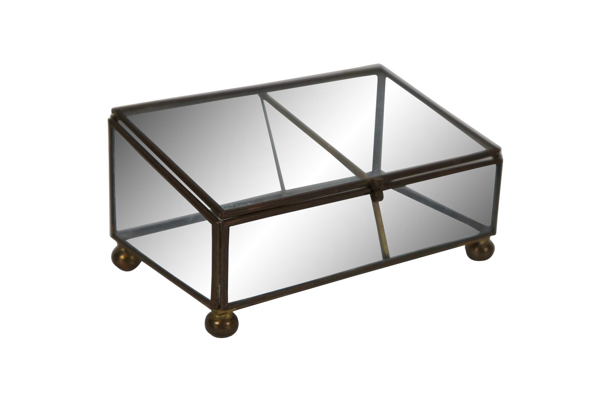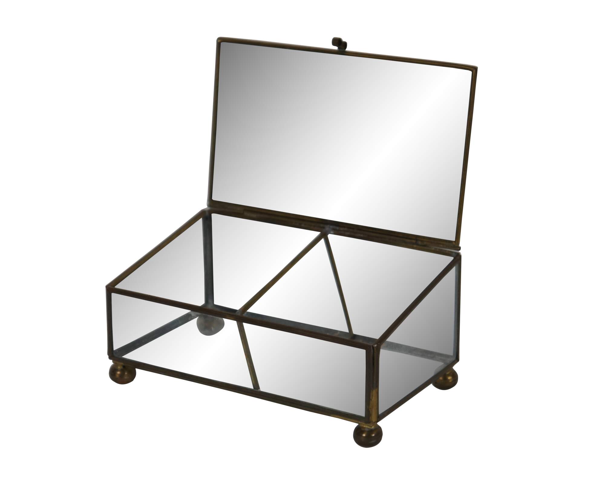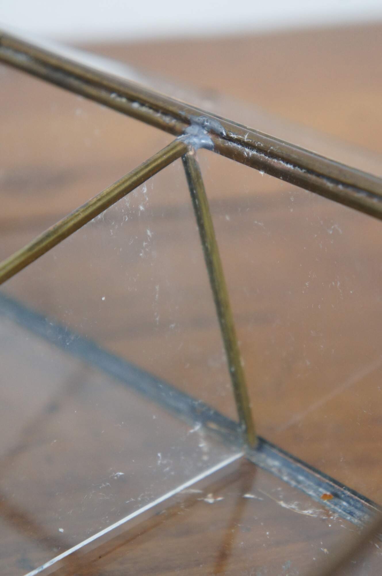 Vintage brass framed glass trinket / display box with round feet and divided interior.