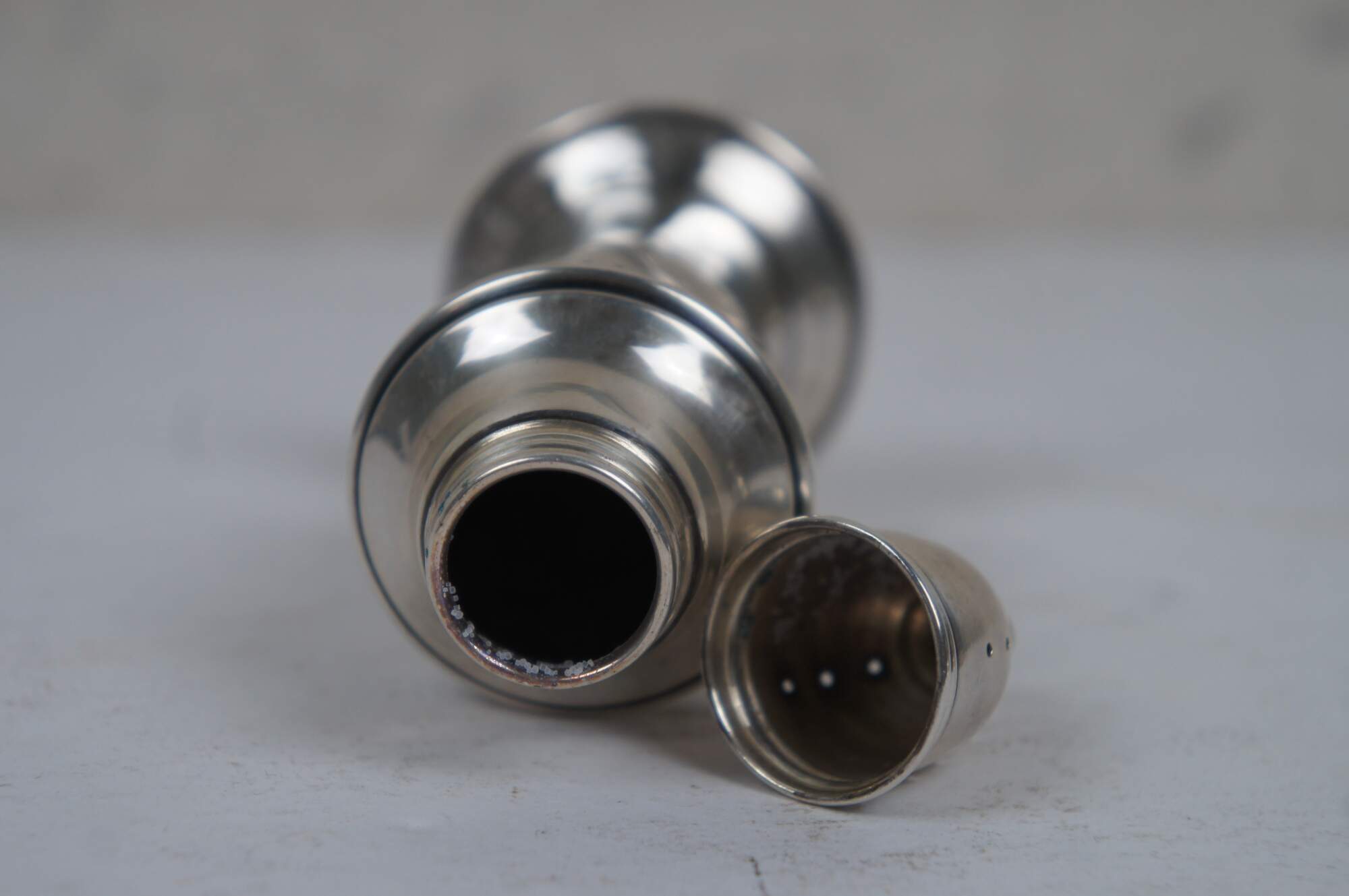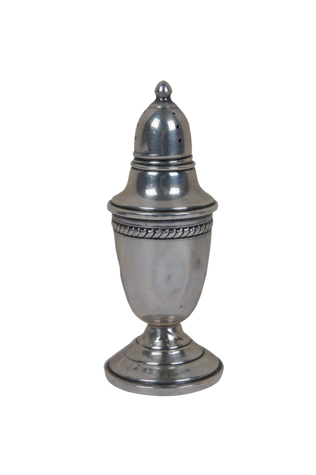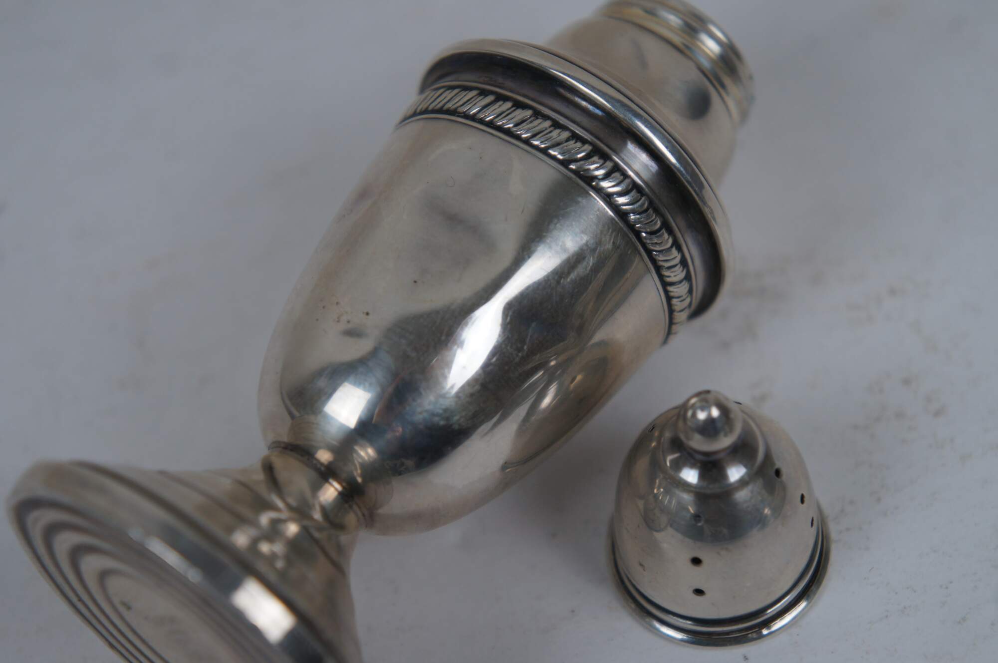 Vintage weighted sterling silver footed bon bon candy compote dish and single salt or pepper shaker by Crown Silver Inc, with simple rope twist details.