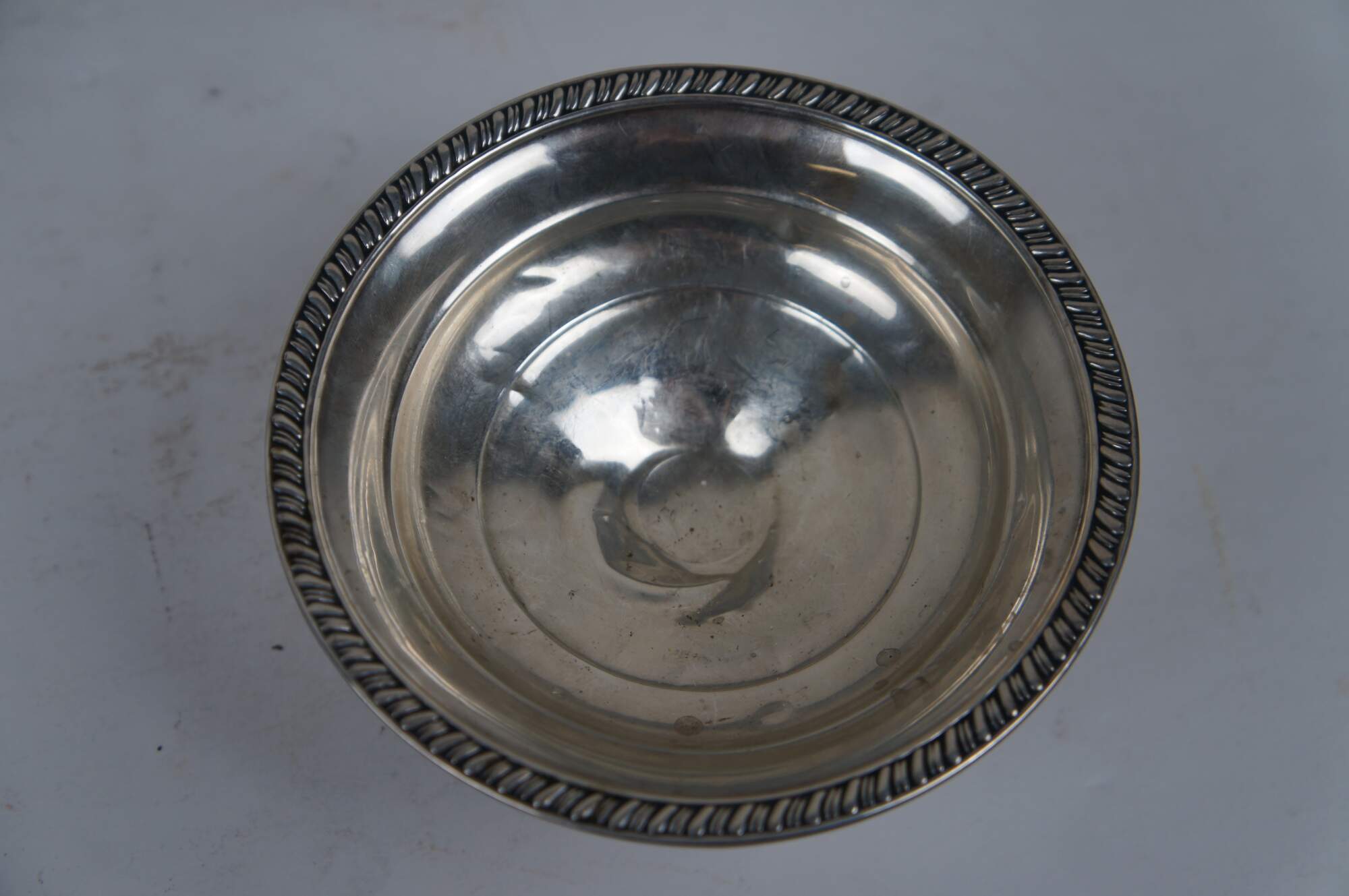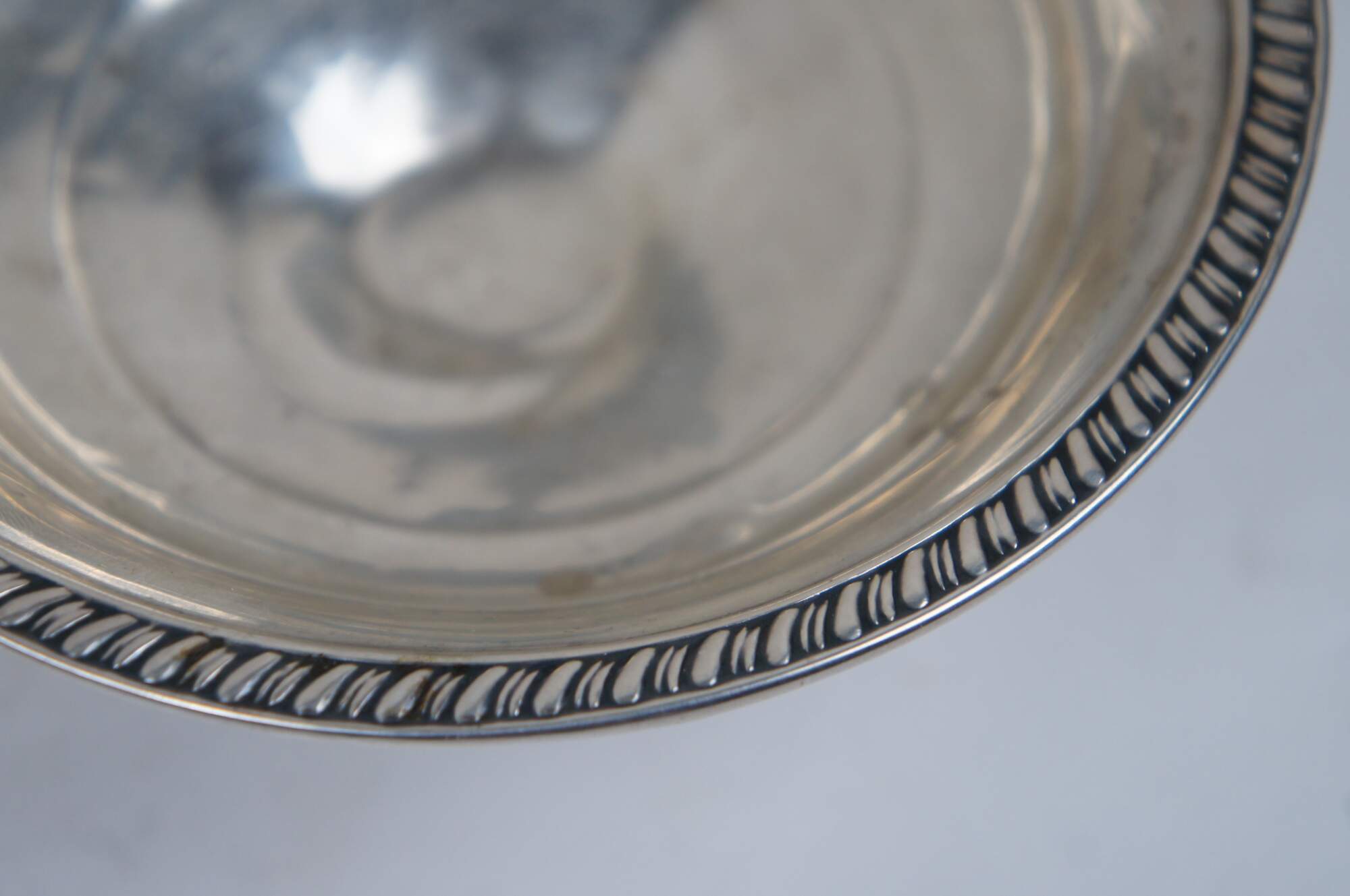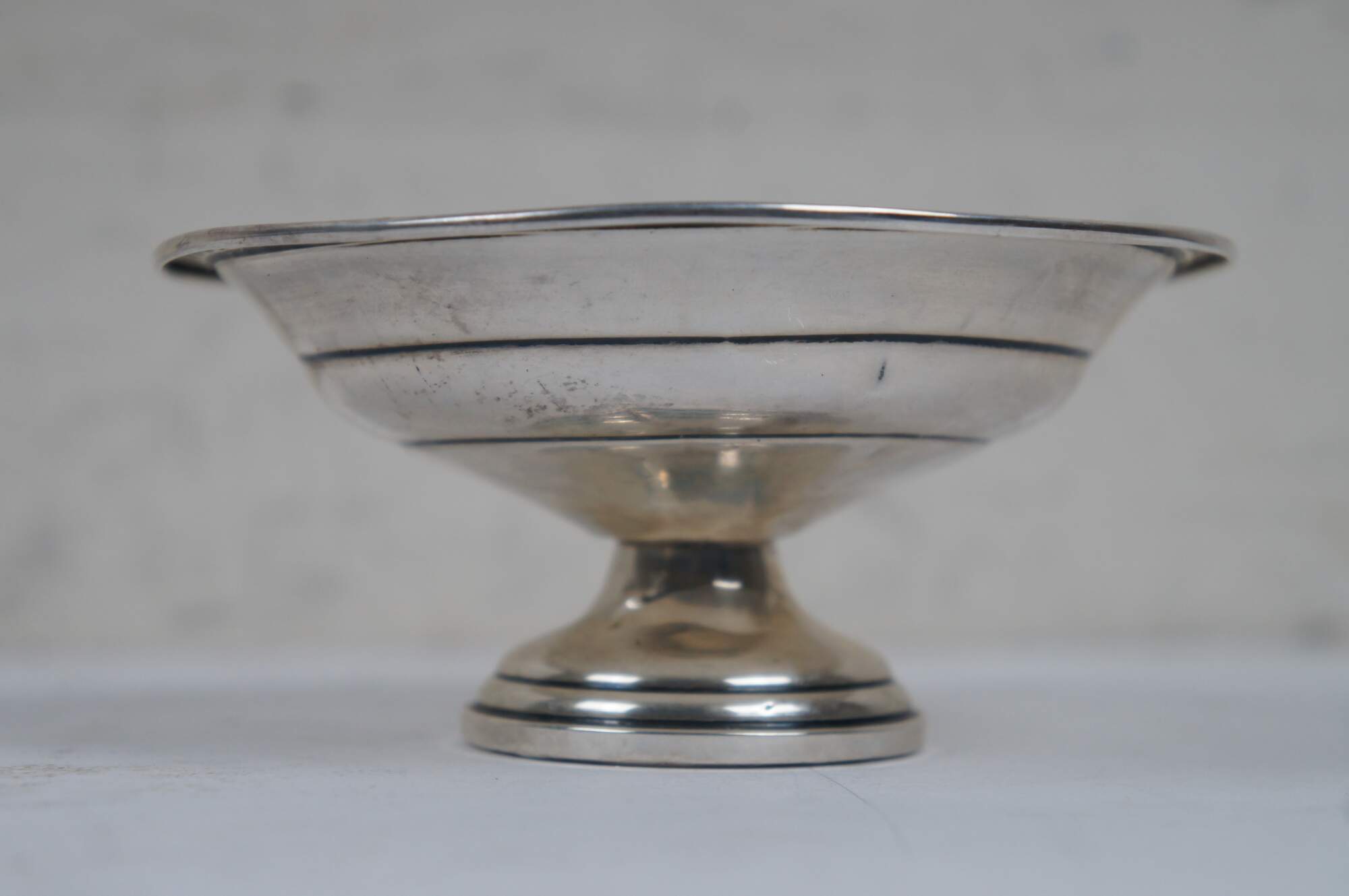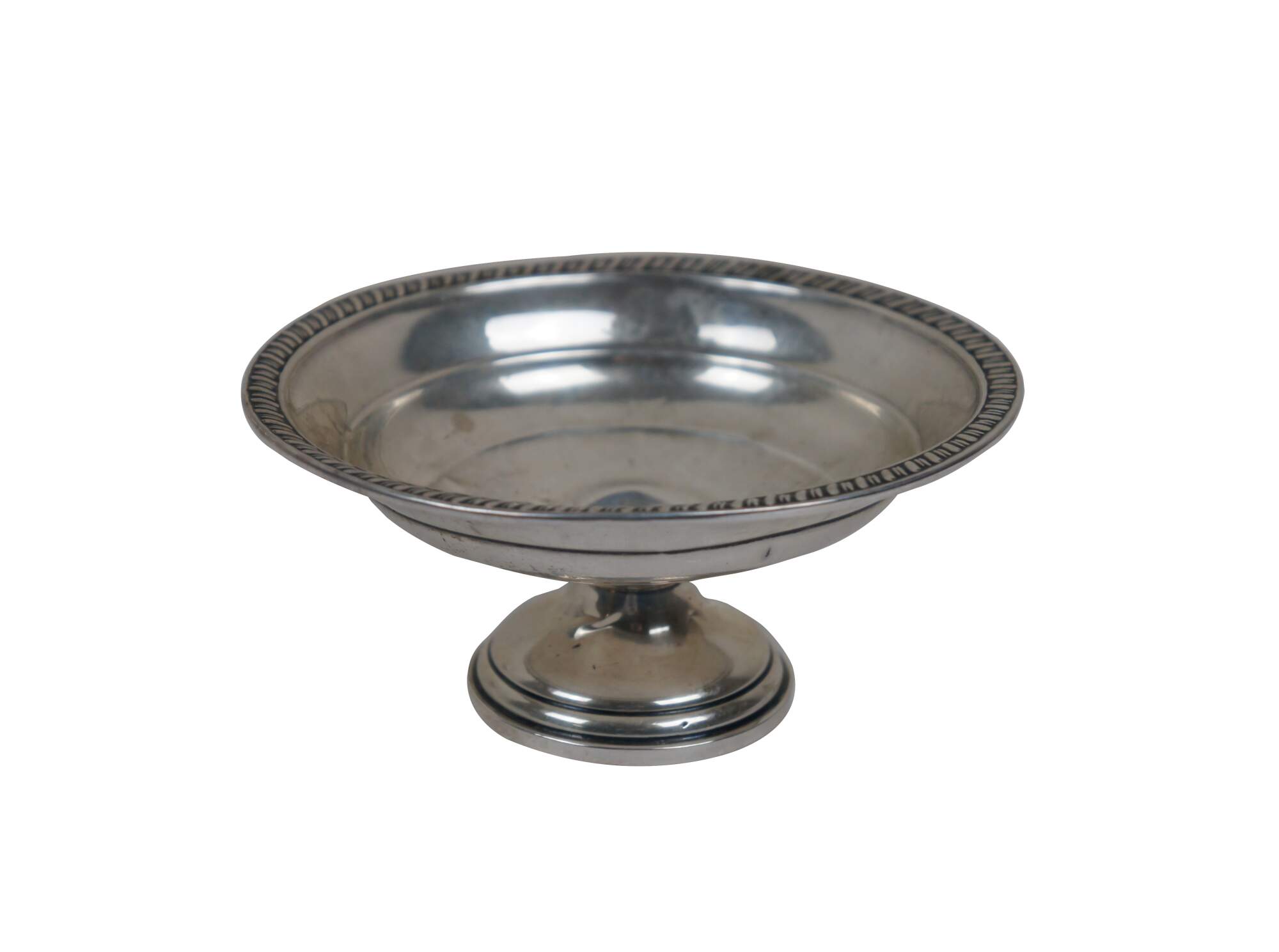 Vintage weighted sterling silver footed bon bon candy compote dish and single salt or pepper shaker by Crown Silver Inc, with simple rope twist details.