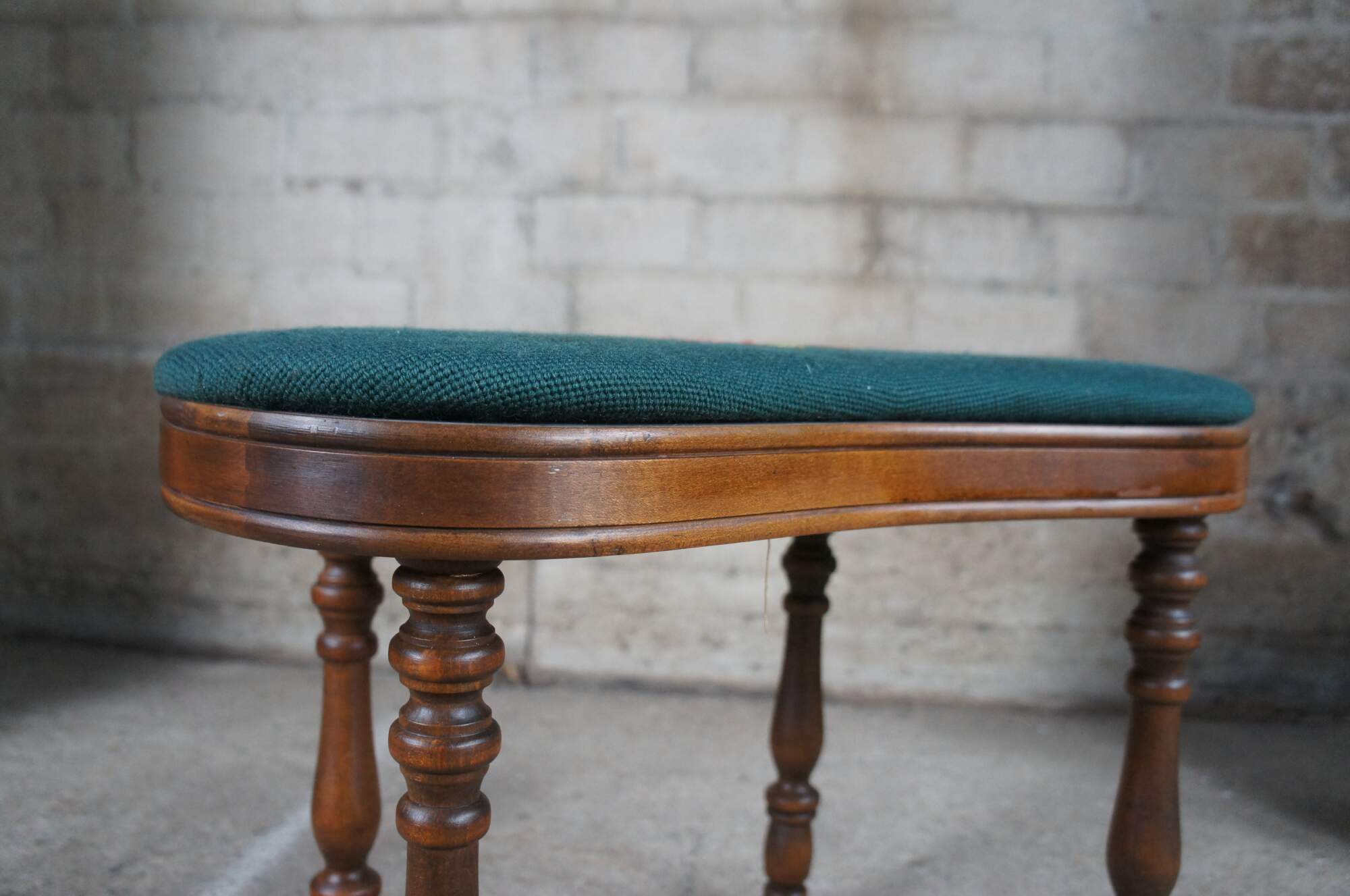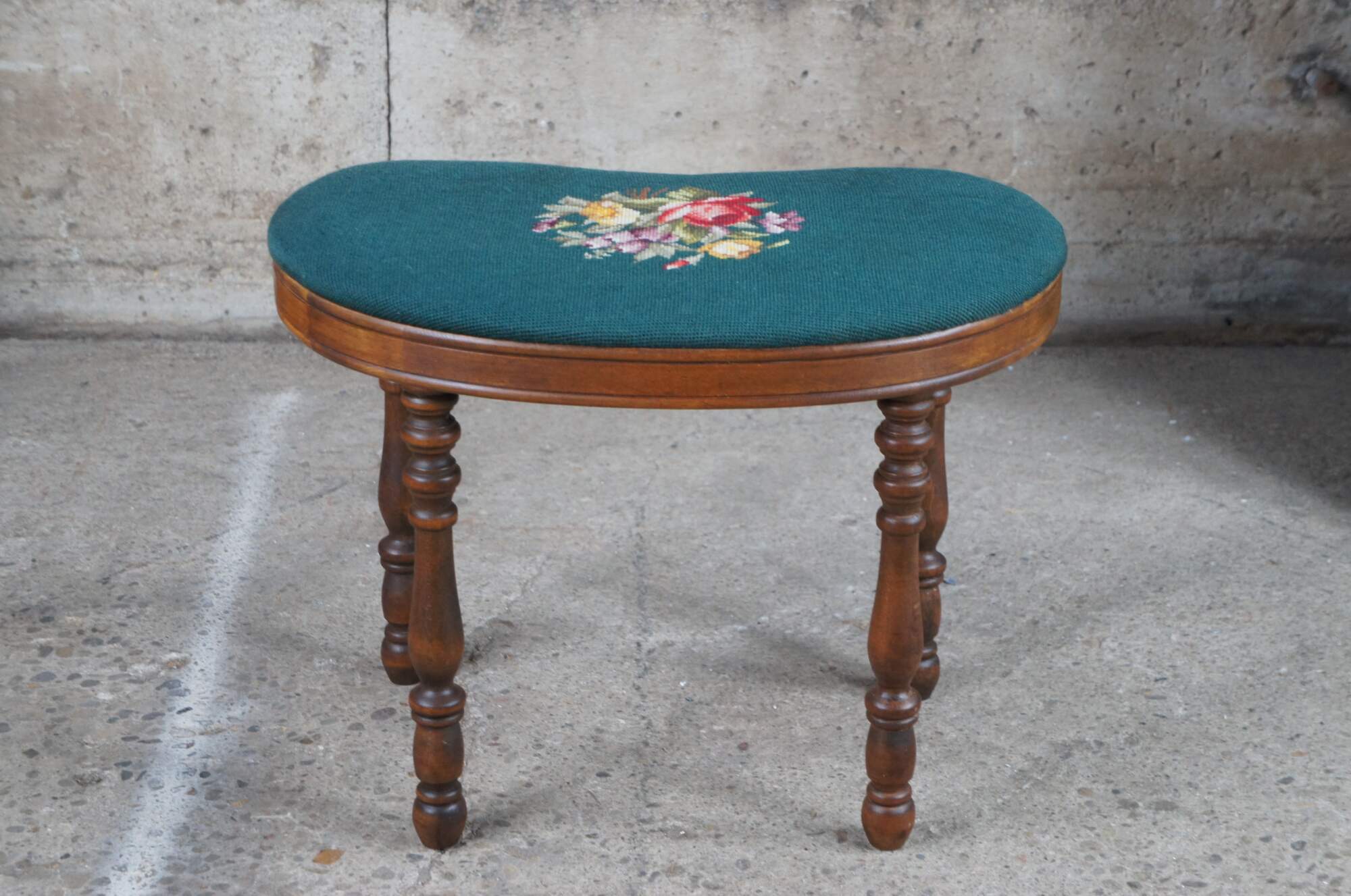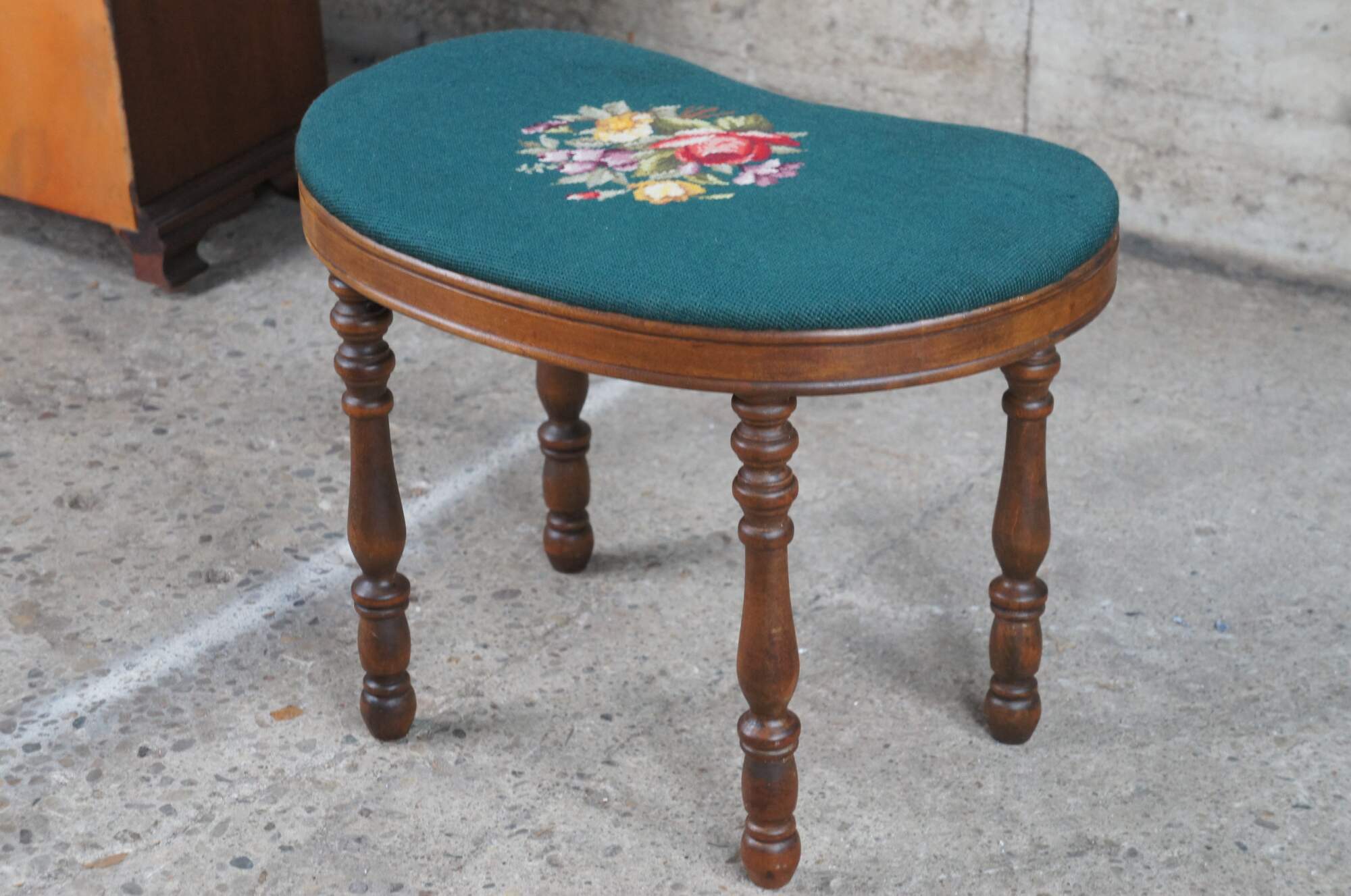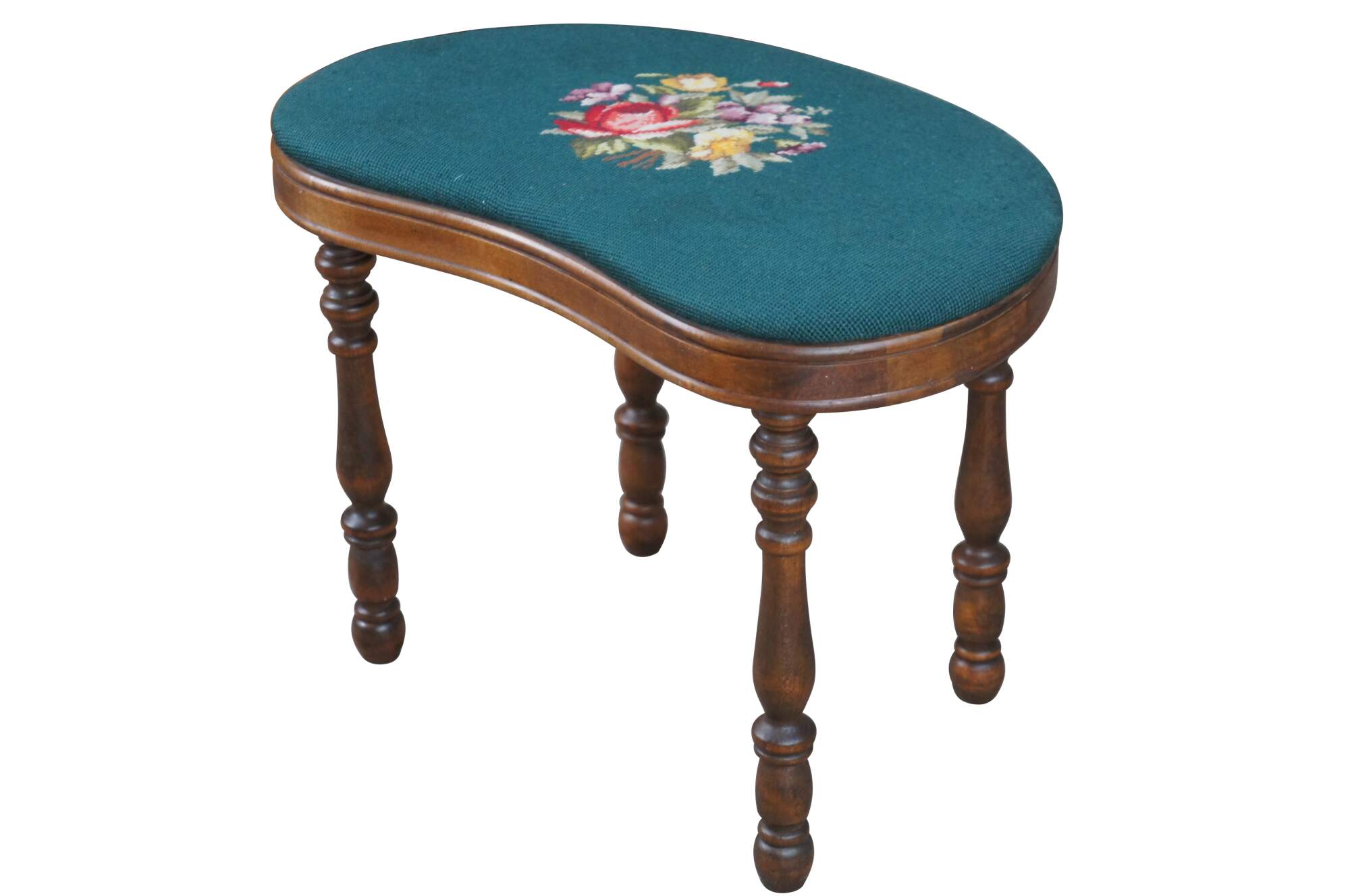 Mid 20th Century Kidney Bean Stool. Made from walnut with needlepoint embroidered seat.