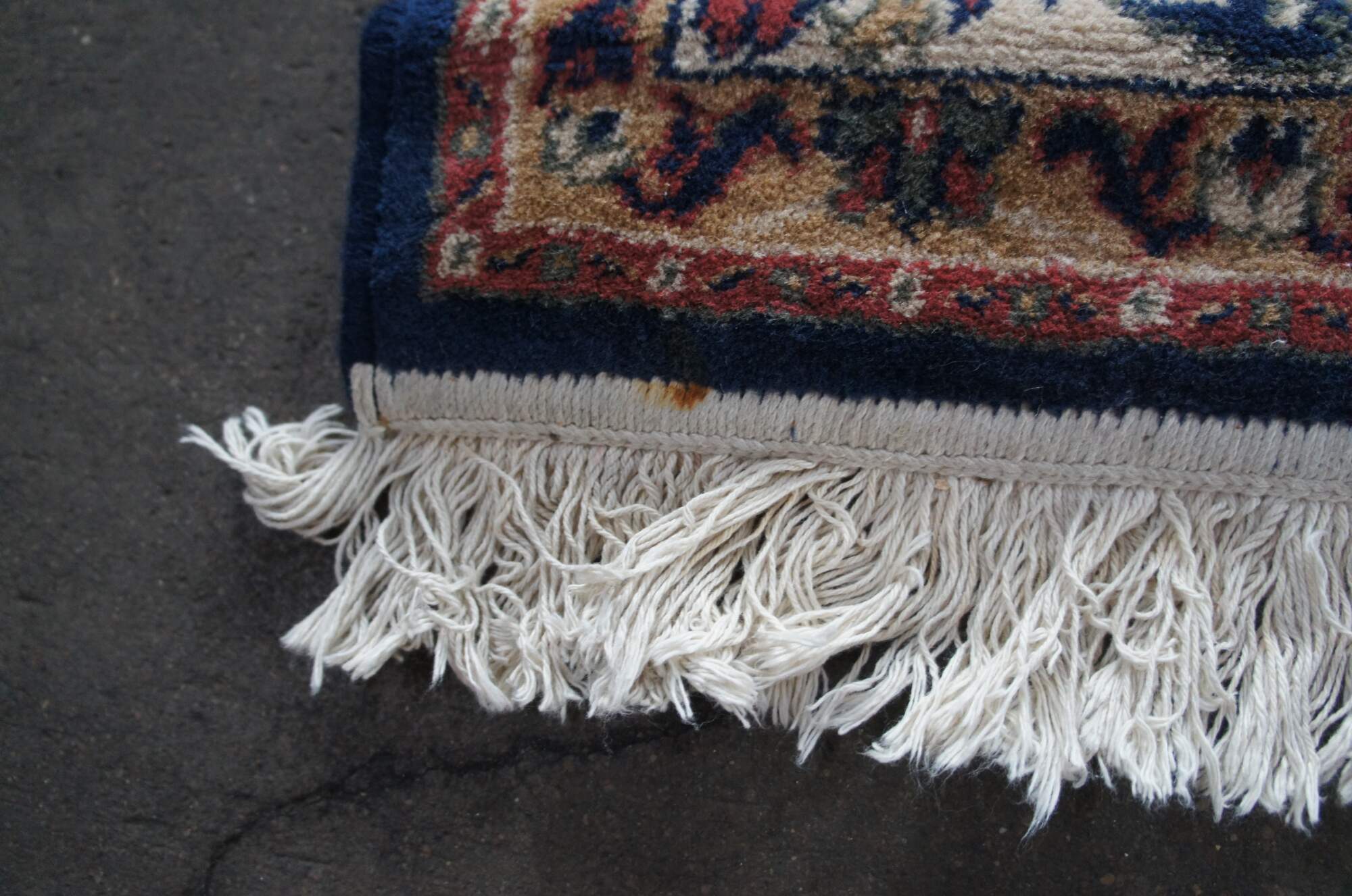A beautiful blue floral all over area rug. Features an interlaced patter of creme, beige, reds and greens. Polypropylene BCF