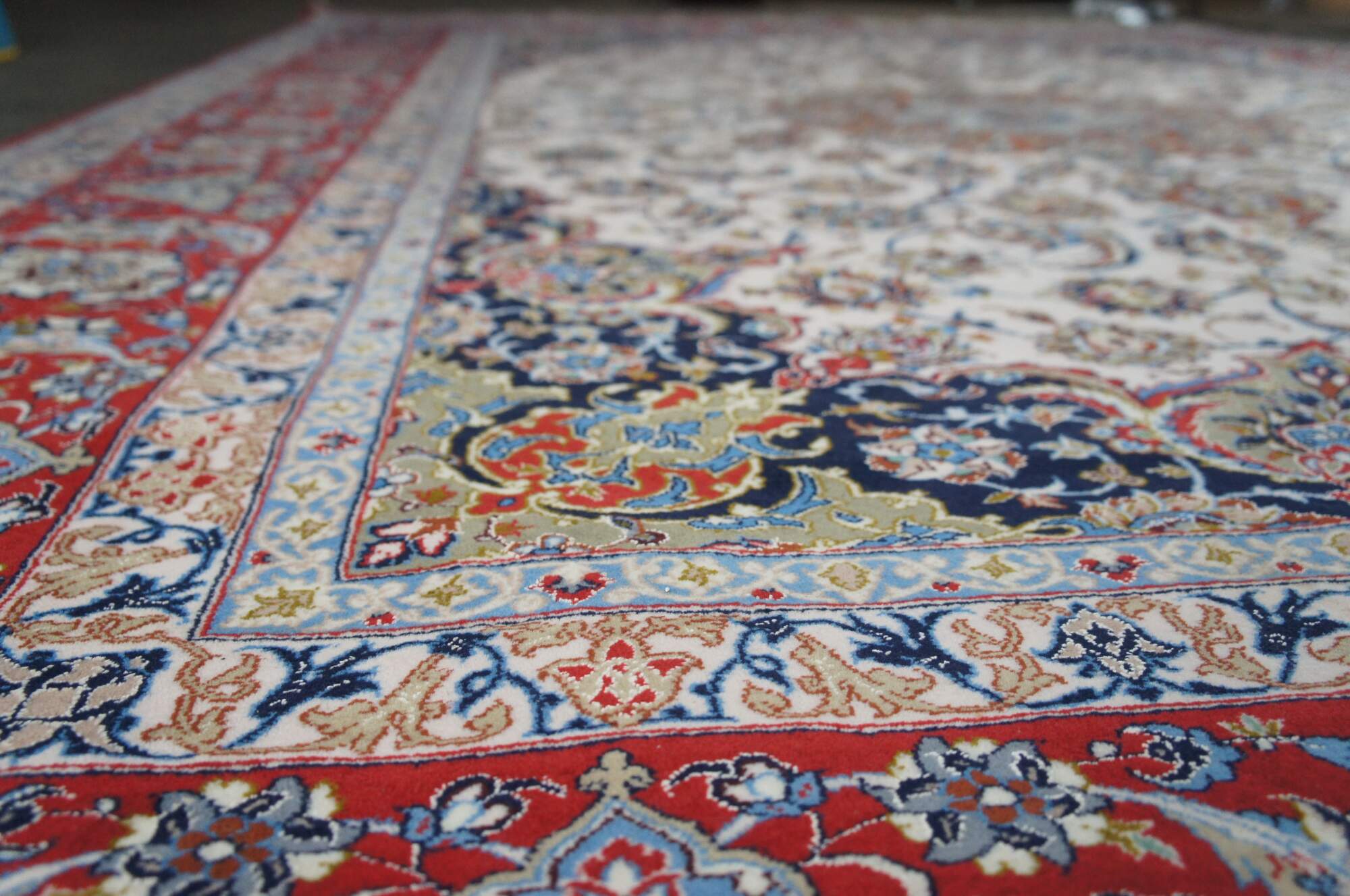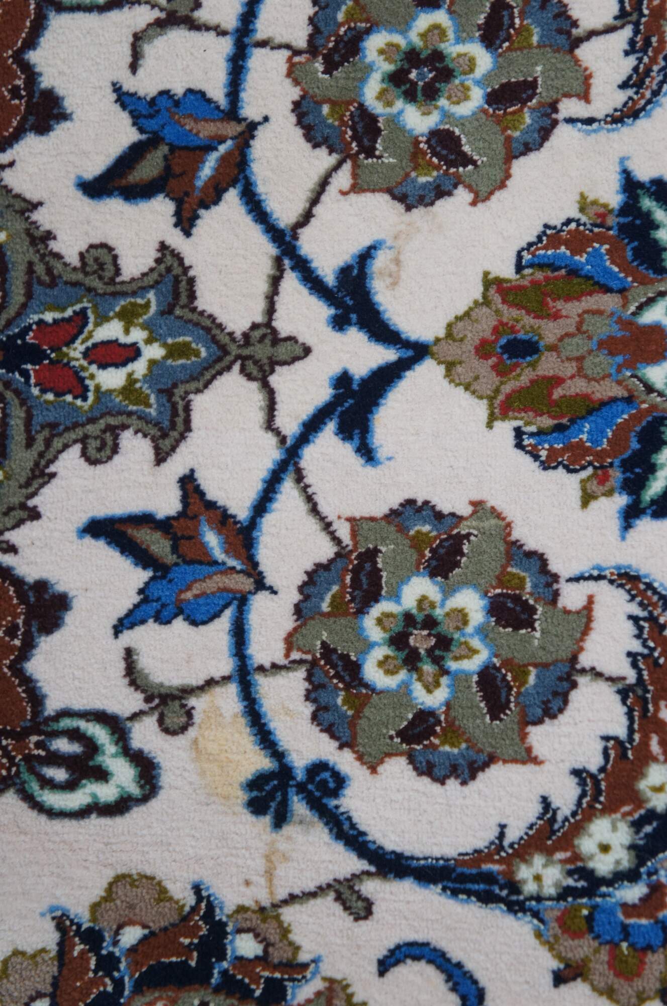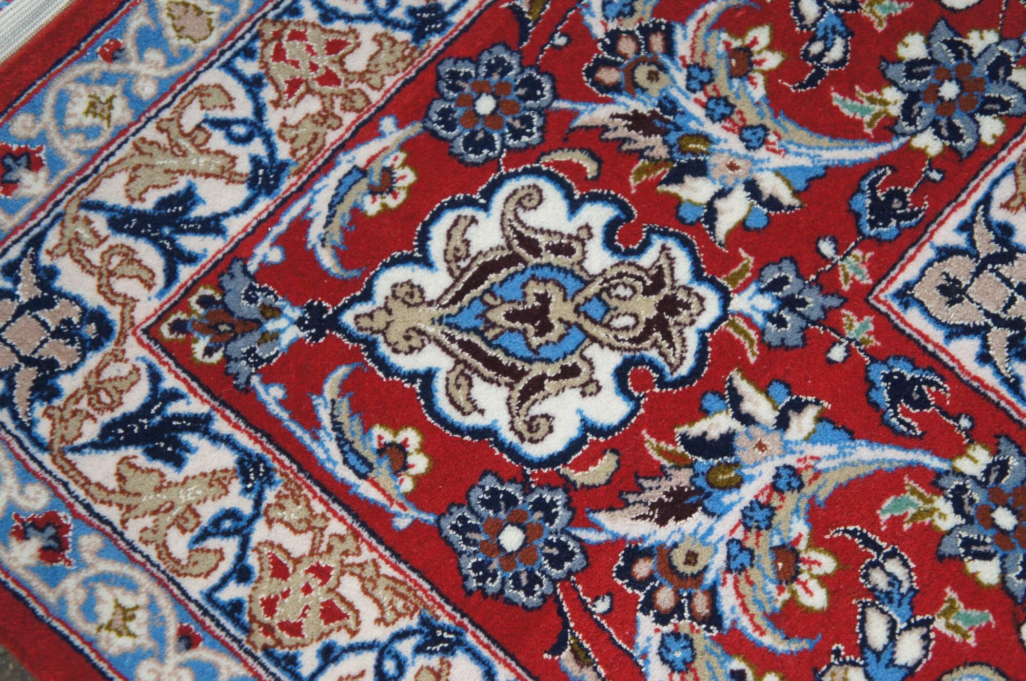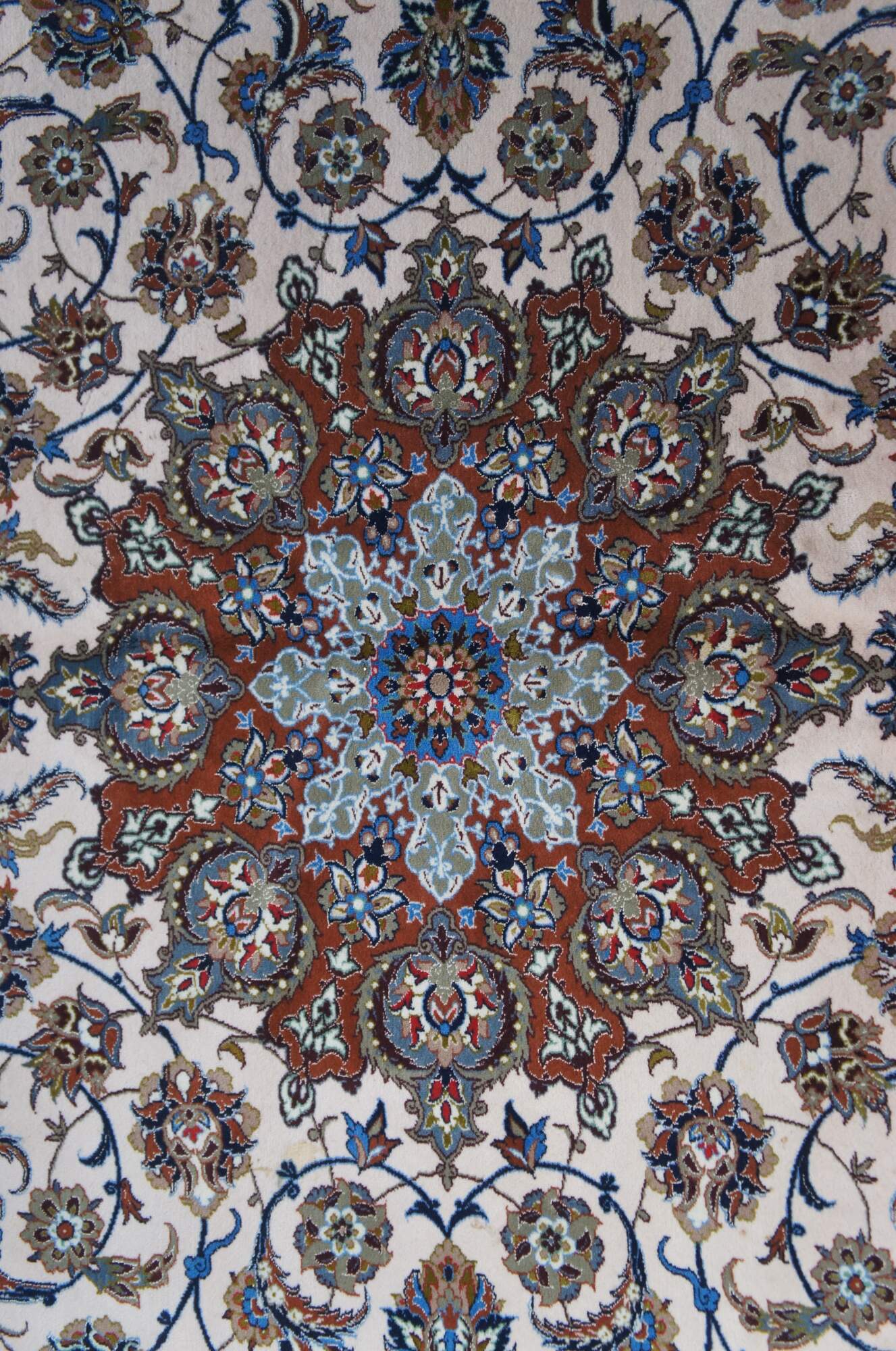 Nain rugs are Persian rugs that originated in the city of Nain in central Iran. They are known for their intricate designs, which often feature floral motifs and central medallions. Nain rugs are typically woven using a delicate color palette, with shades of ivory, blue, and beige. They are also characterized by their high knot density, which can range from 300 to 700 knots per square inch.