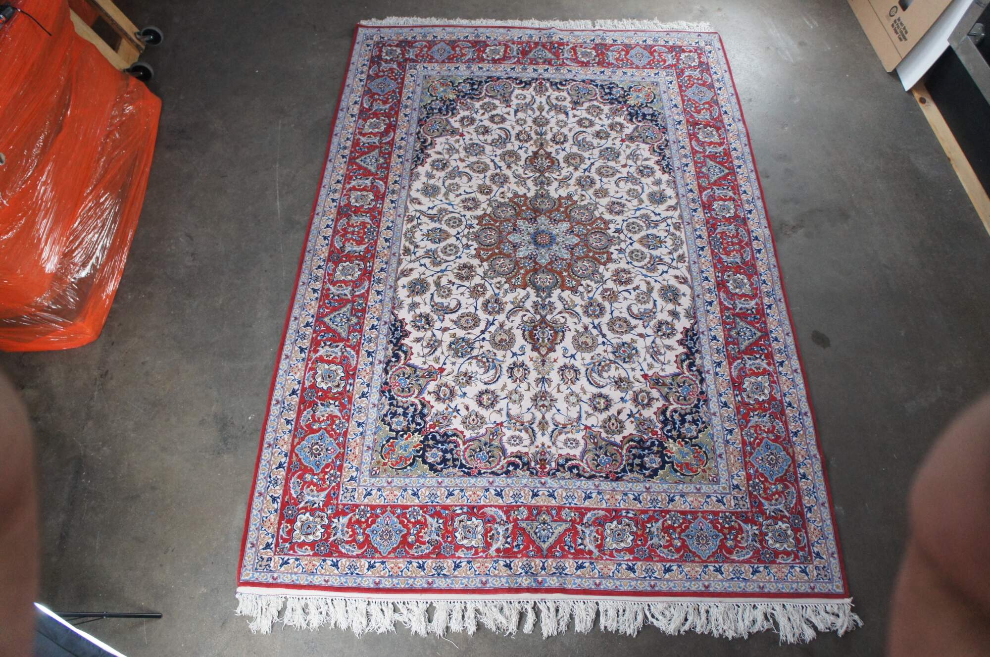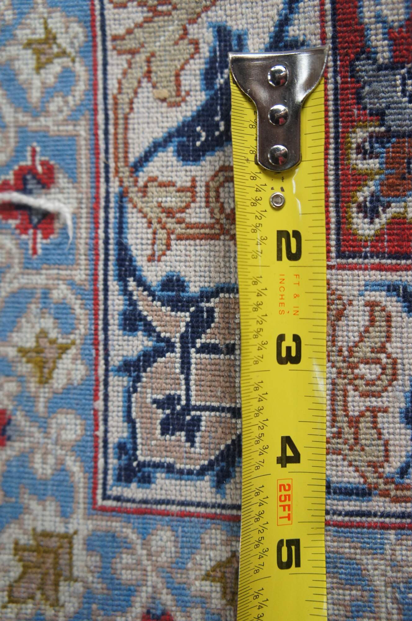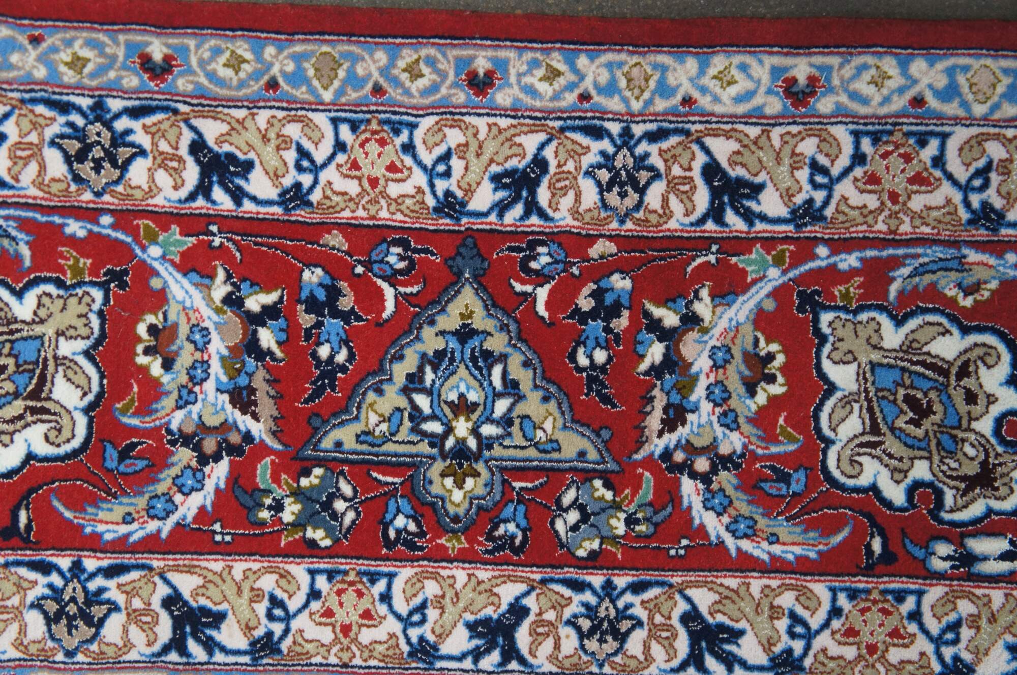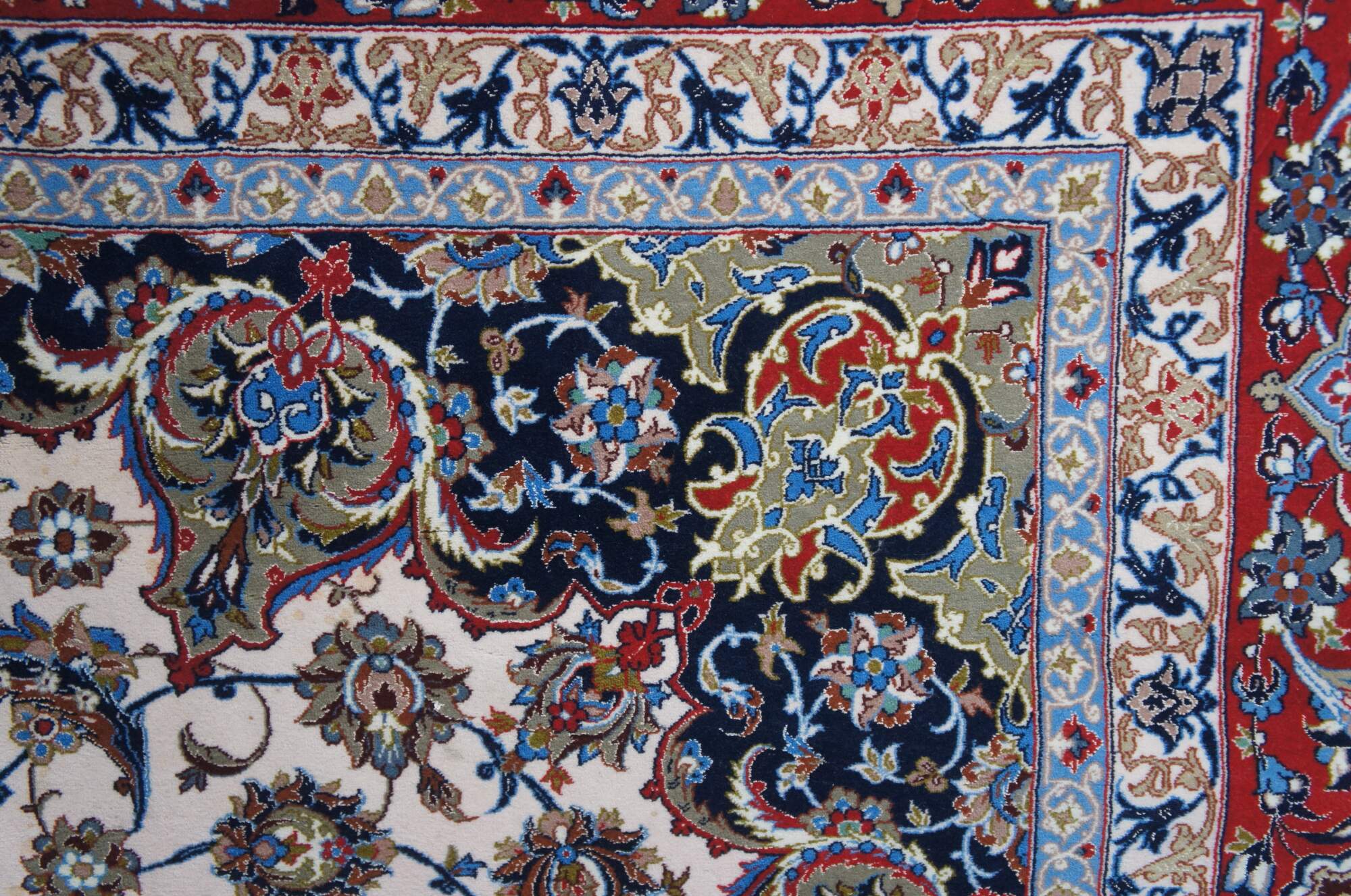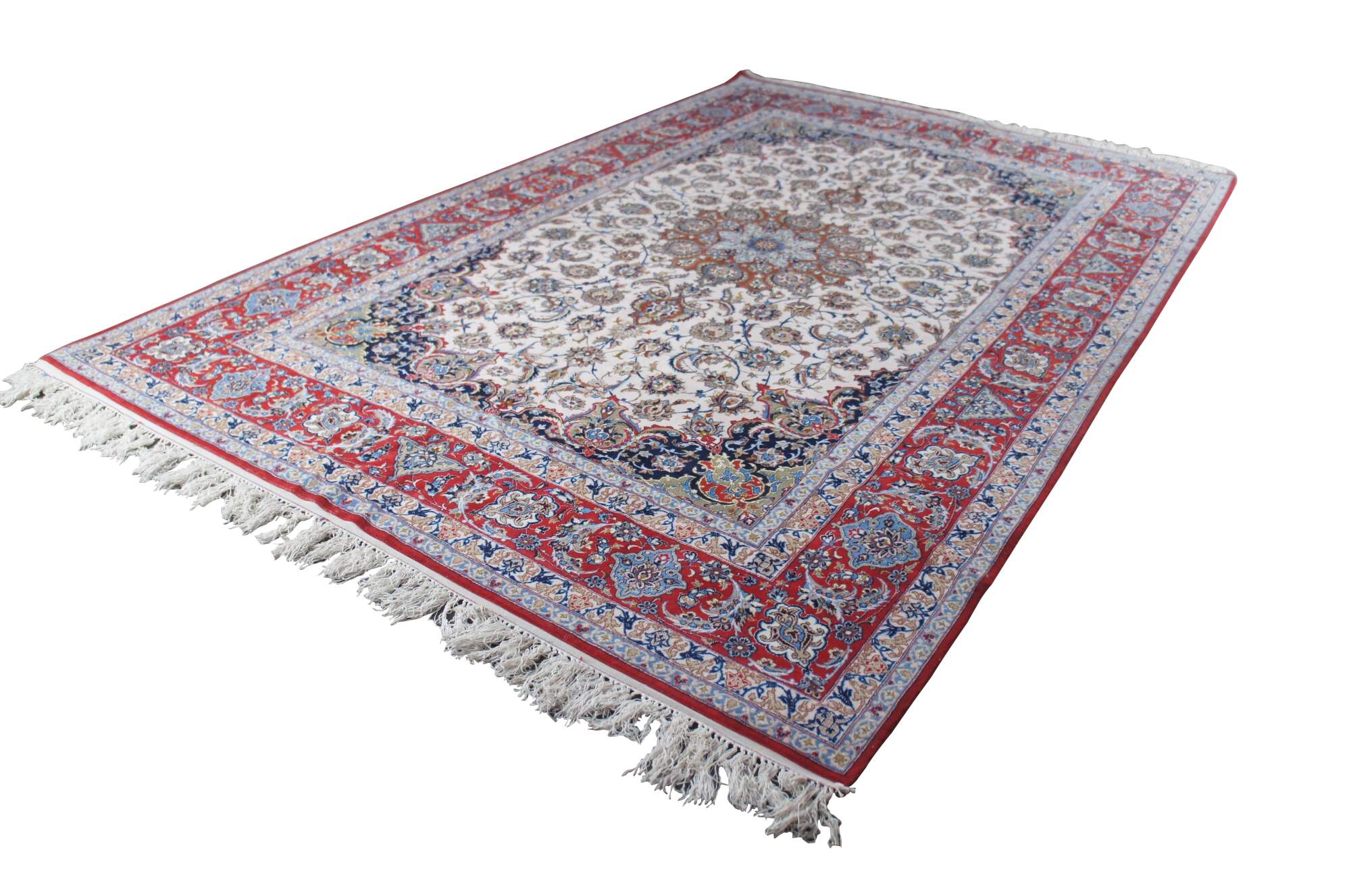 Nain rugs are Persian rugs that originated in the city of Nain in central Iran. They are known for their intricate designs, which often feature floral motifs and central medallions. Nain rugs are typically woven using a delicate color palette, with shades of ivory, blue, and beige. They are also characterized by their high knot density, which can range from 300 to 700 knots per square inch.