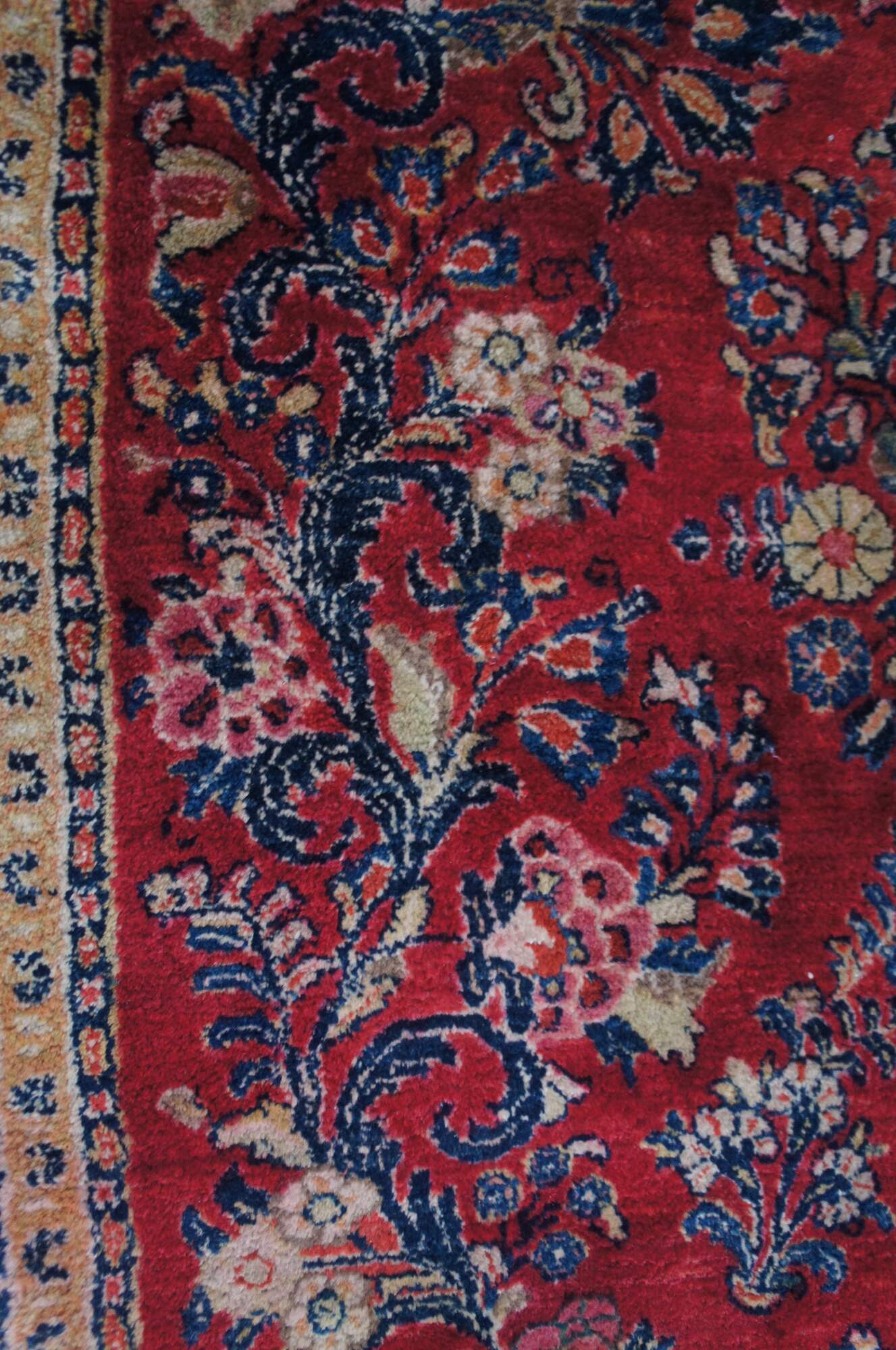 Sarouk rugs have been produced for much of the twentieth century. The early successes of the Sarouk rug are largely owed to the American market. From the 1910s to 1950s, the "American Sarouk", also known as the "painted Sarouk", was produced. American customers had an affinity for the Sarouk’s curvilinear and floral designs. What they did not appreciate, however, was the color, so for much of the 1920s, 1930s and 1940s, rugs exported from Iran were dyed to a desirable, deep, raspberry-red color, once they arrive in the USA.