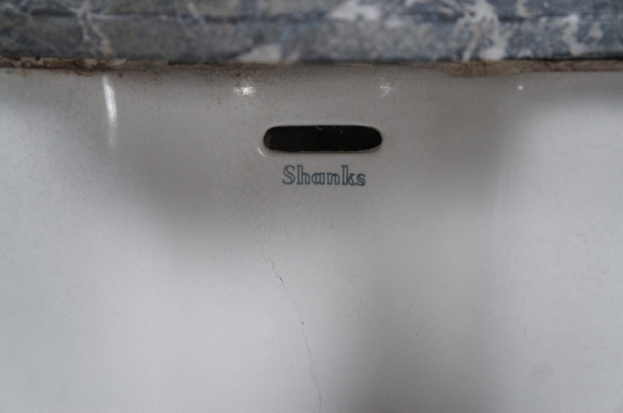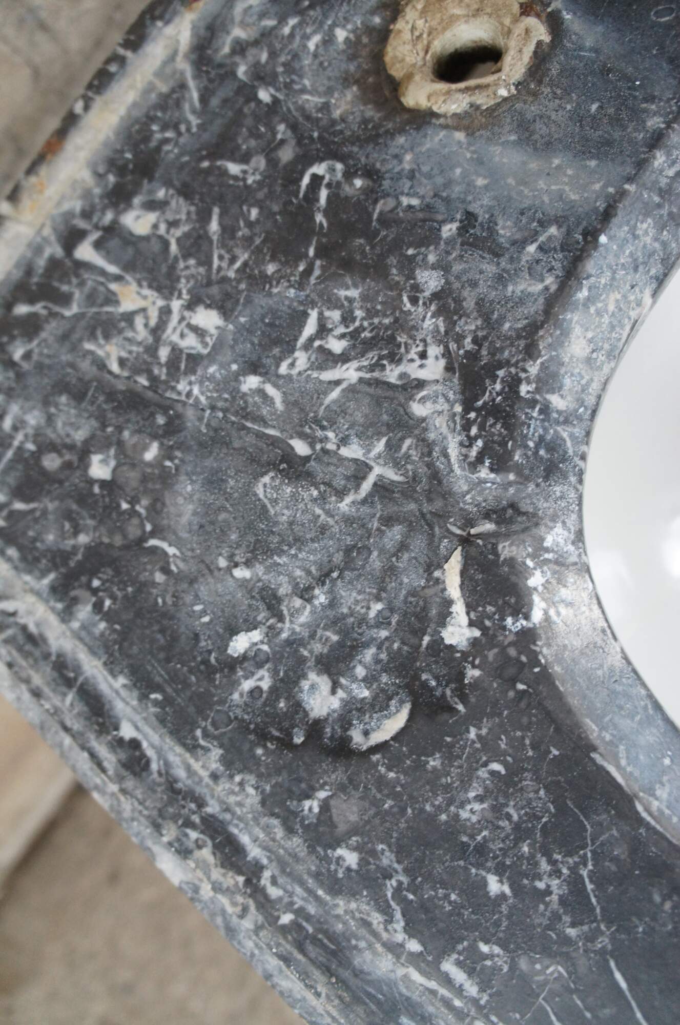 Good Antique Condition; age and use related wear. There is a hairline in one sink and missing molding along lover left side of base. The sink originally had a backsplash which is no longer with it.