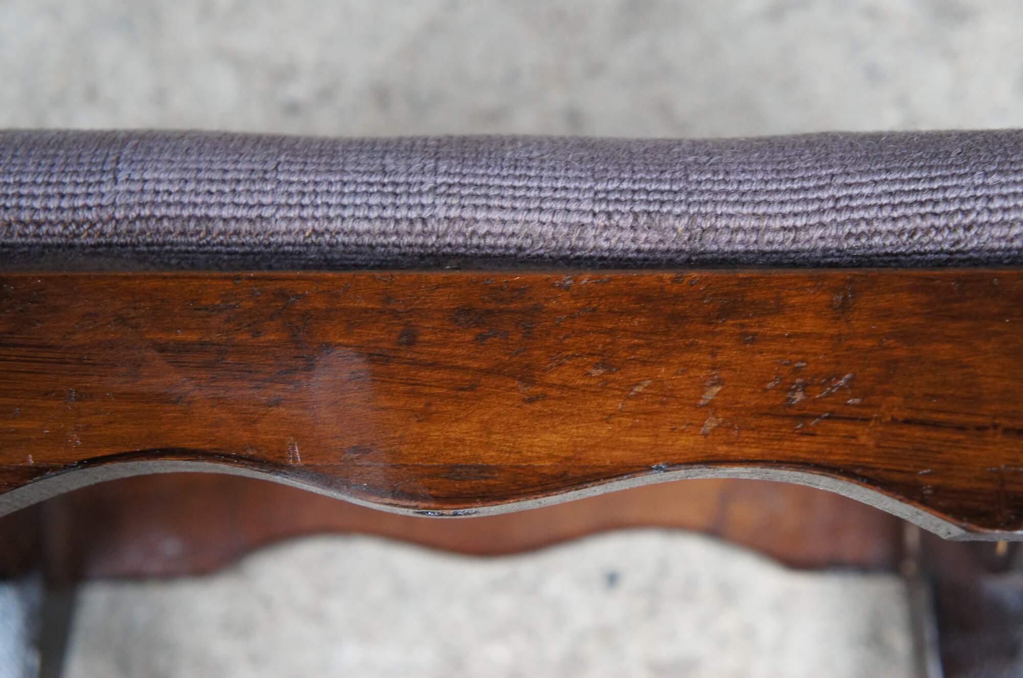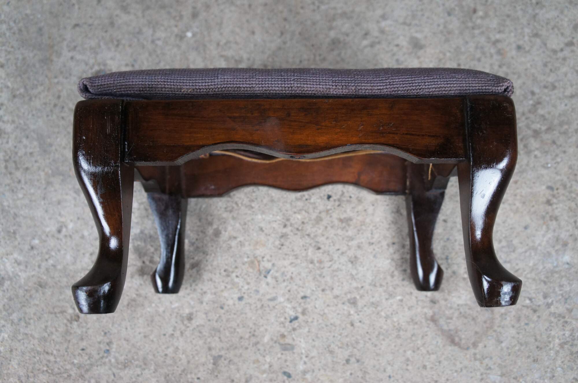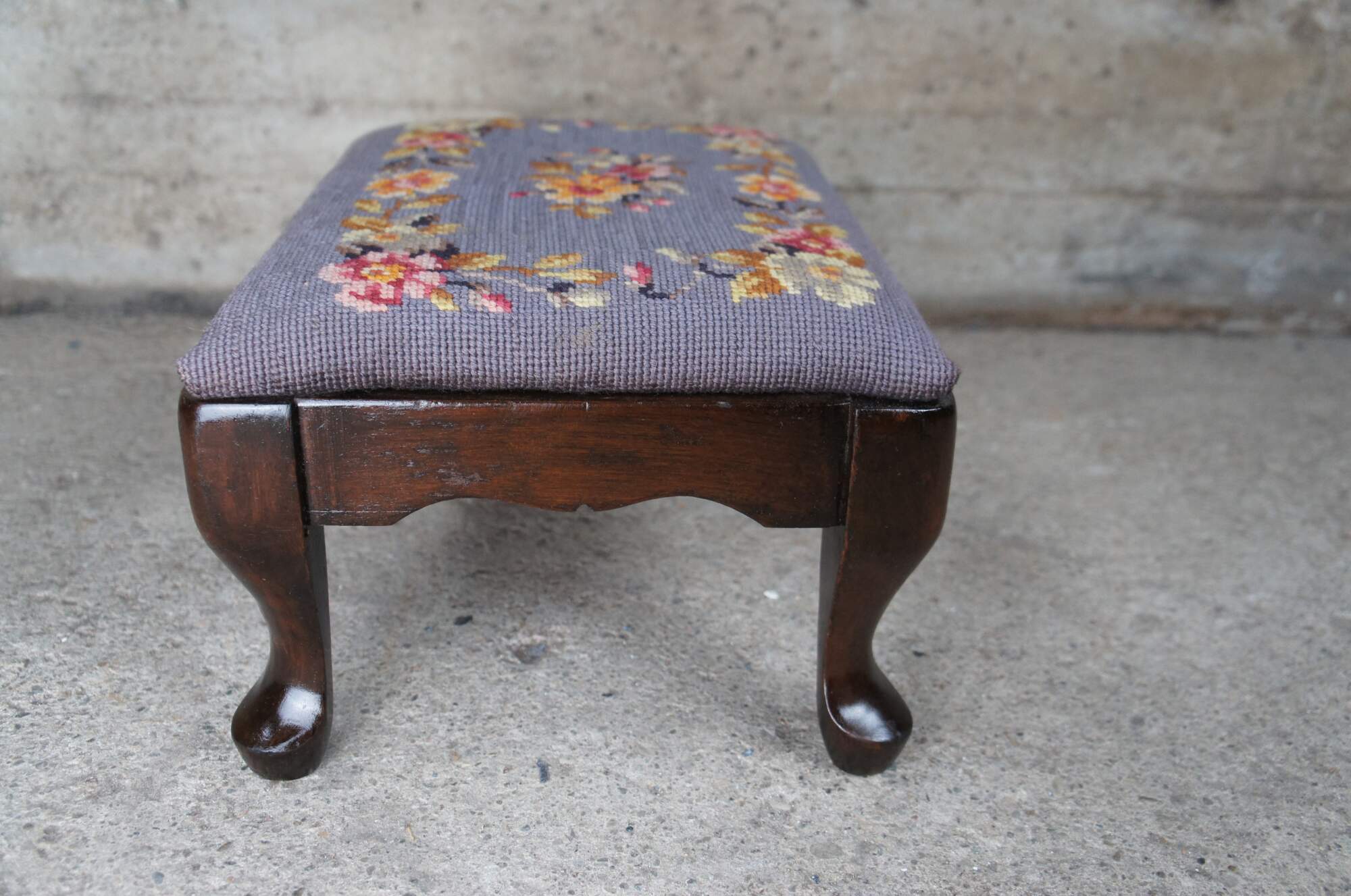 A lovely antique footstool with floral needlepoint embroidered top. Features a serpentine apron and cabriole legs.
