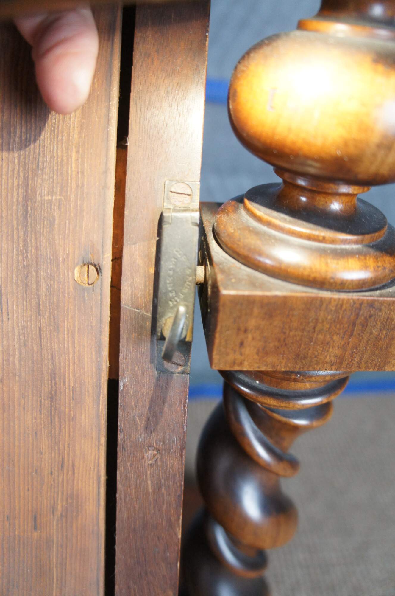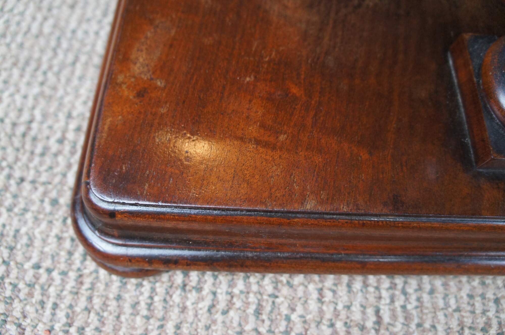Good antique condition, wear and distressing commensurate with age and use, some finish loss to base, missing veneer chip, chip to wood block, splitting / separation to mirror frame.