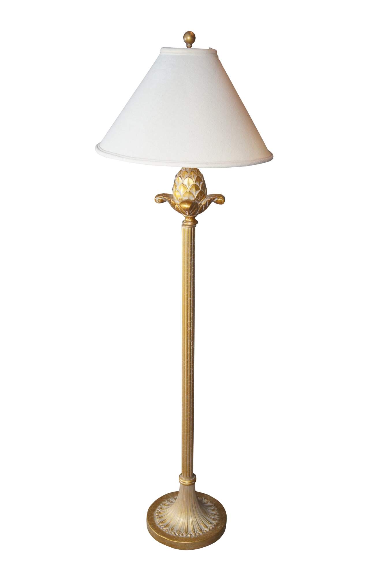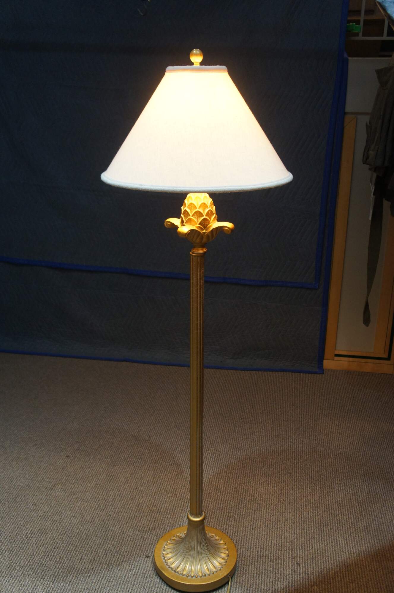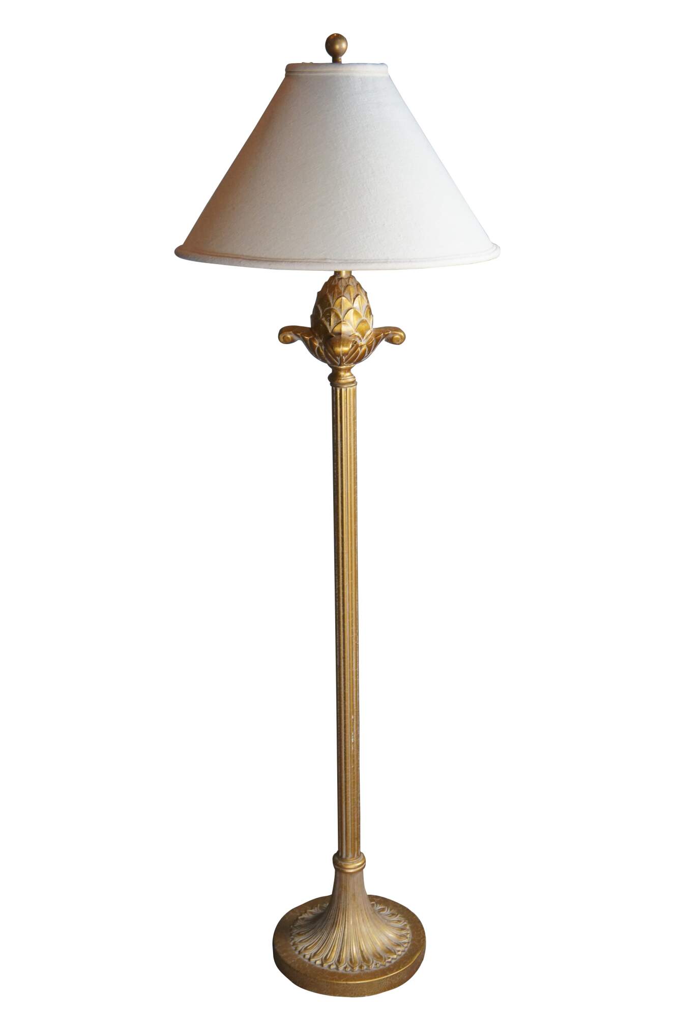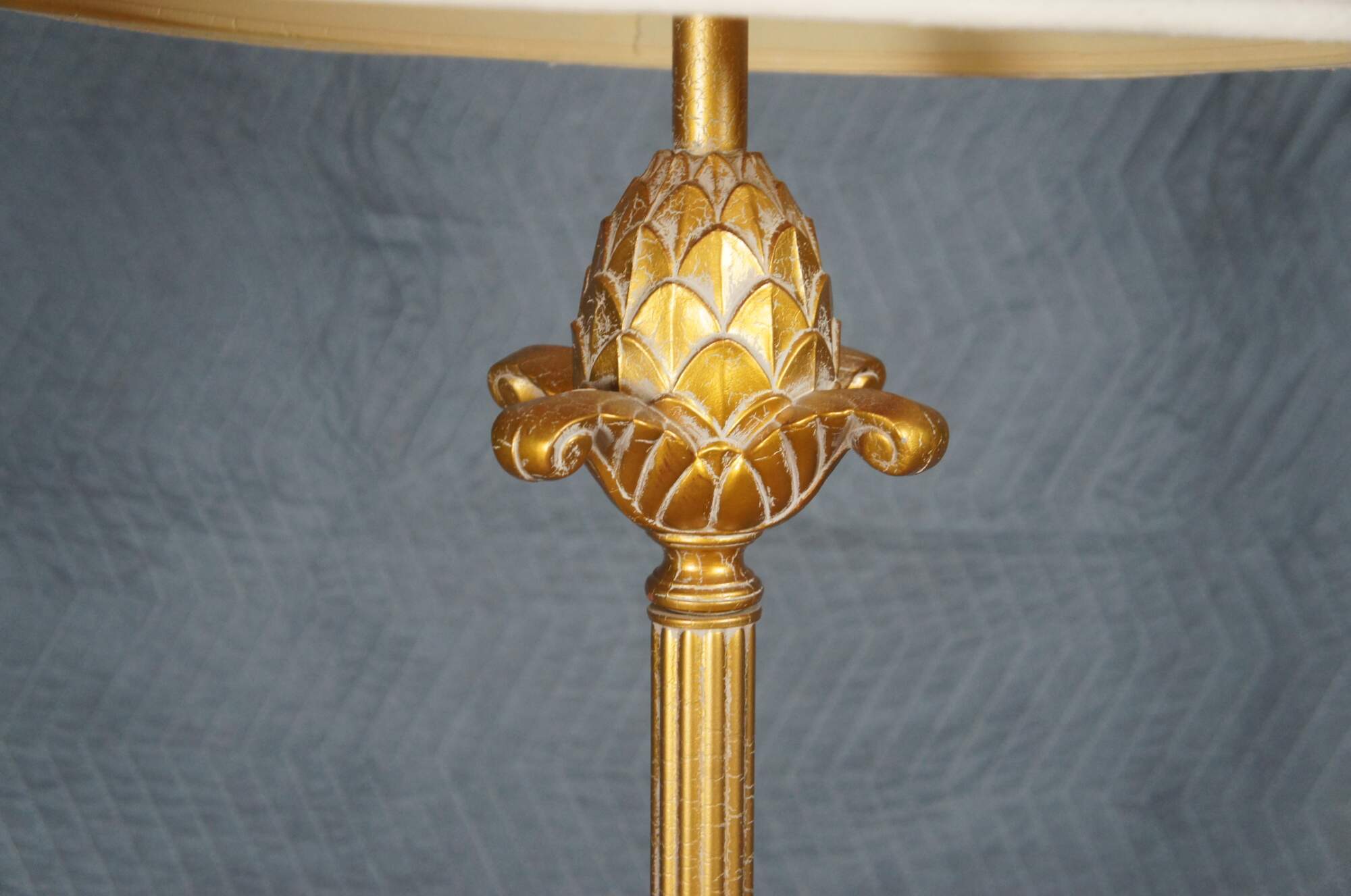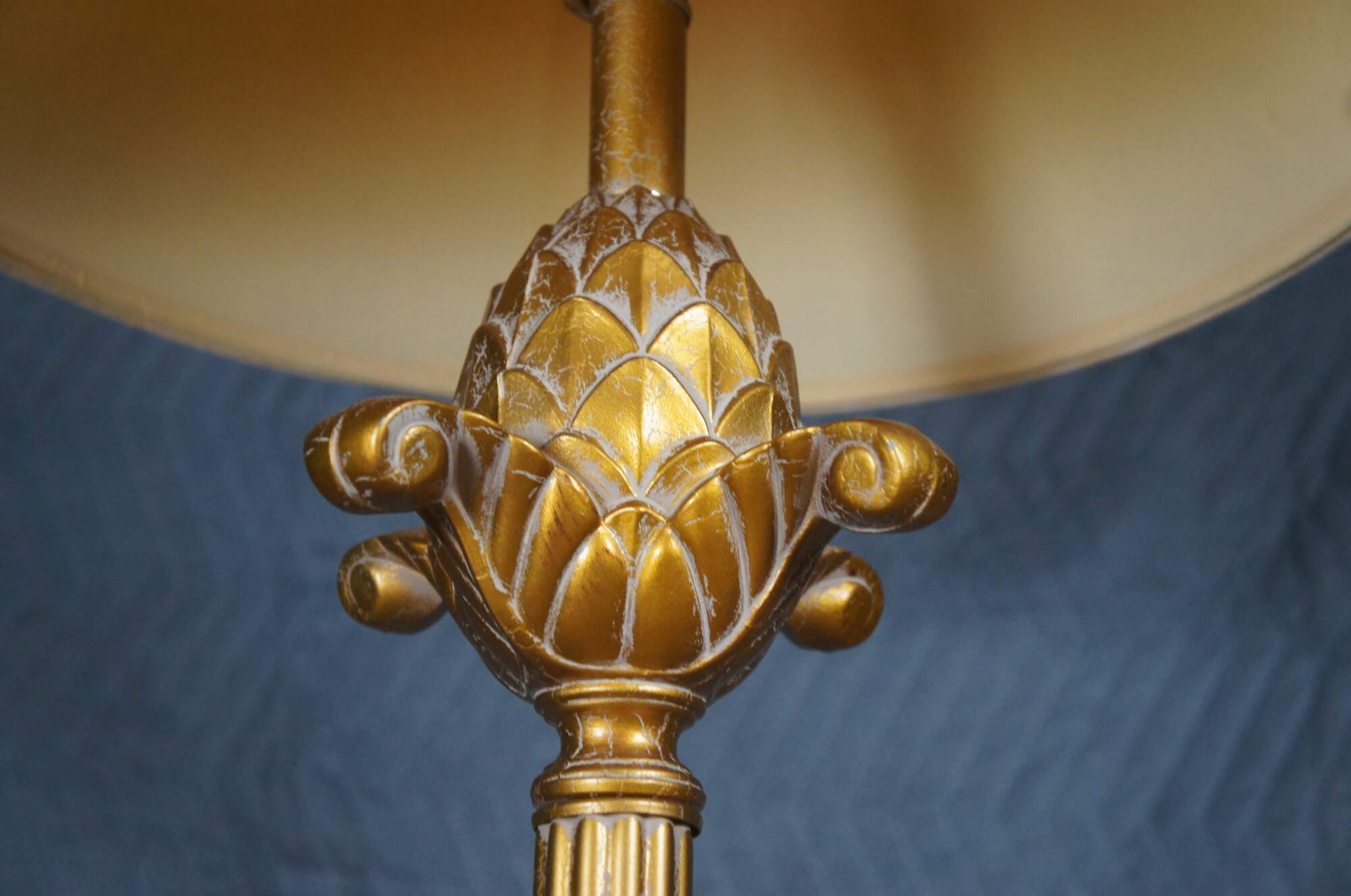 Vintage Stiffel Hollywood Regency style floor lamp featuring fluted column and pineapple deseign with gold crackle finish.