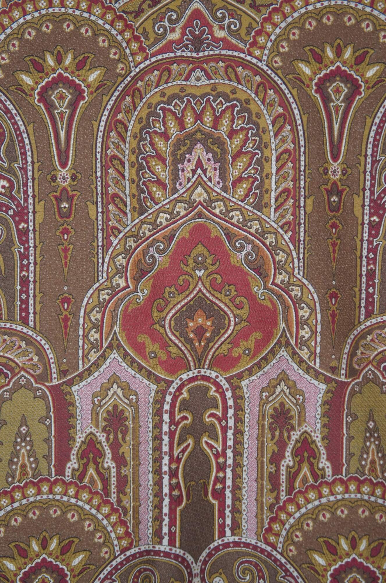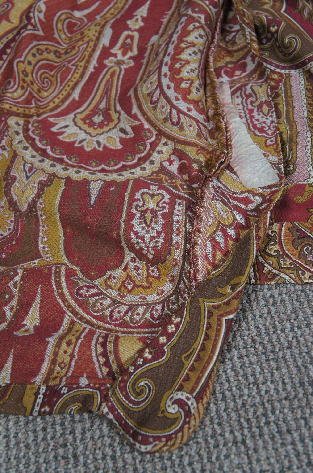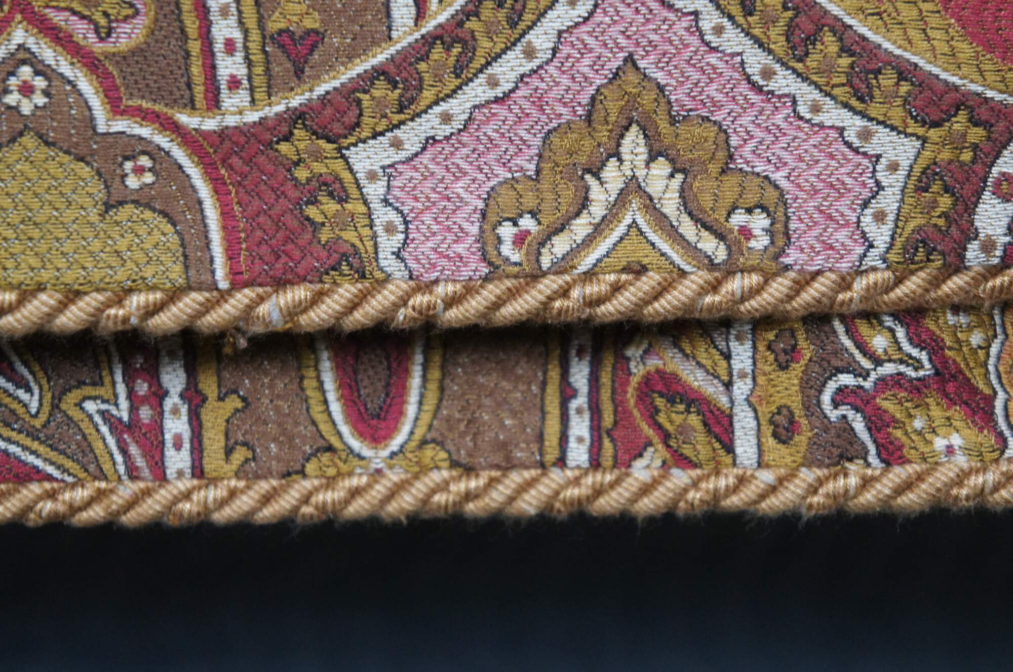 Impressive vintage Anchini King size coverlet / decorative counterpane. 100% Viscose featuring a Kashmir / Middle Eastern inspired design in red and gold with corded trim / piping. MSRP of similar new coverlets by Anchini: $1560
