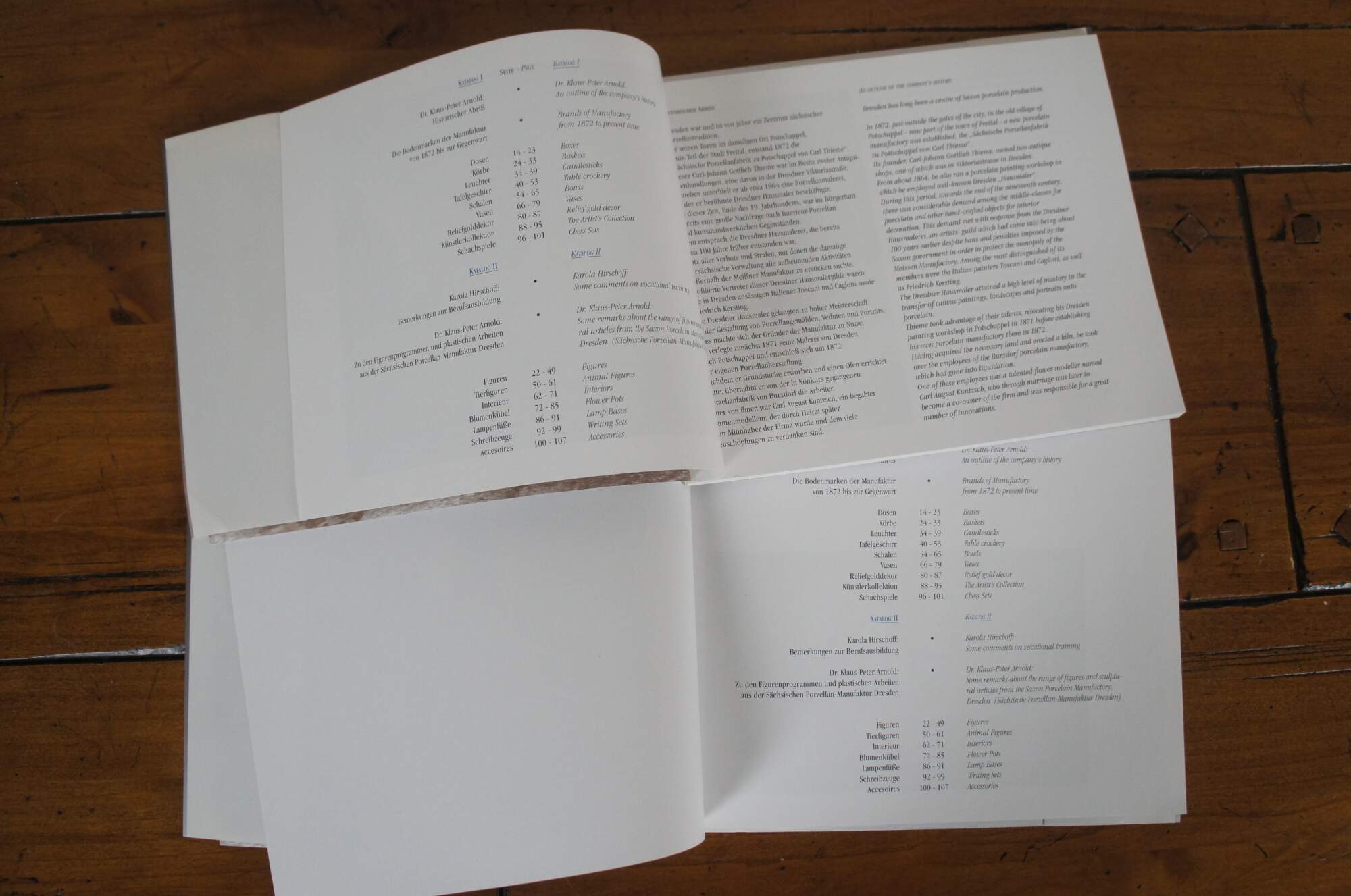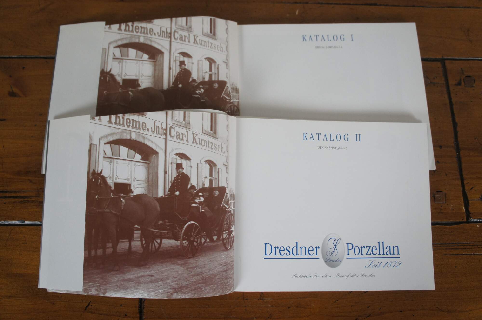 Set of Dresden Porcelain history catalogs - "Dresdner Porzellan: Katalog I (ISBN-Nr. 3-9805314-1-4) & Katalog II (ISBN-Nr. 3-9805314-2-2). Paperback / soft bound covers with dust jackets.