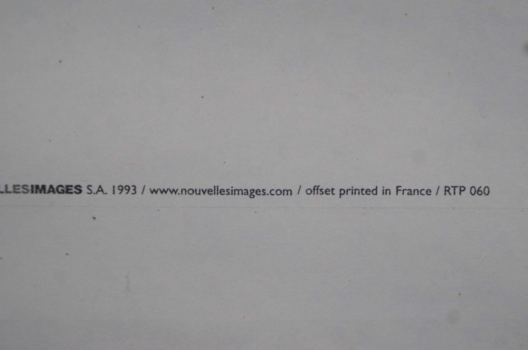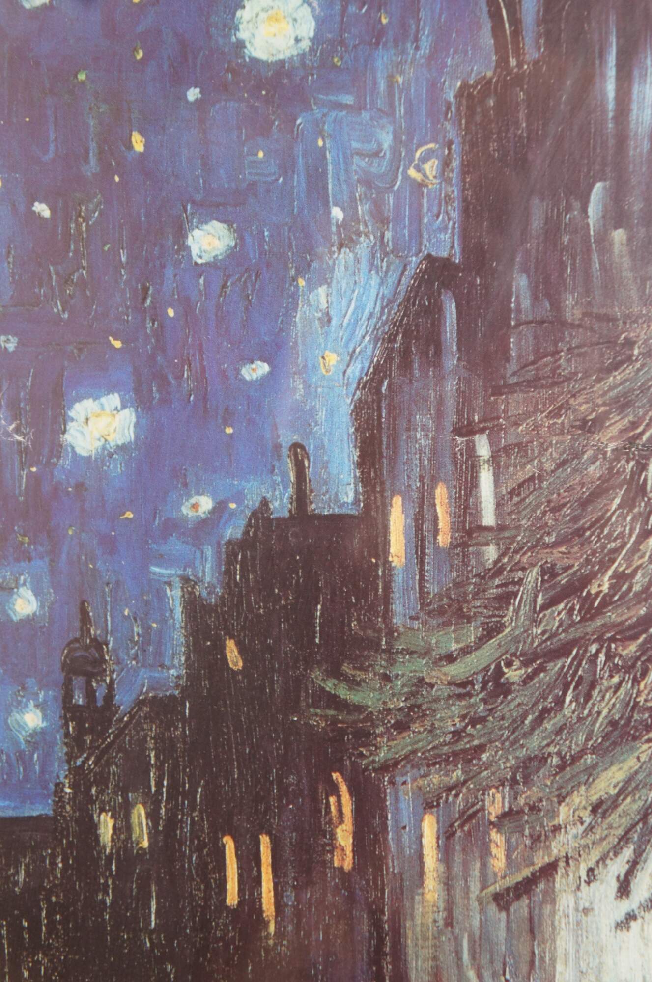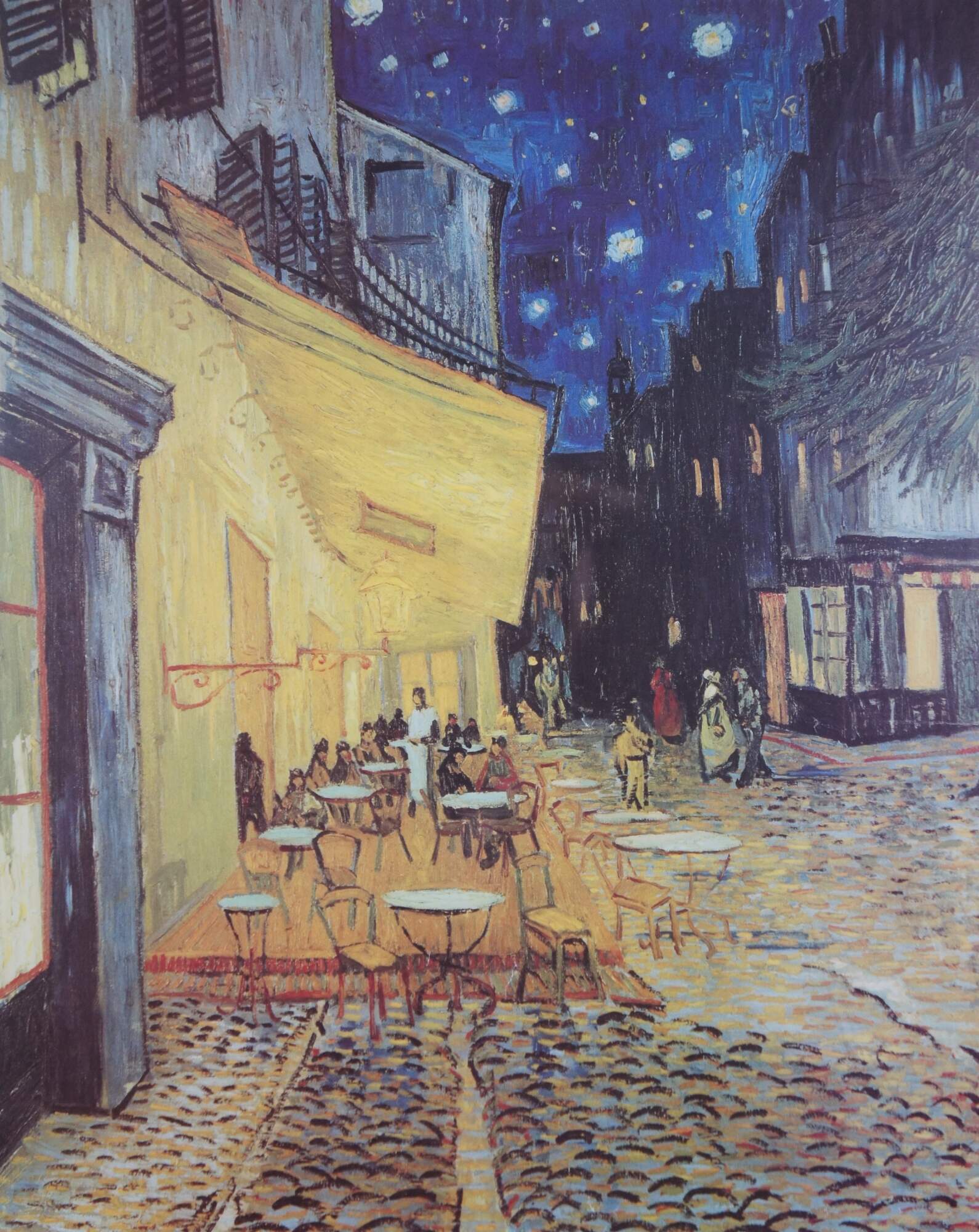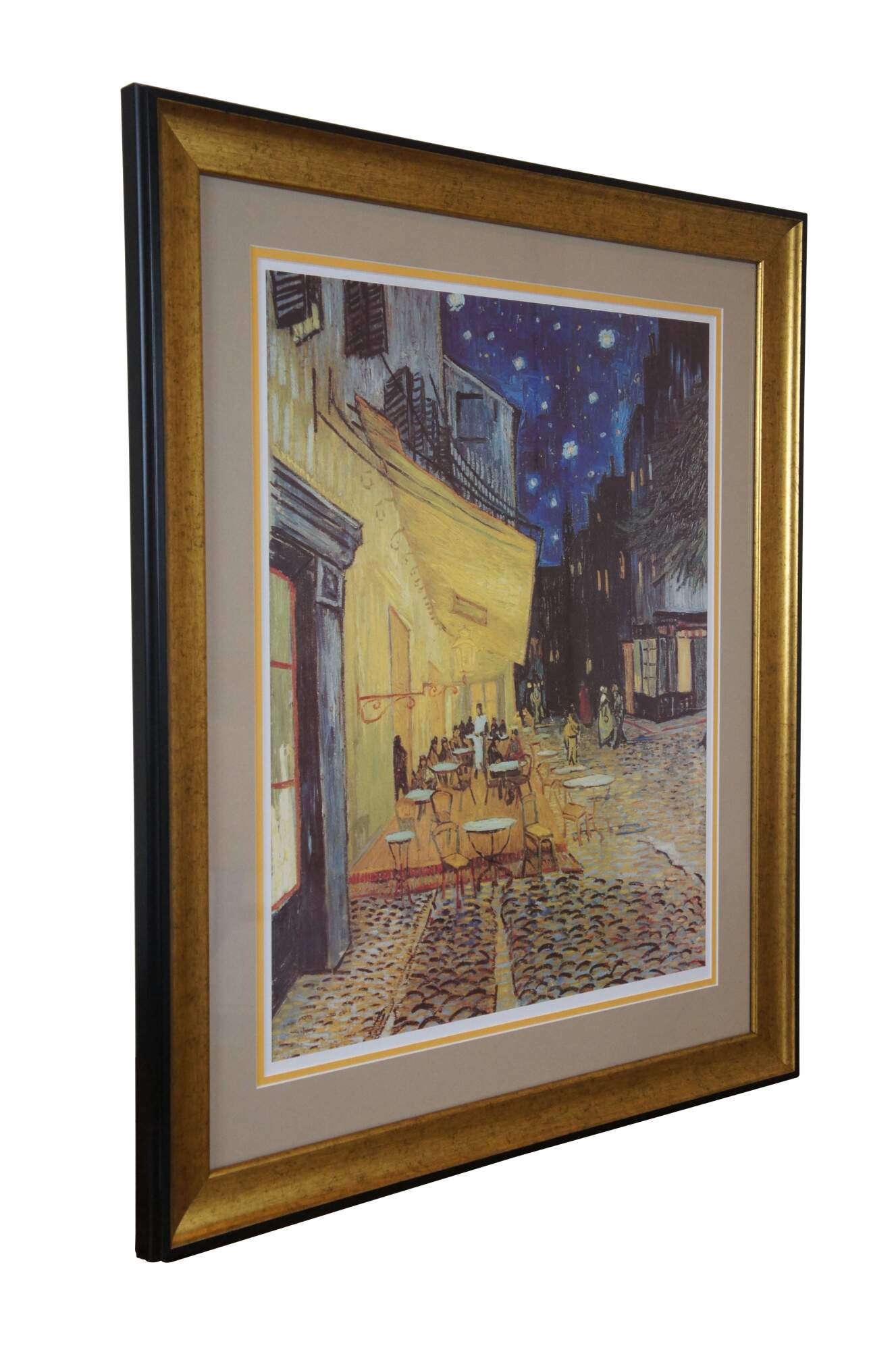 Vintage lithograph print on paper of Vincent Van Gogh's "Le cafe, le soir" aka "The Cafe at Night." Offset printed in France by Nouvelles Images S.A. 1993. Beige and yellow layered mat; gilded frame with black outer edge.