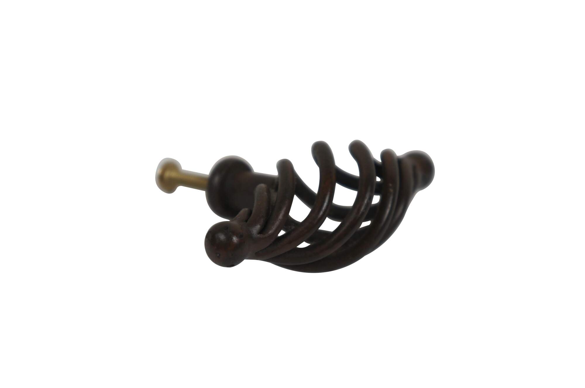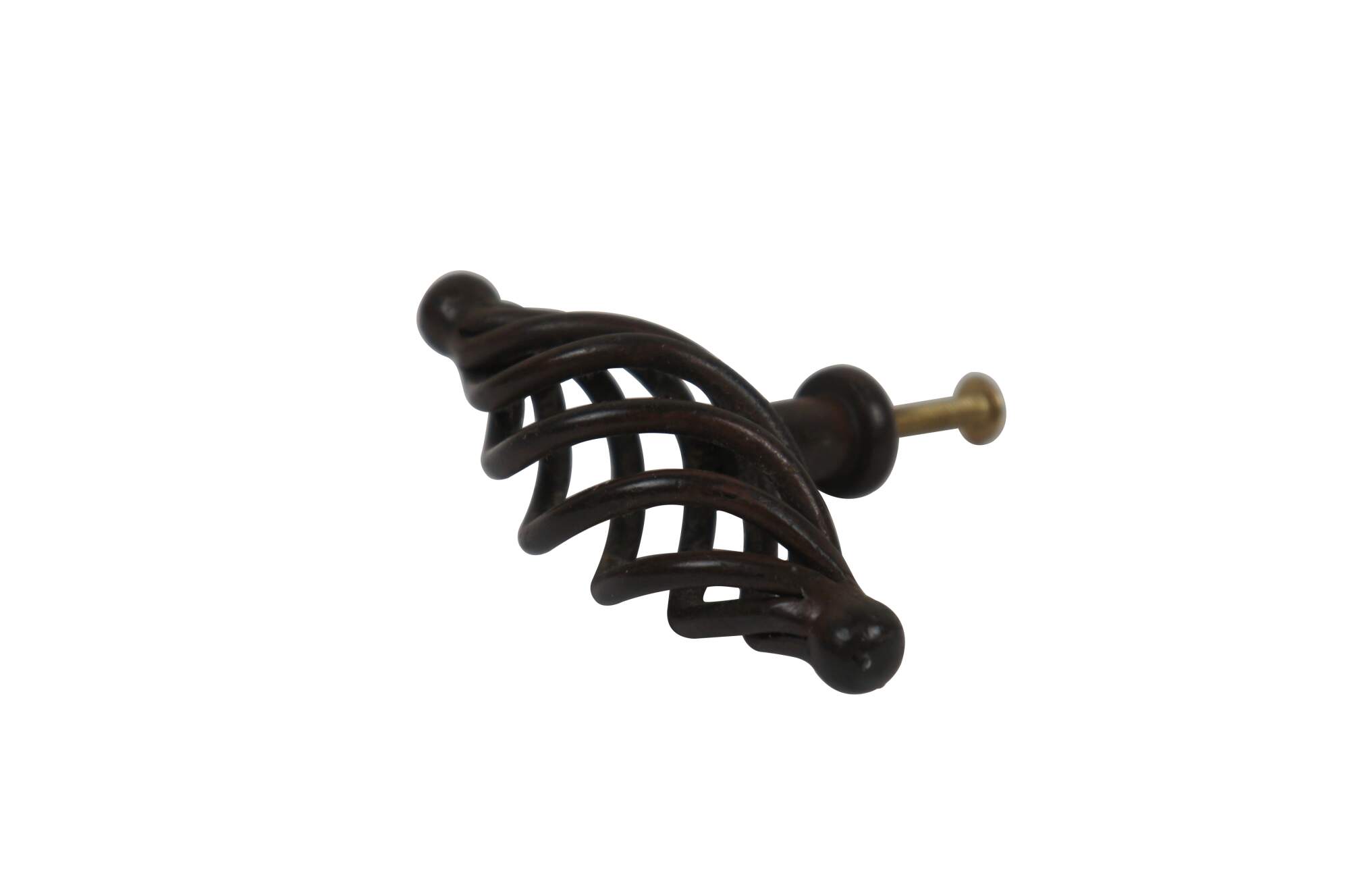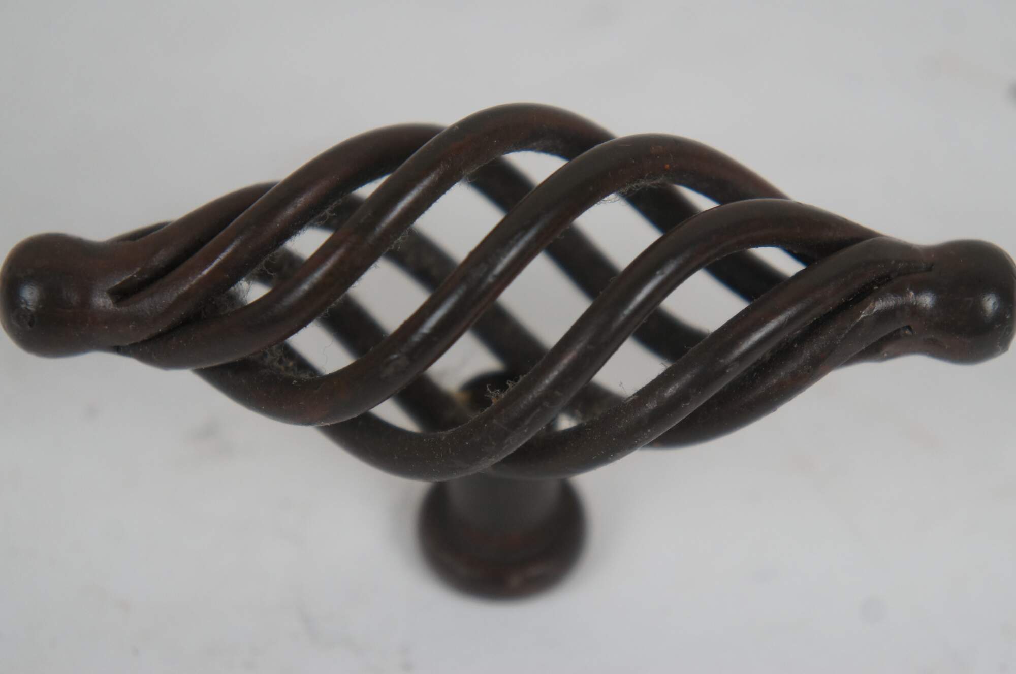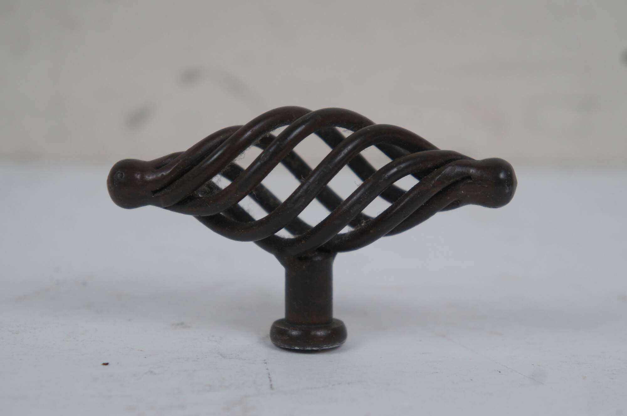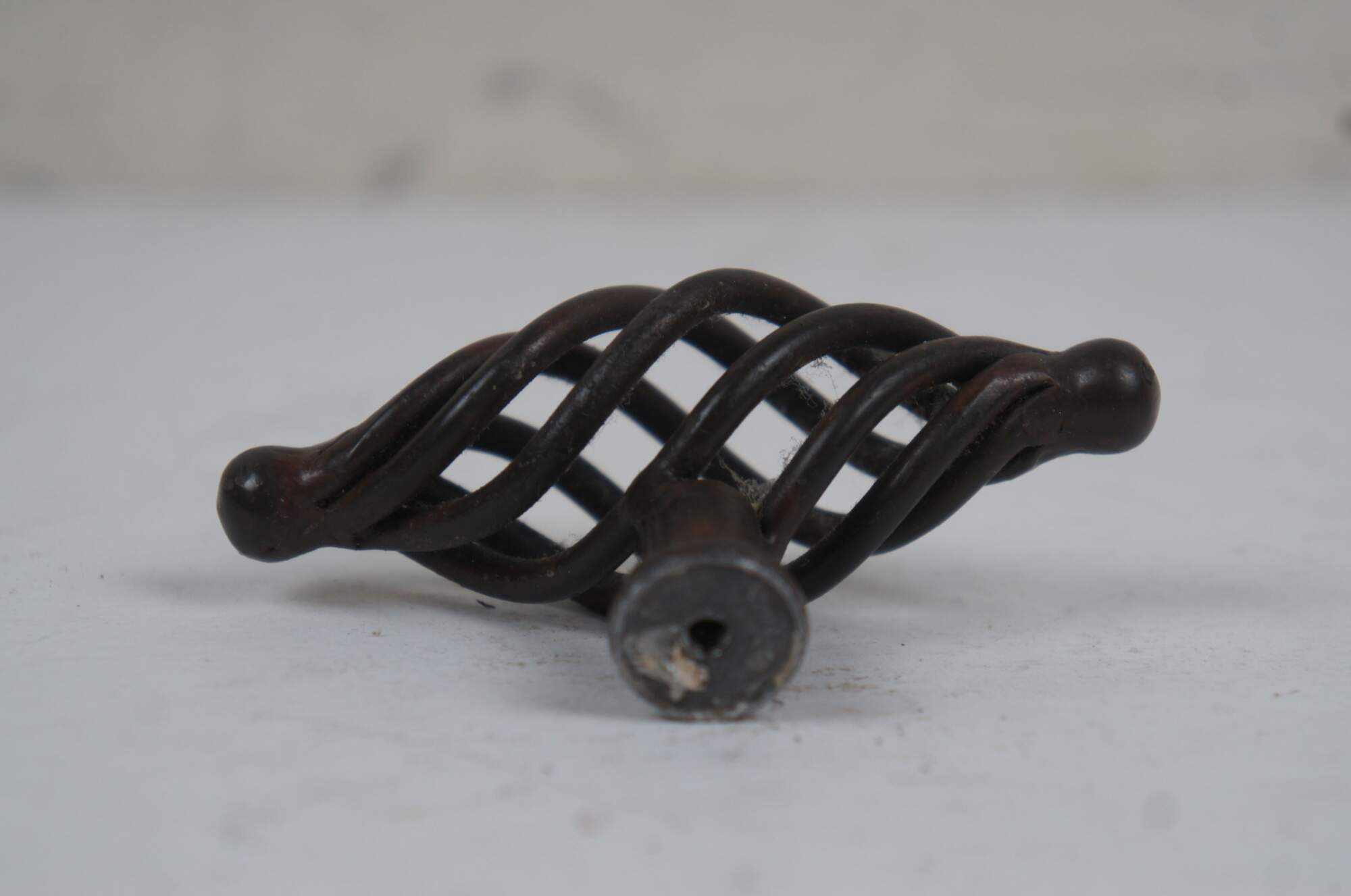12 Available - Twisted metal oval / oblong birdcage style cabinet / drawer pull / knob, finished in deep brown / dark bronze.