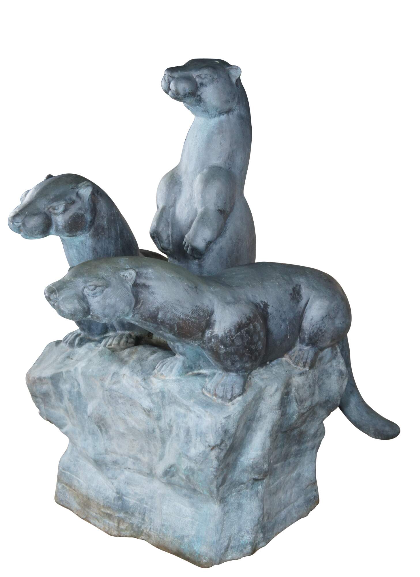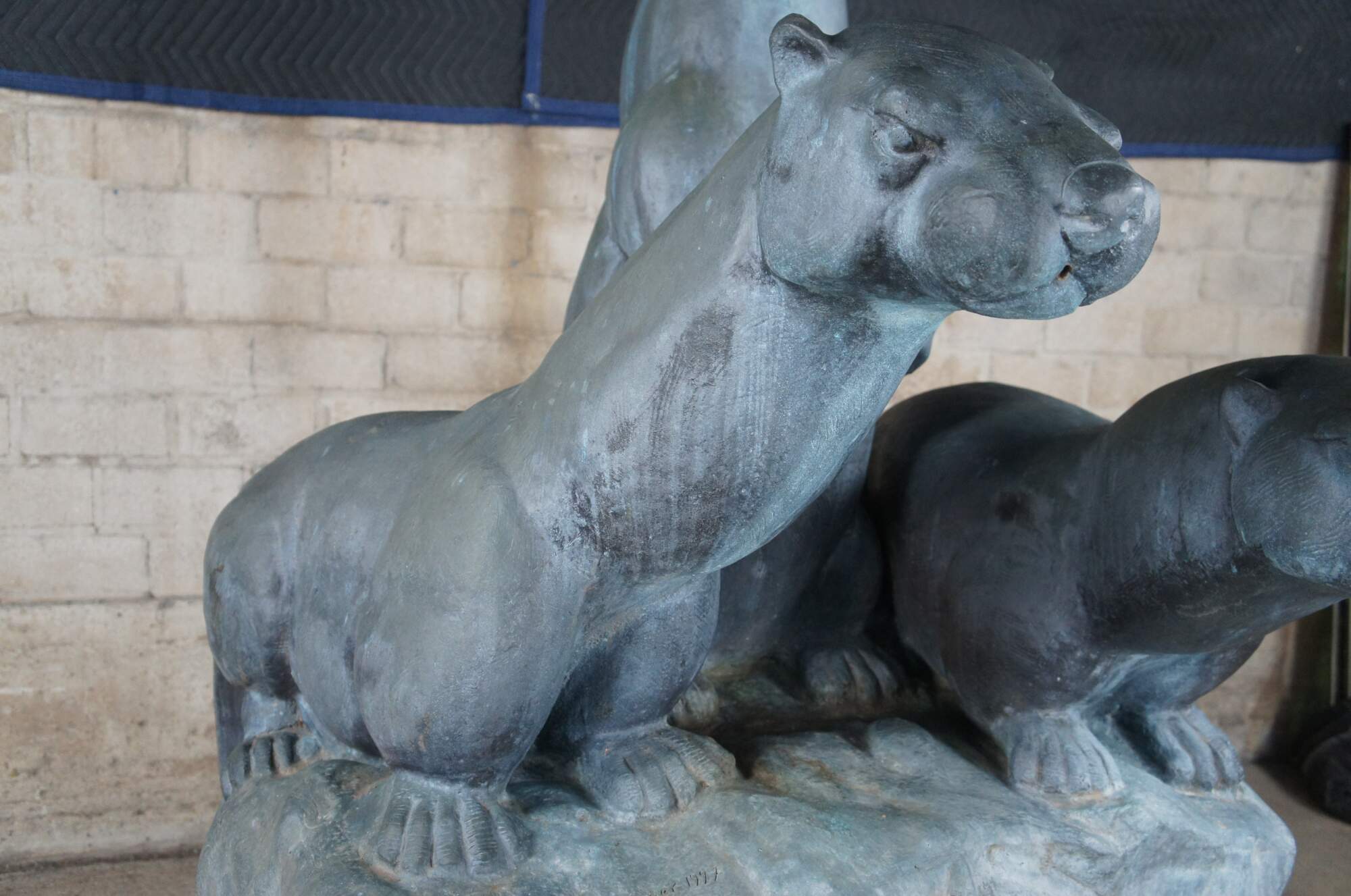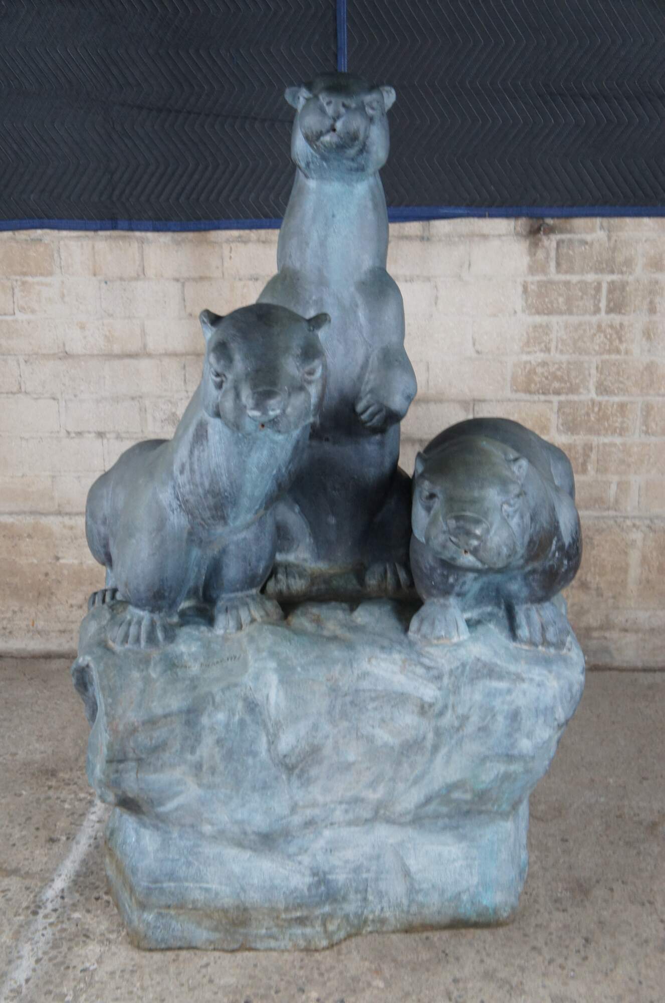 A very large and impressive Max Turner fountain statue. Made out of bronze featuring a trio of guardian Otters. Circa 1997. The otter symbolizes friendship, peace, kindness and family. The otter is also social and mischievous and a symbol of grace, empathy, happiness and never-ending curiosity.