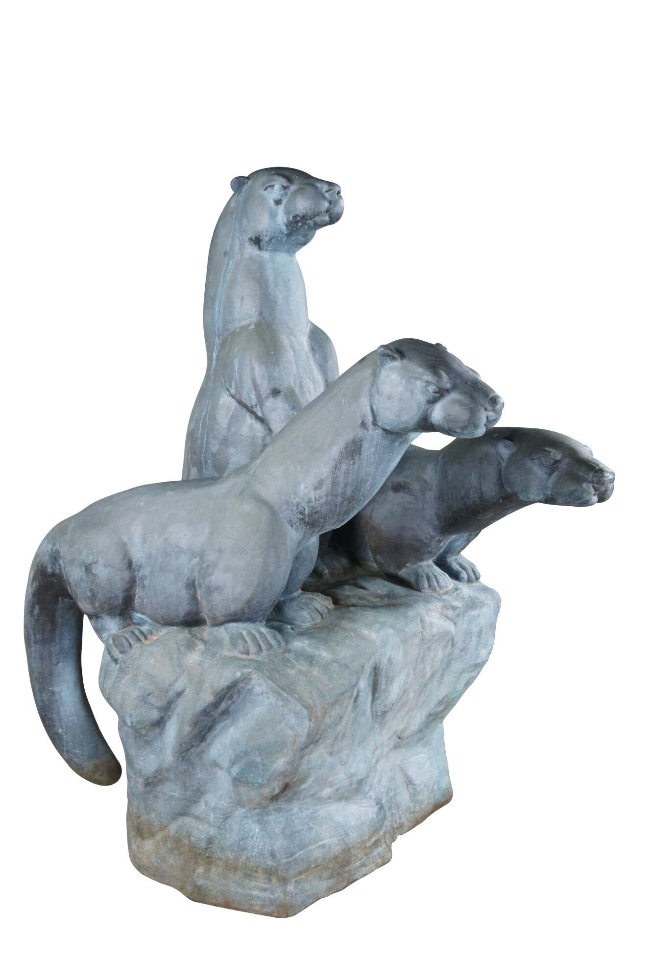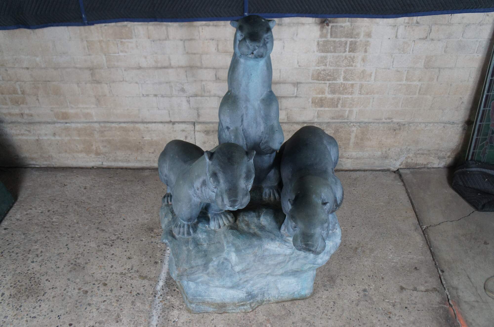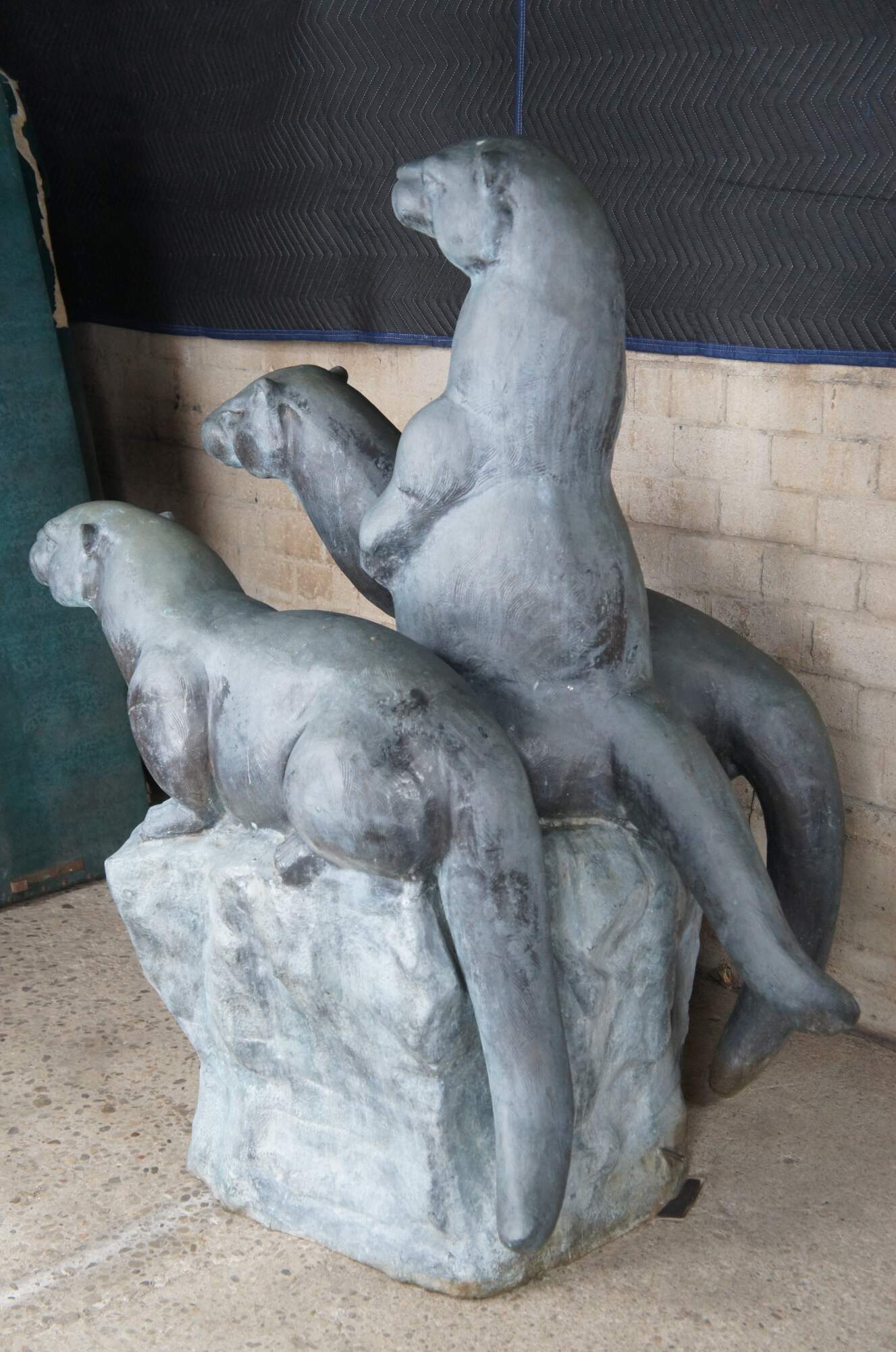 A very large and impressive Max Turner fountain statue. Made out of bronze featuring a trio of guardian Otters. Circa 1997. The otter symbolizes friendship, peace, kindness and family. The otter is also social and mischievous and a symbol of grace, empathy, happiness and never-ending curiosity.