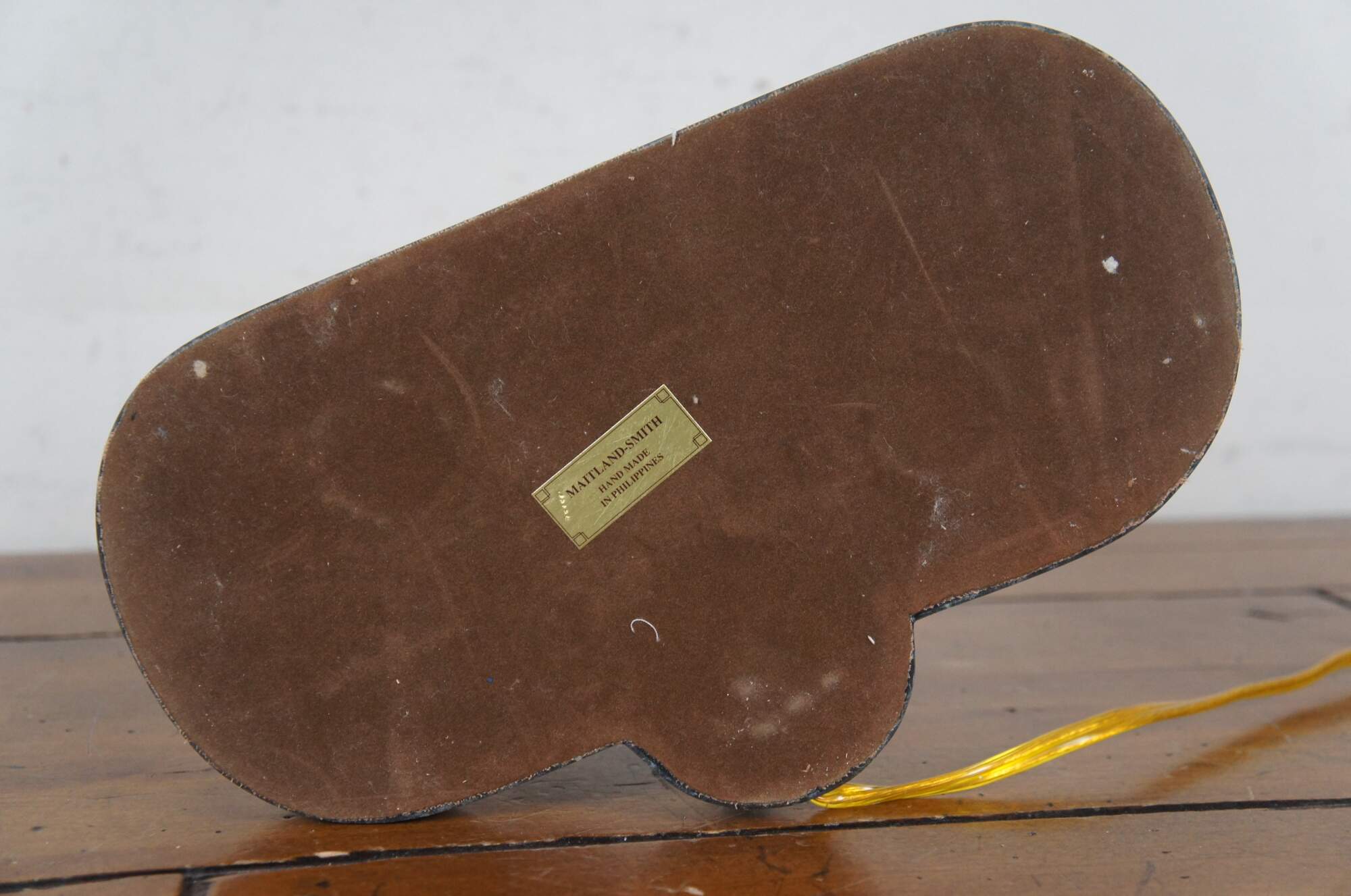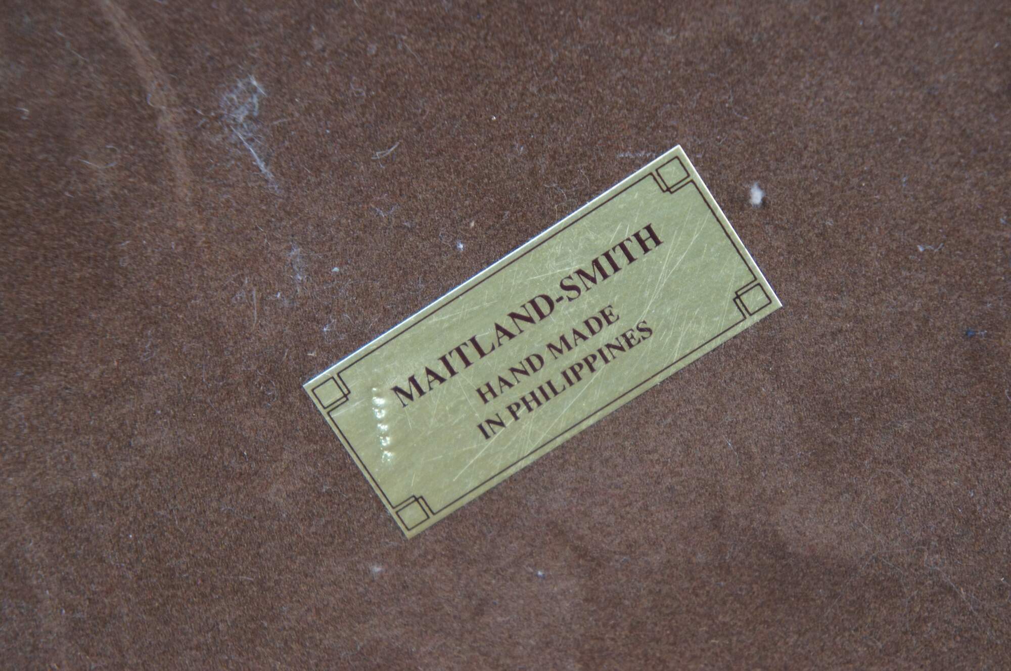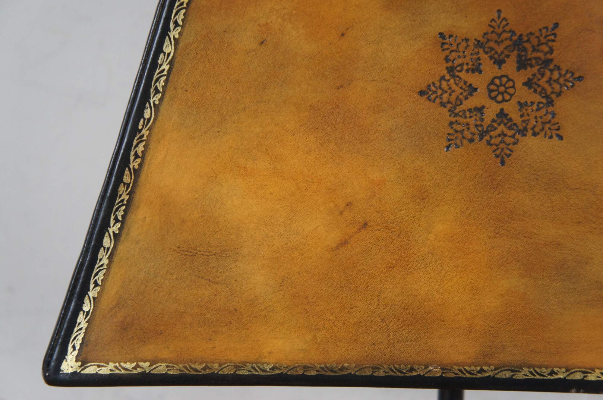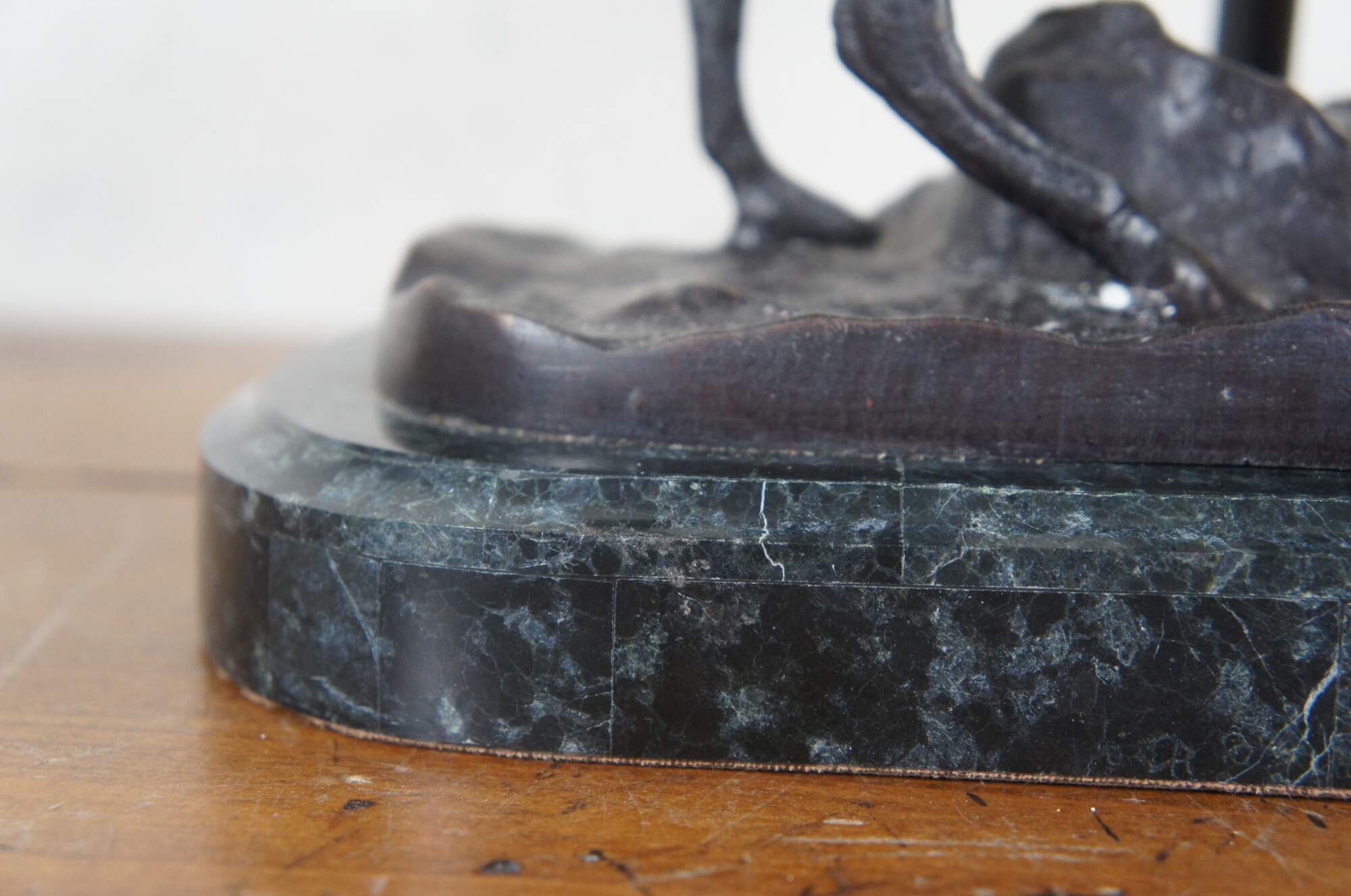 Late 20th century figural horse bronze table lamp by Maitland Smith featuring a mare and foal in tableau on a charcoal black marble clad base. Includes hard and rectangular tooled / gilded leather shade with foiled interior. Horse bit shaped finial. Hand made in Philippines.