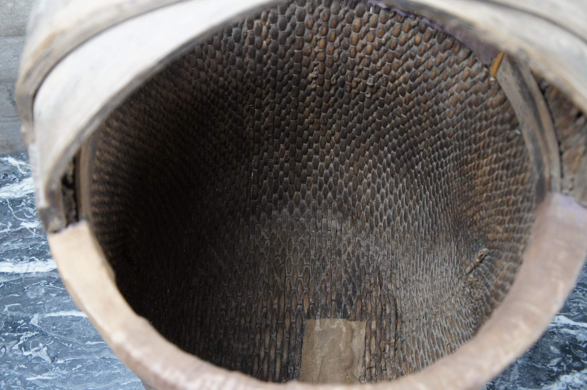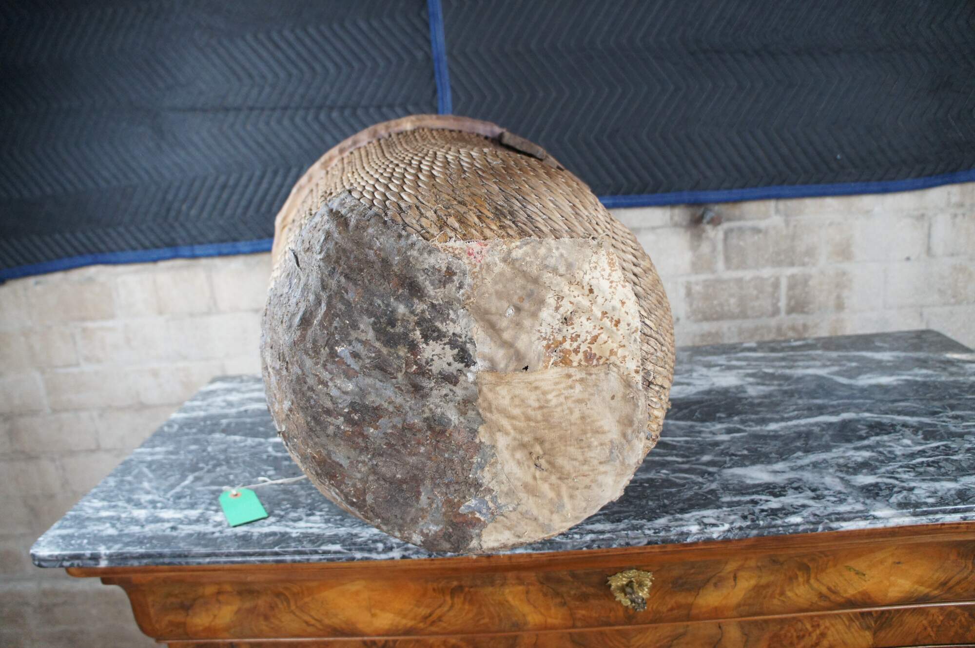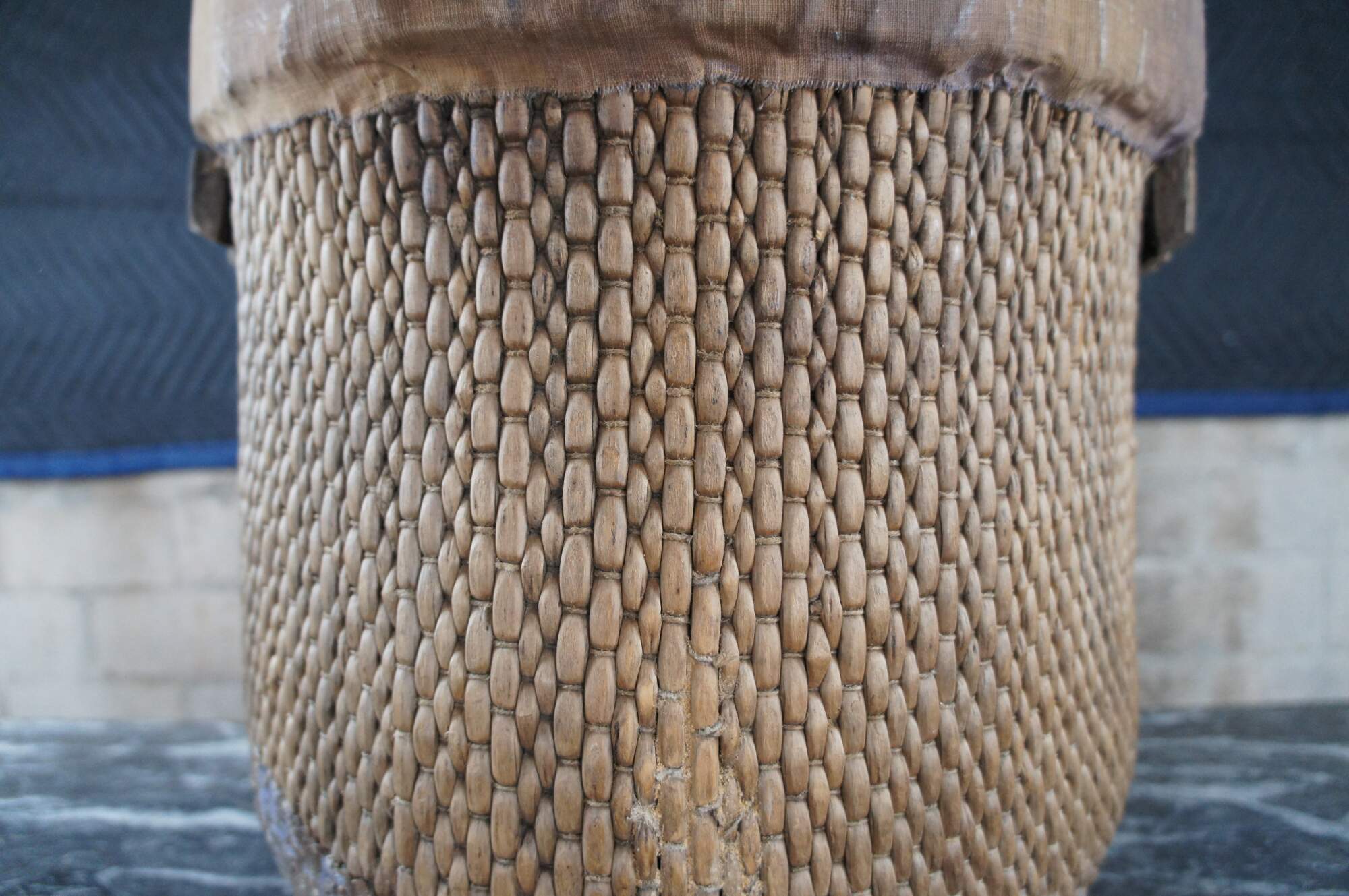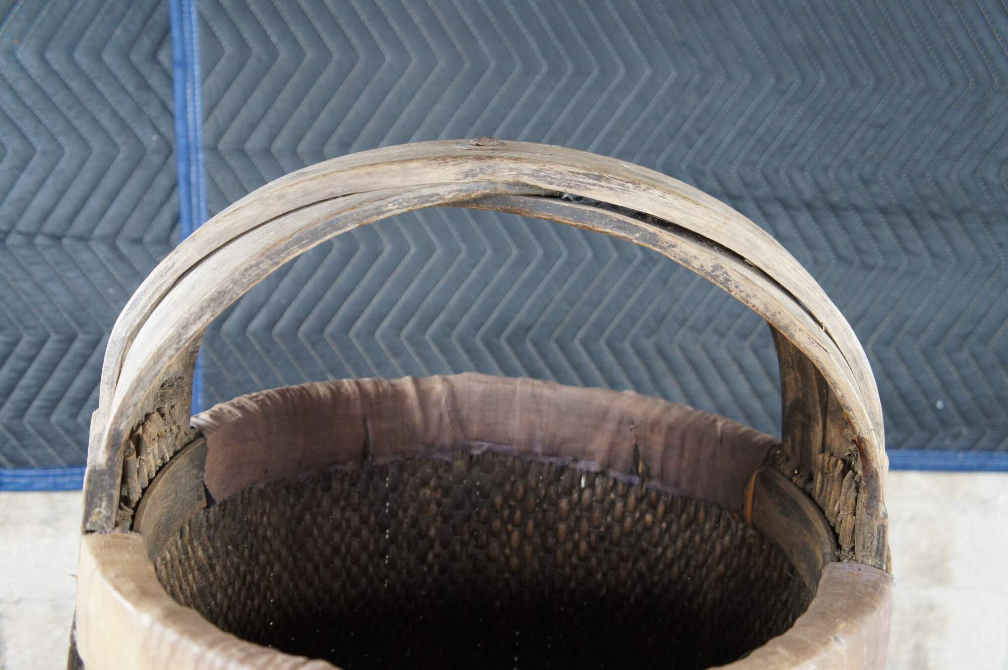 Early 20th Century Chinese Rice Basket. Made from woven reed with a bentwood handle.