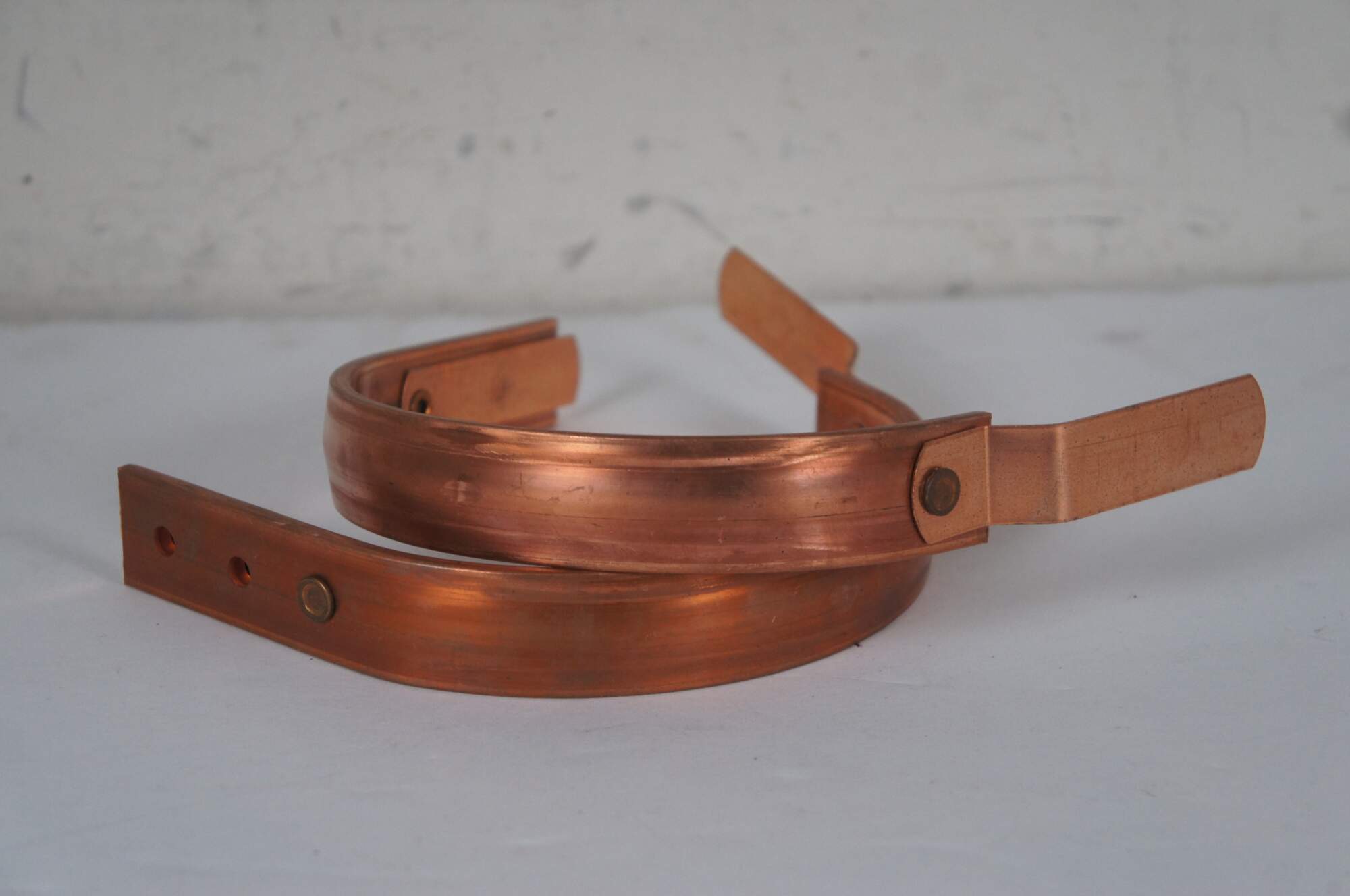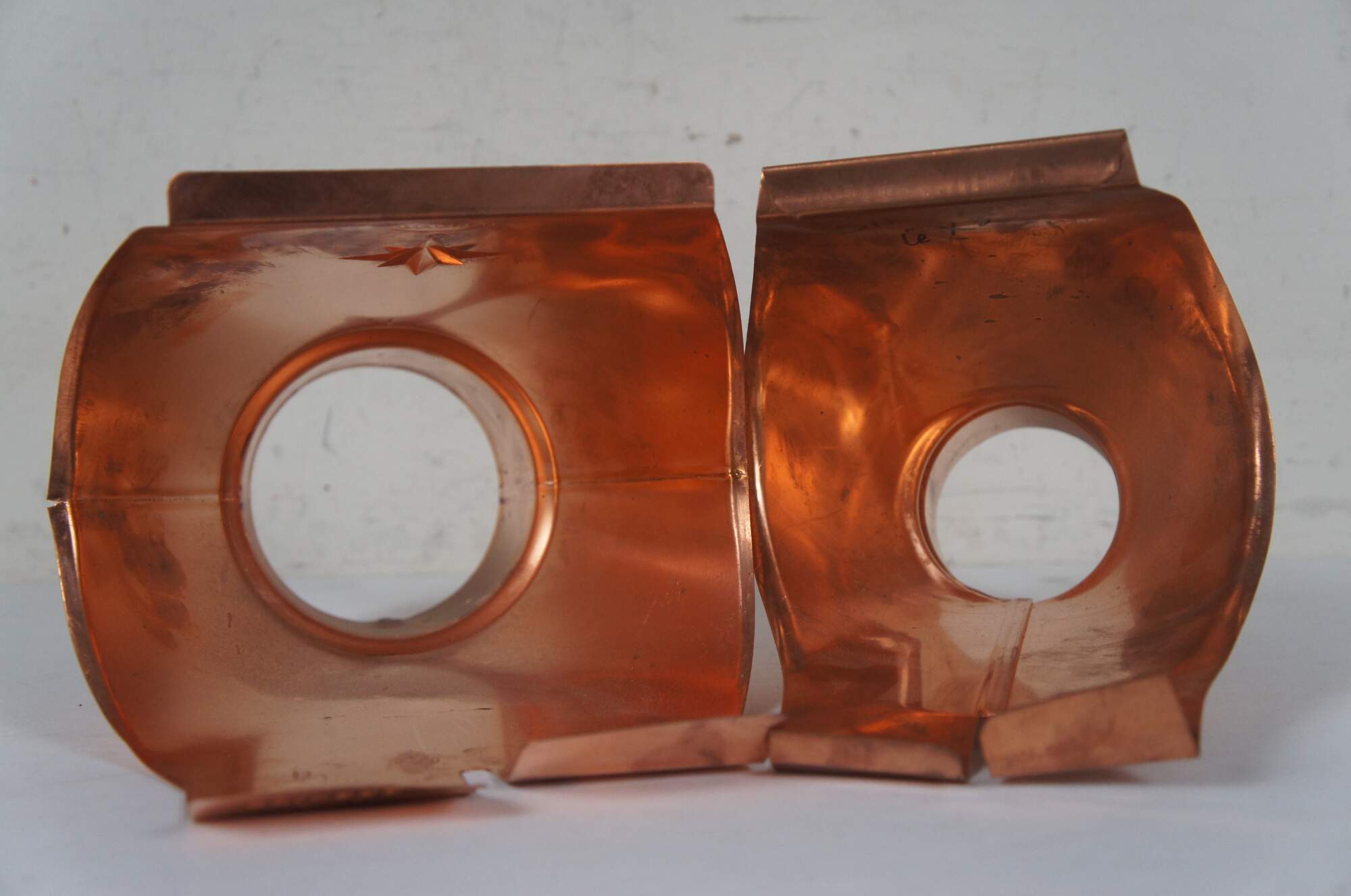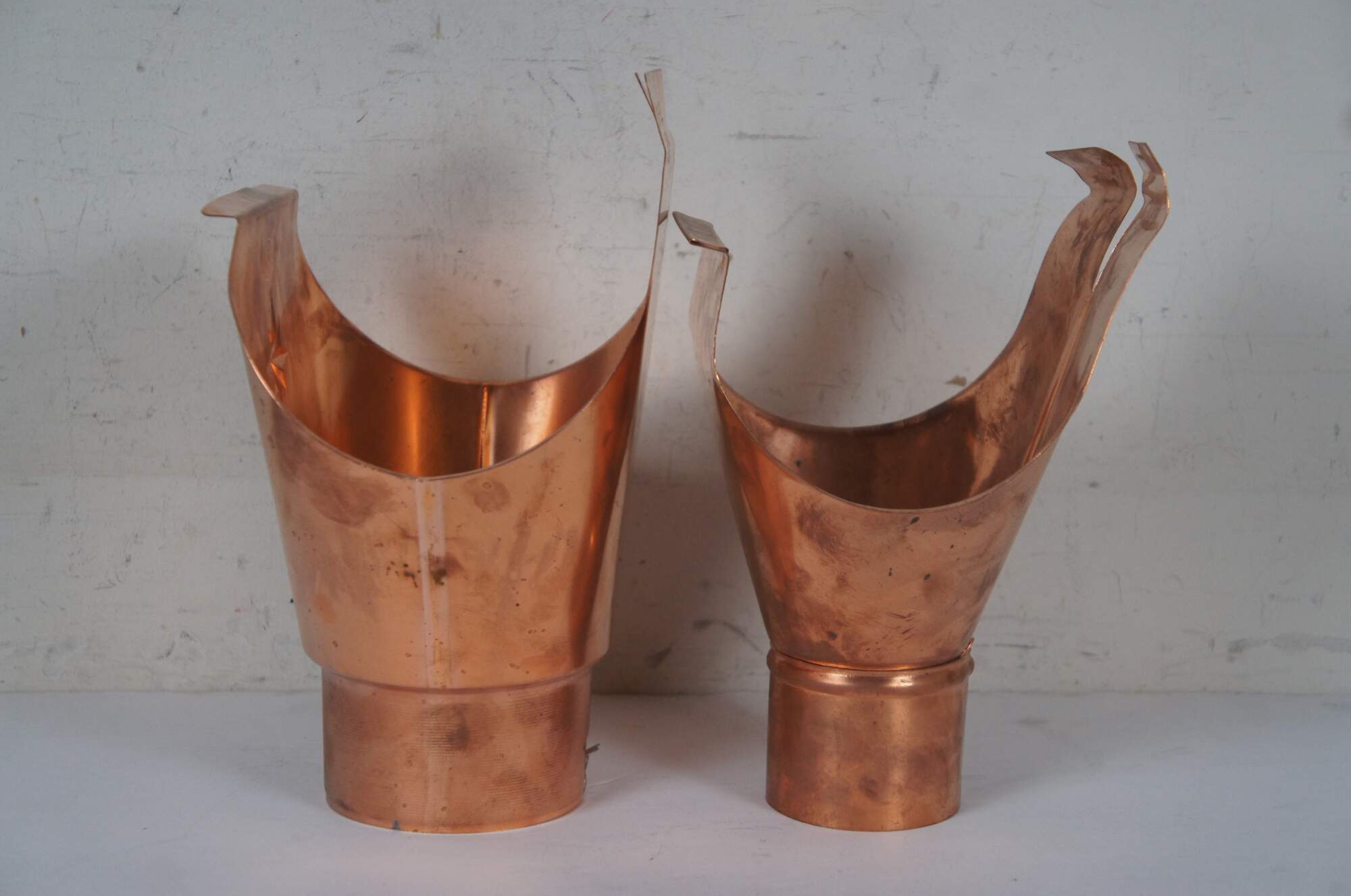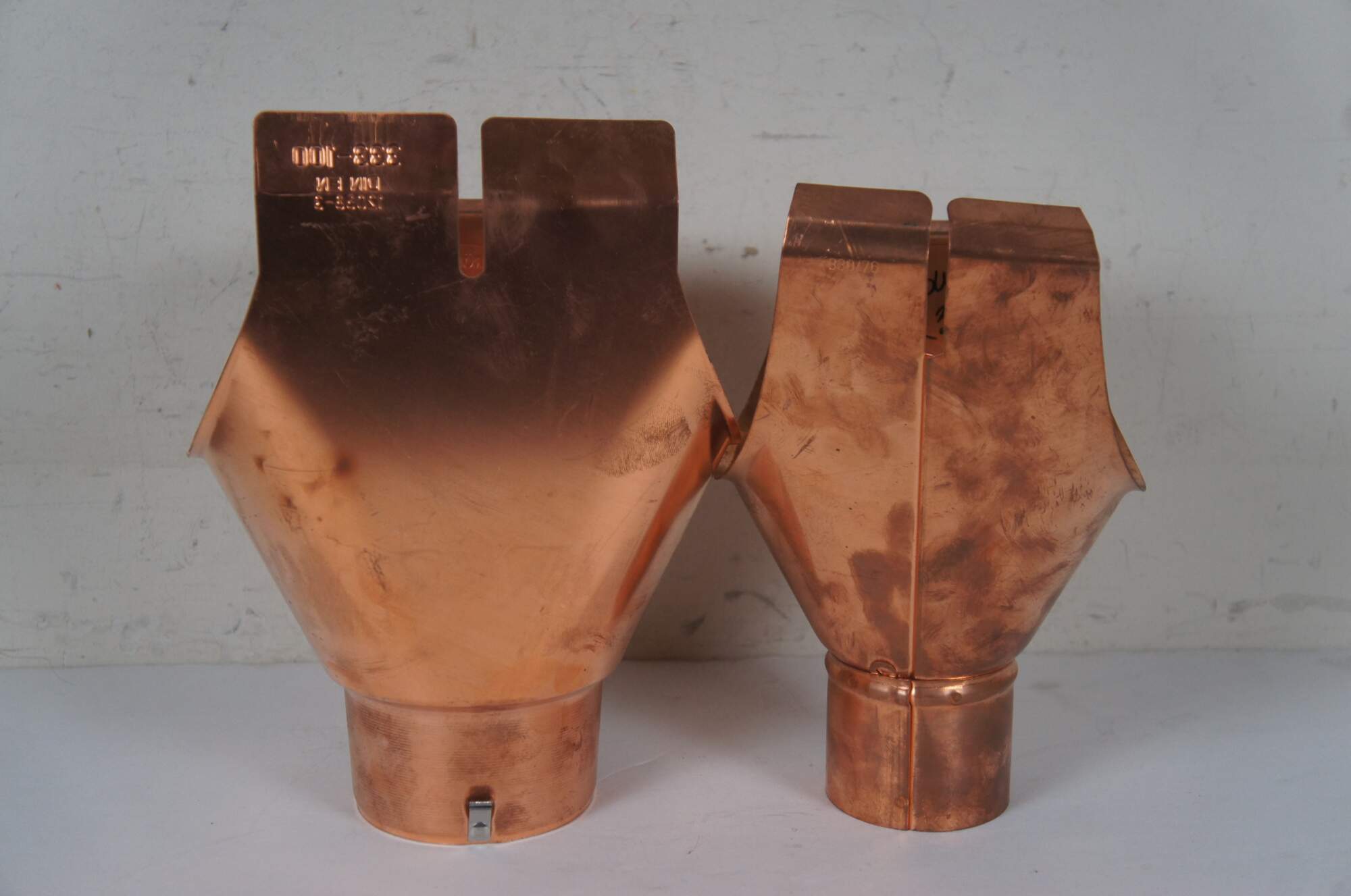 Late 20th century pair of copper downspout / gutter outlets. Includes two support brackets.