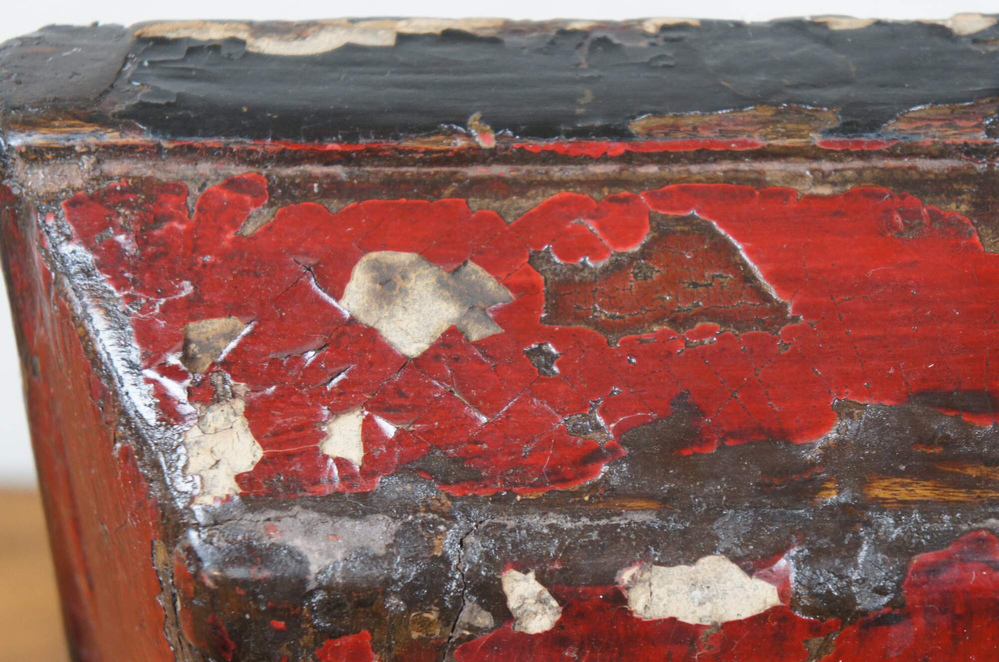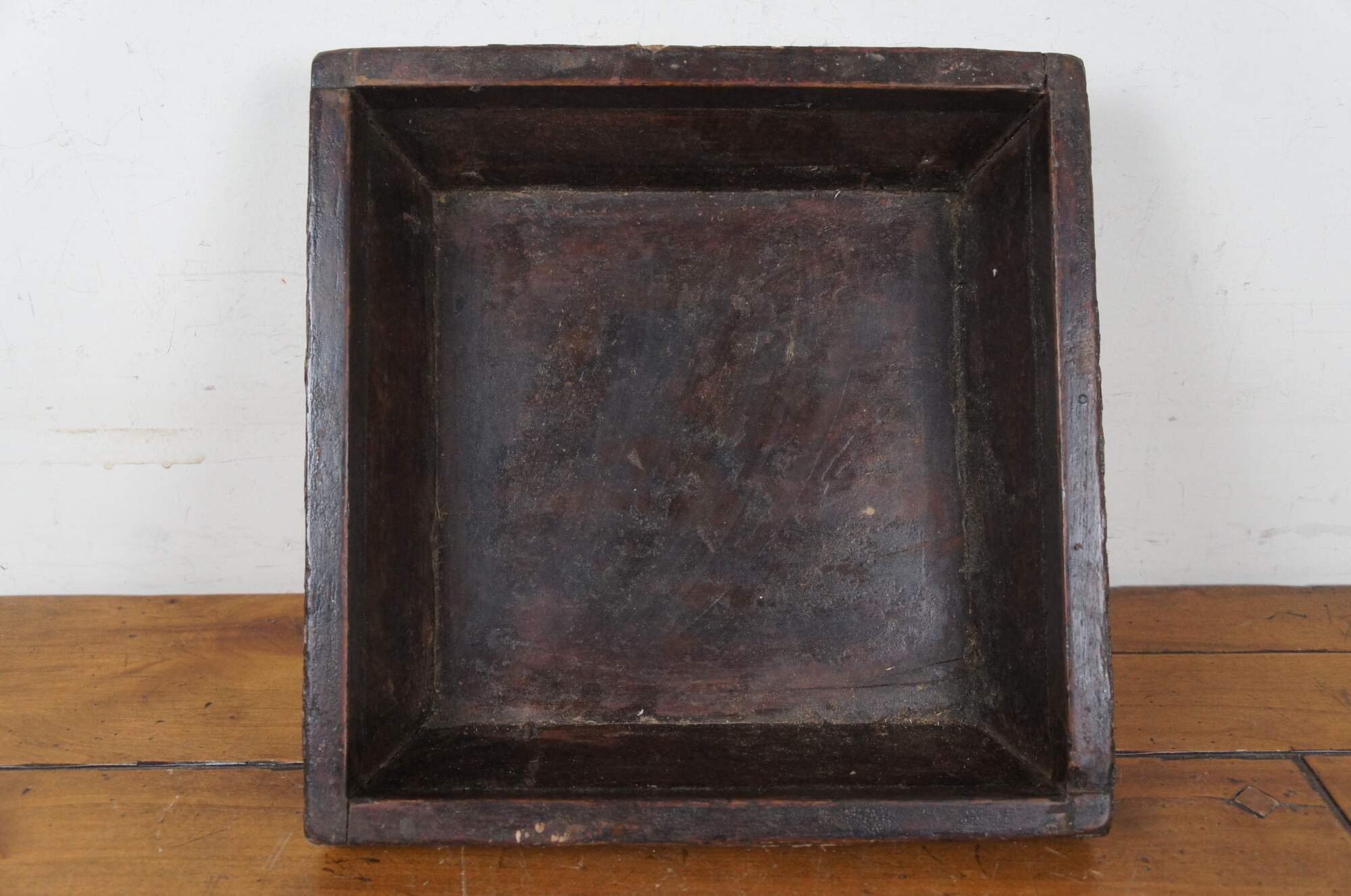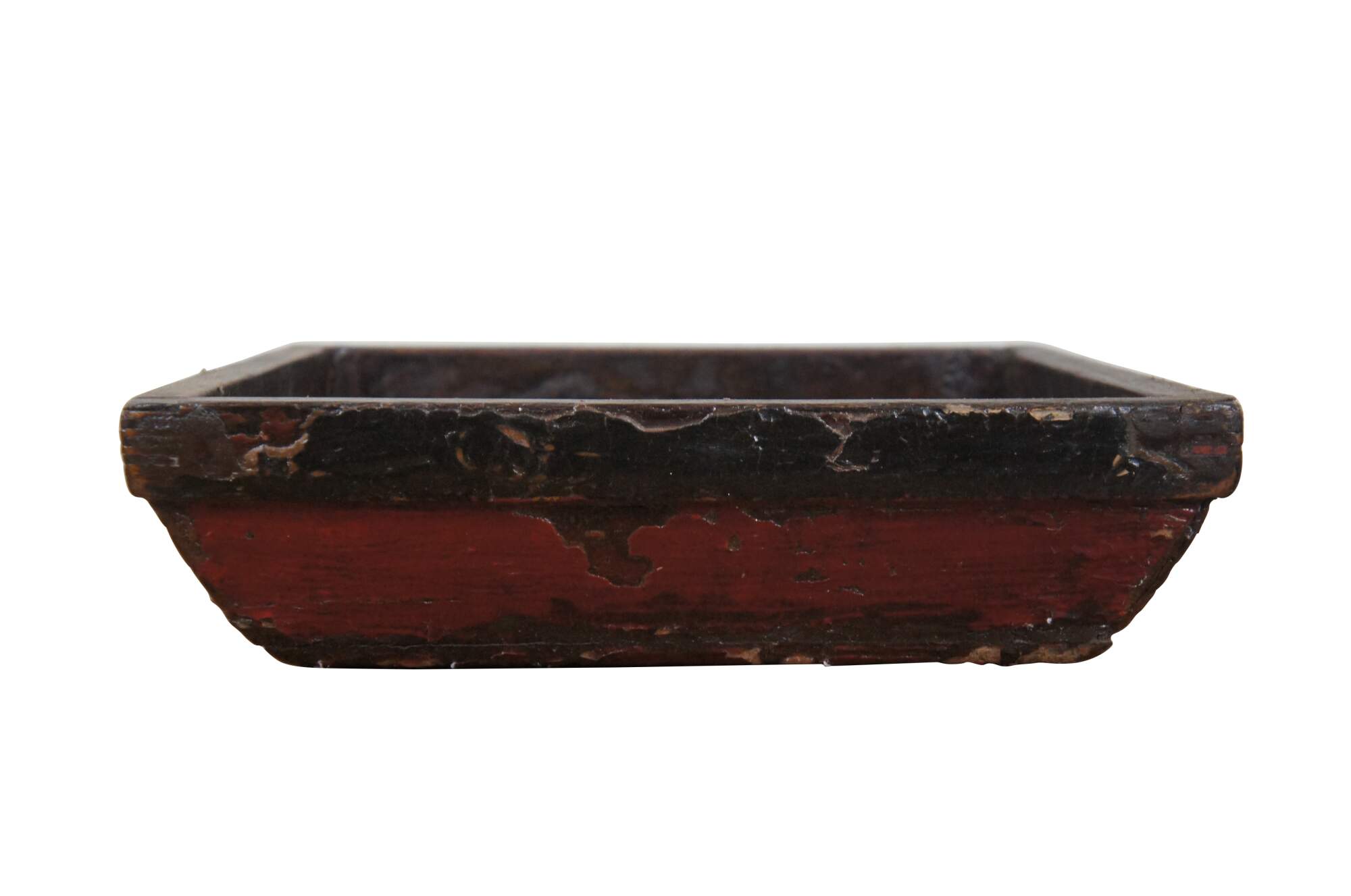 Antique Japanese square wooden serving bowl / tray / bonsai pot finished with red and black lacquer.
