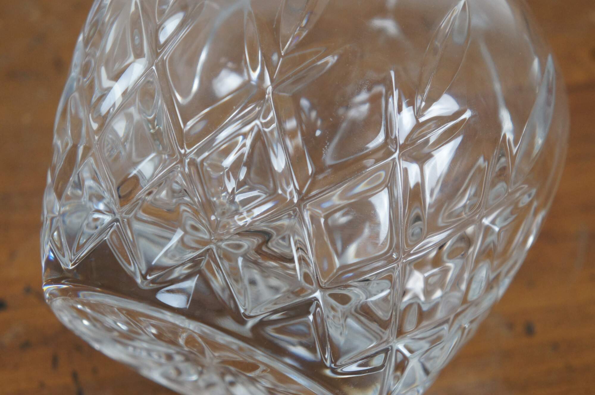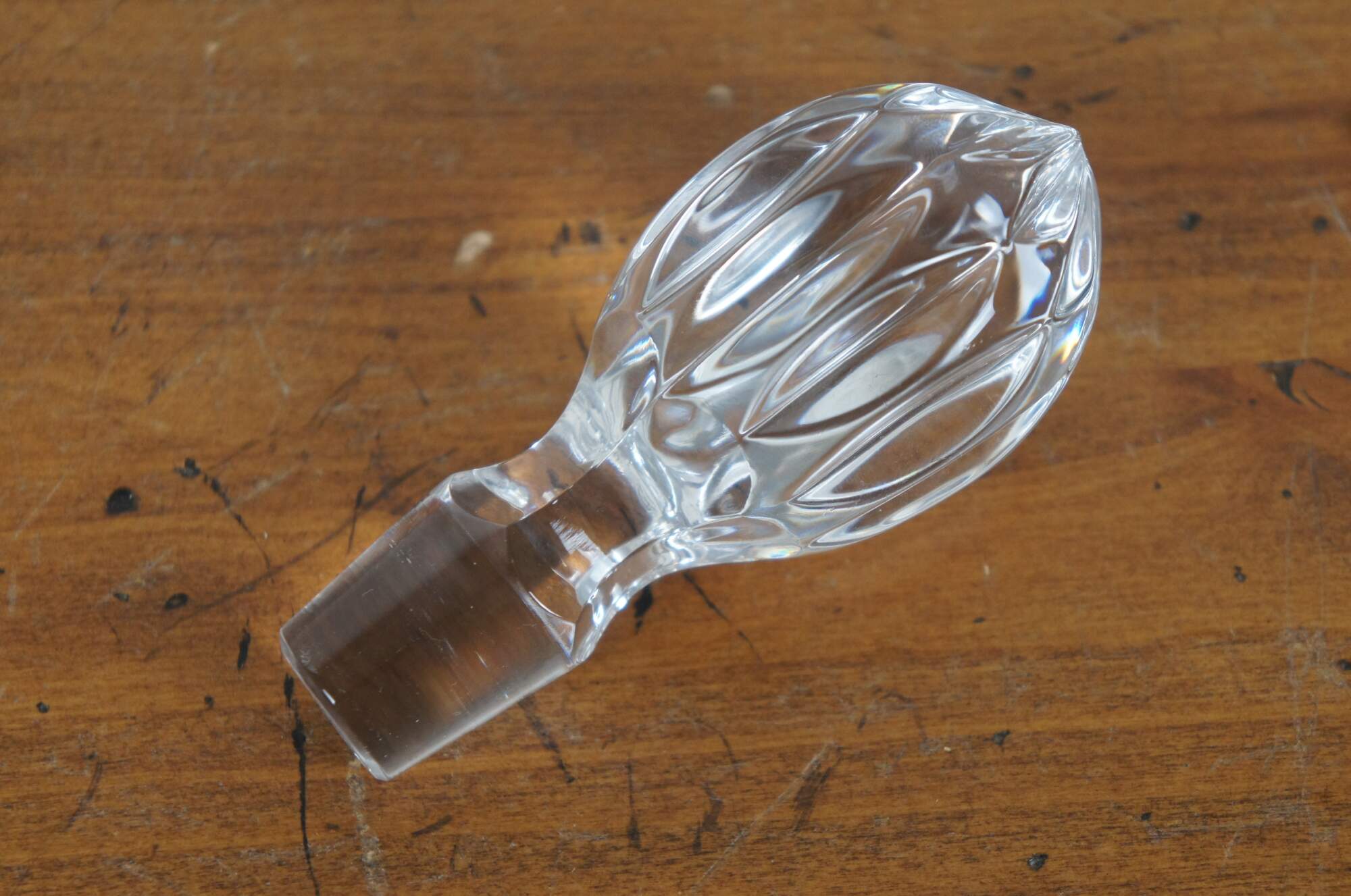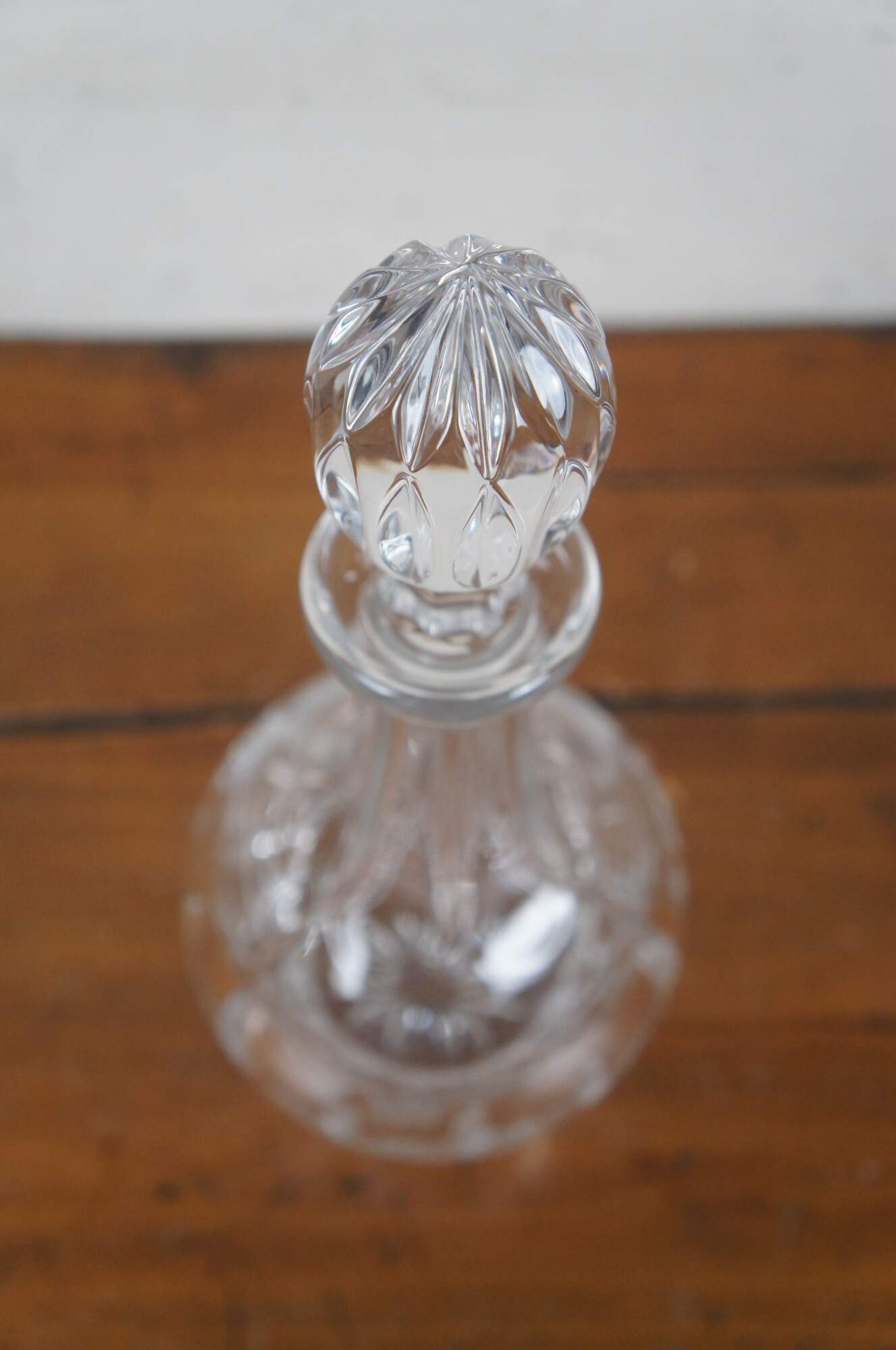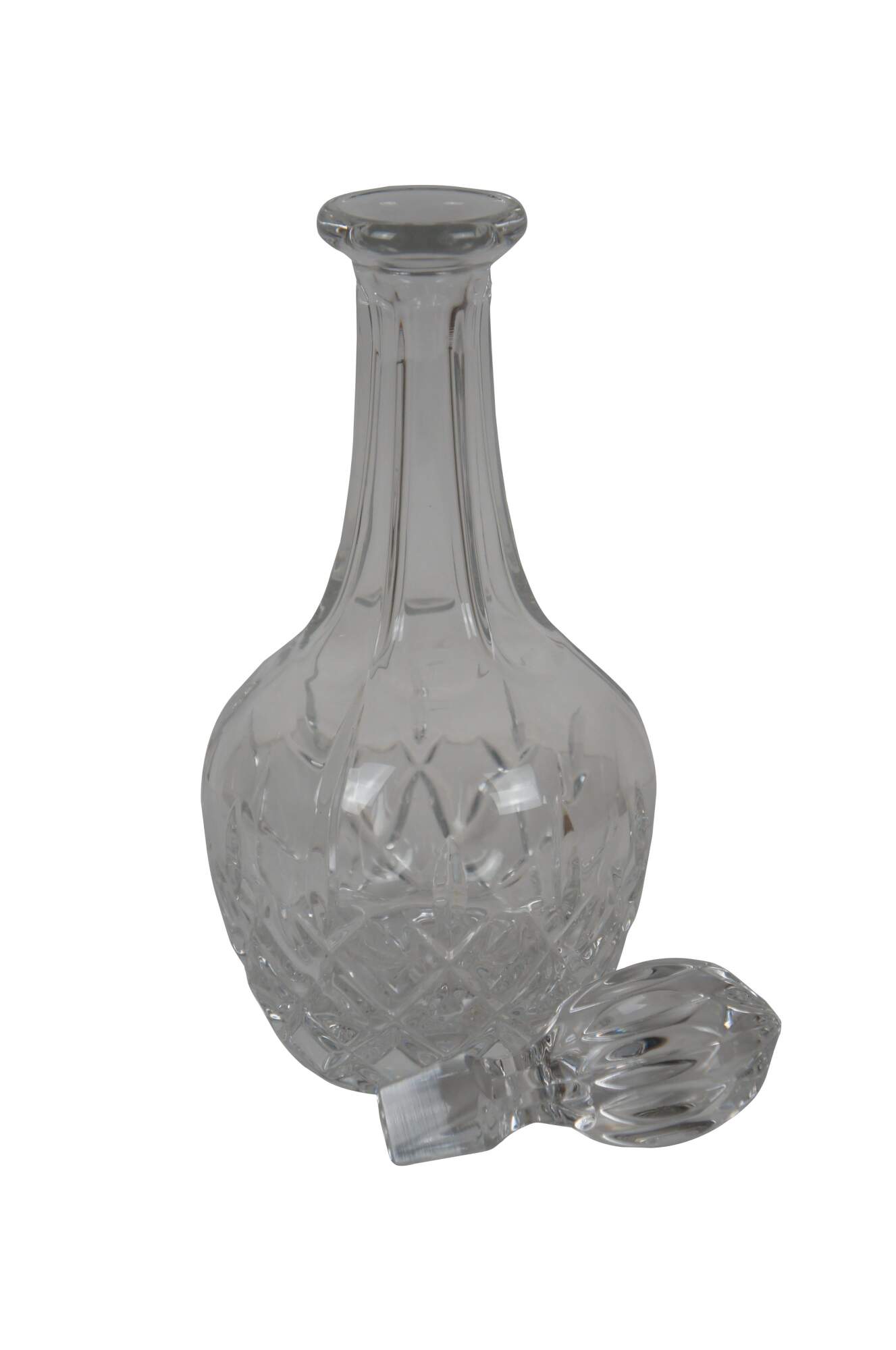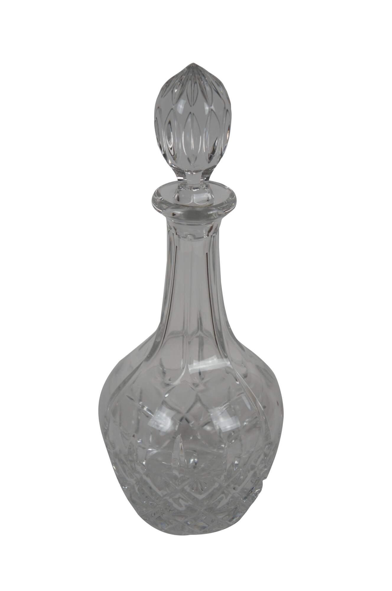 Late 20th century Gorham King Edward style cut crystal wine decanter. Balloon shaped bottle and fluted egg shaped stopper.