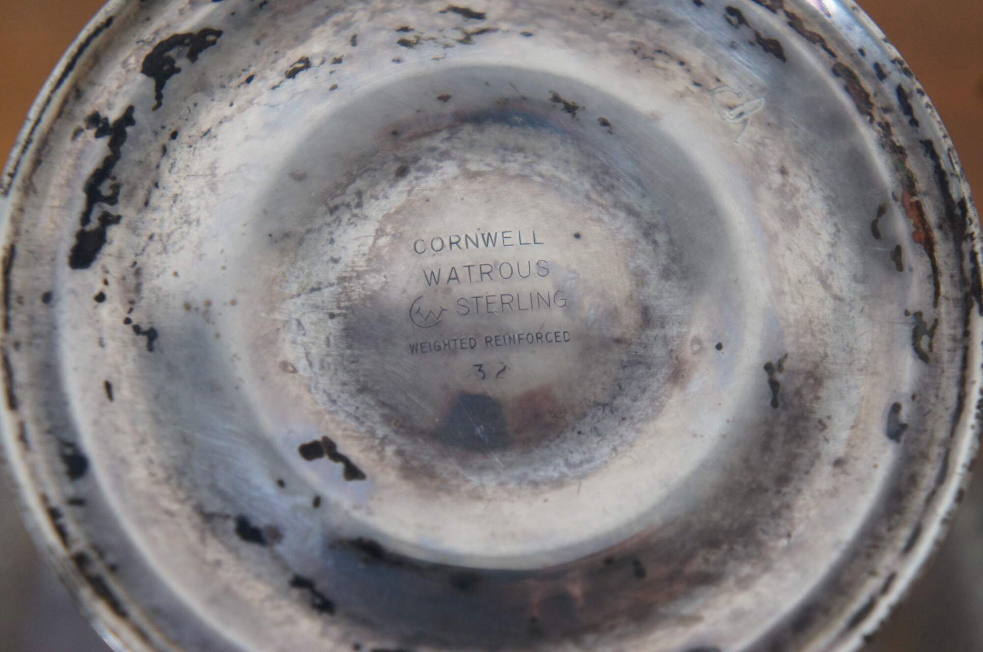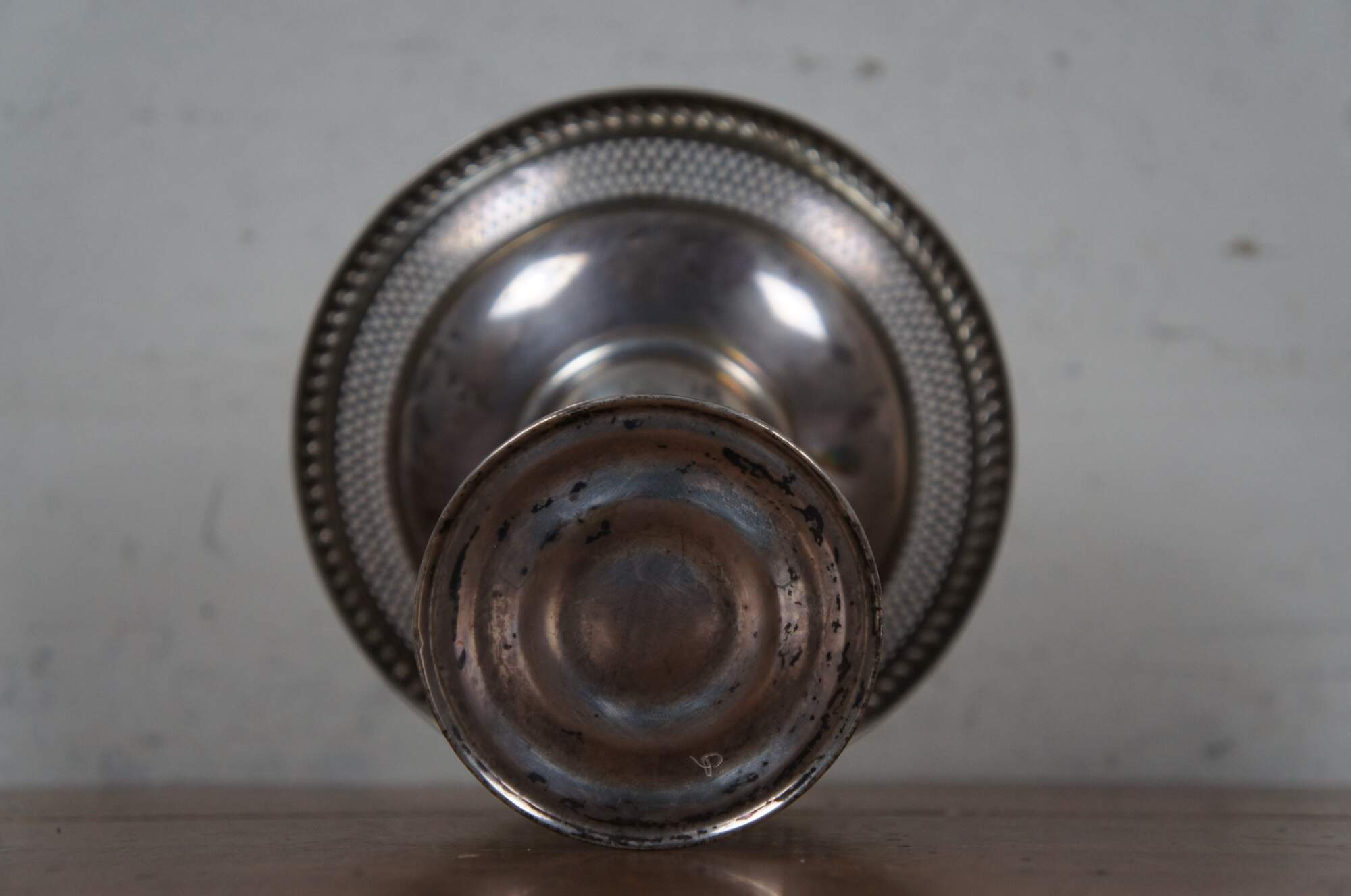20th century weighted, reinforced, sterling silver number 32 Cornwell compote by Watrous Mfg Co. Pedestal style nut / candy dish with rope twist border and pierced reticulated lattice detail.