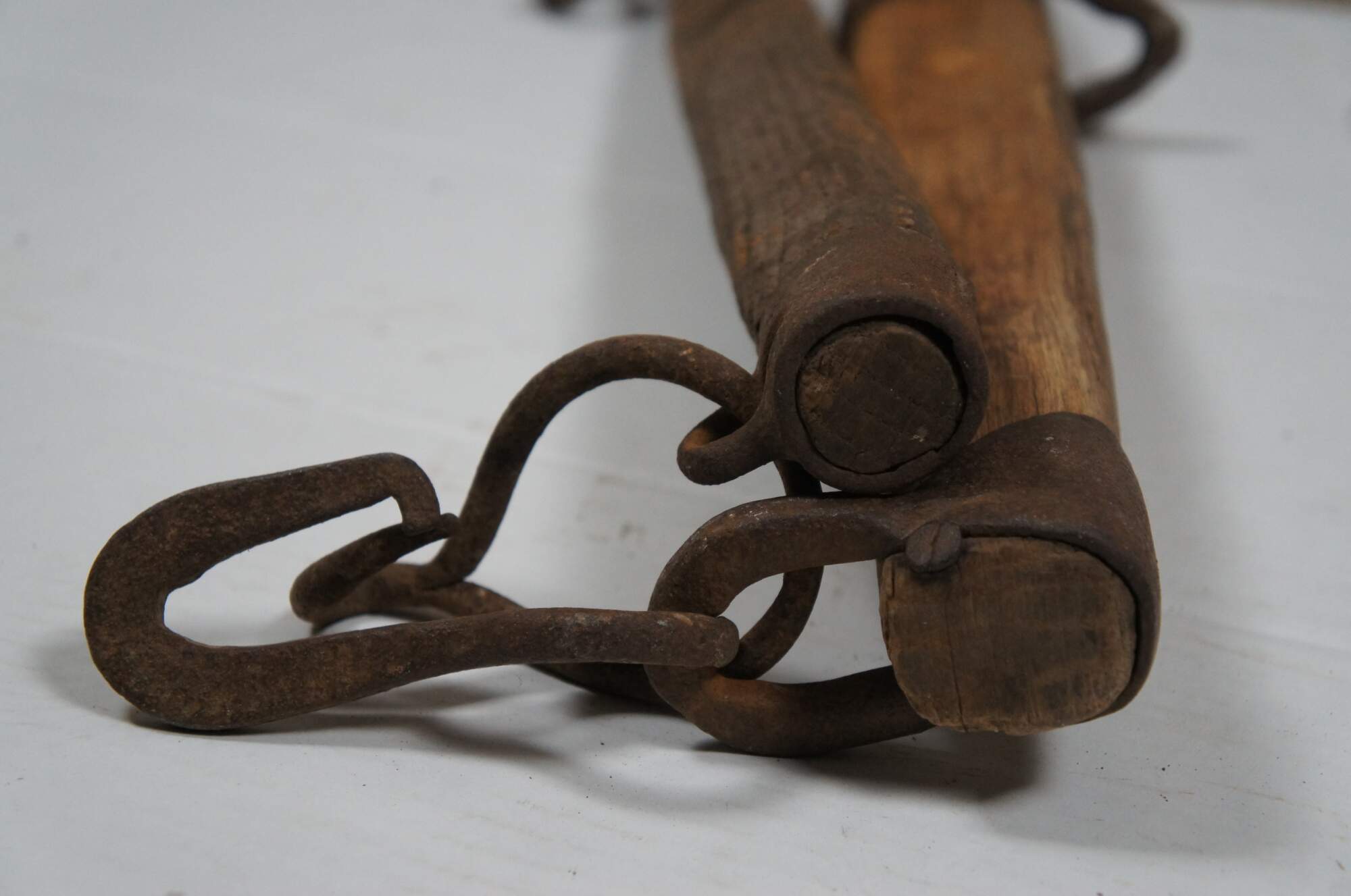 Good Overall - Smaller one more worn; wear/staining to wood; rust/pitting to hooks