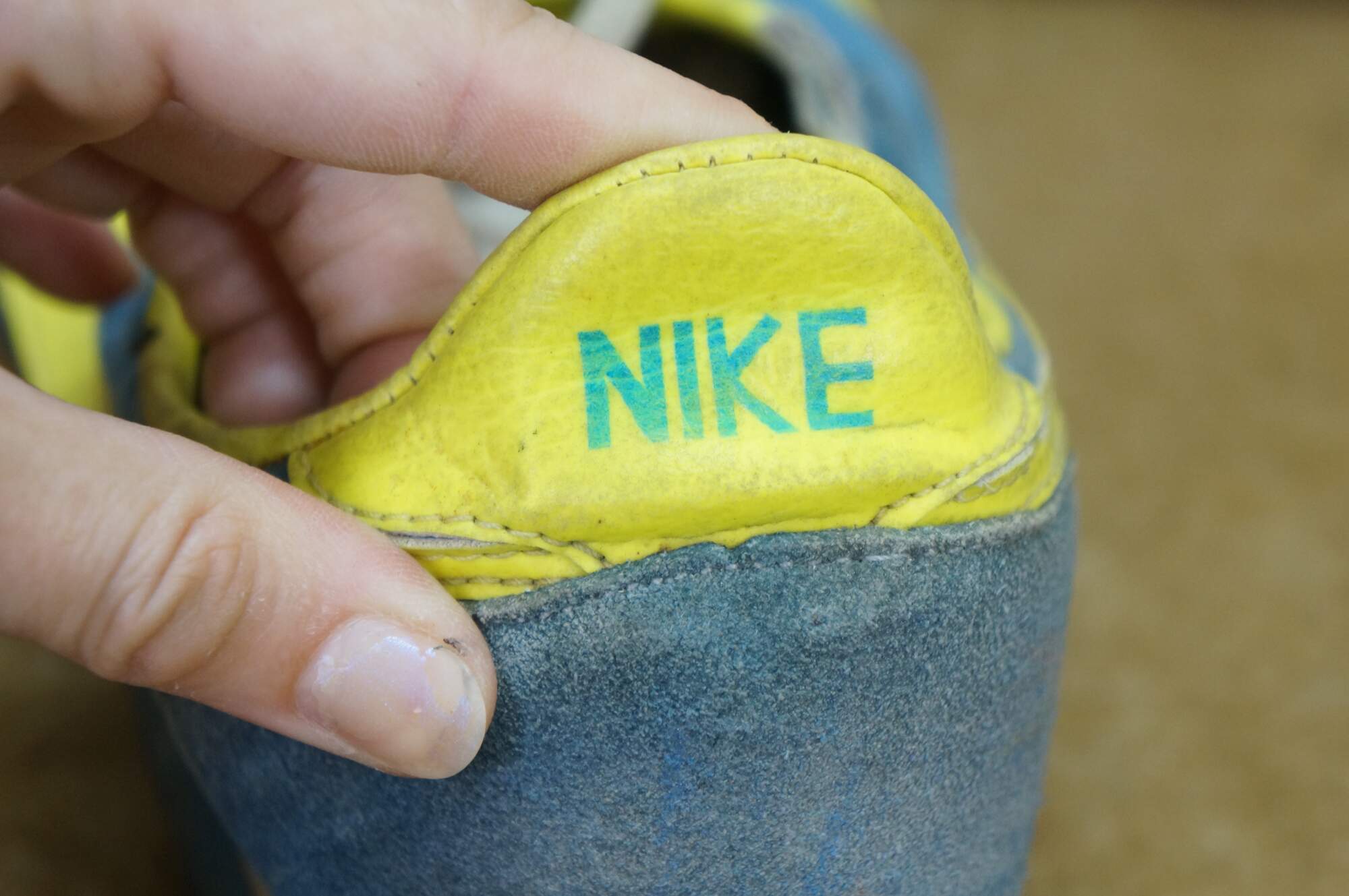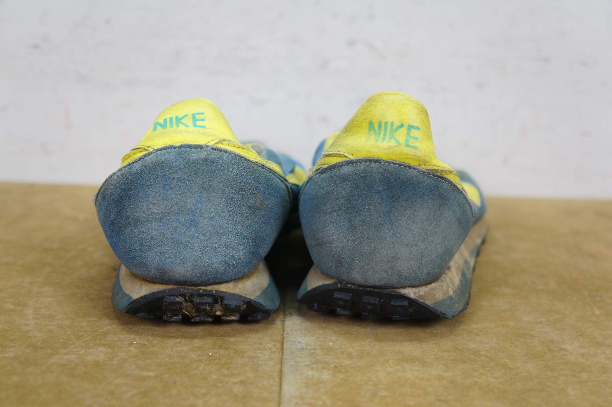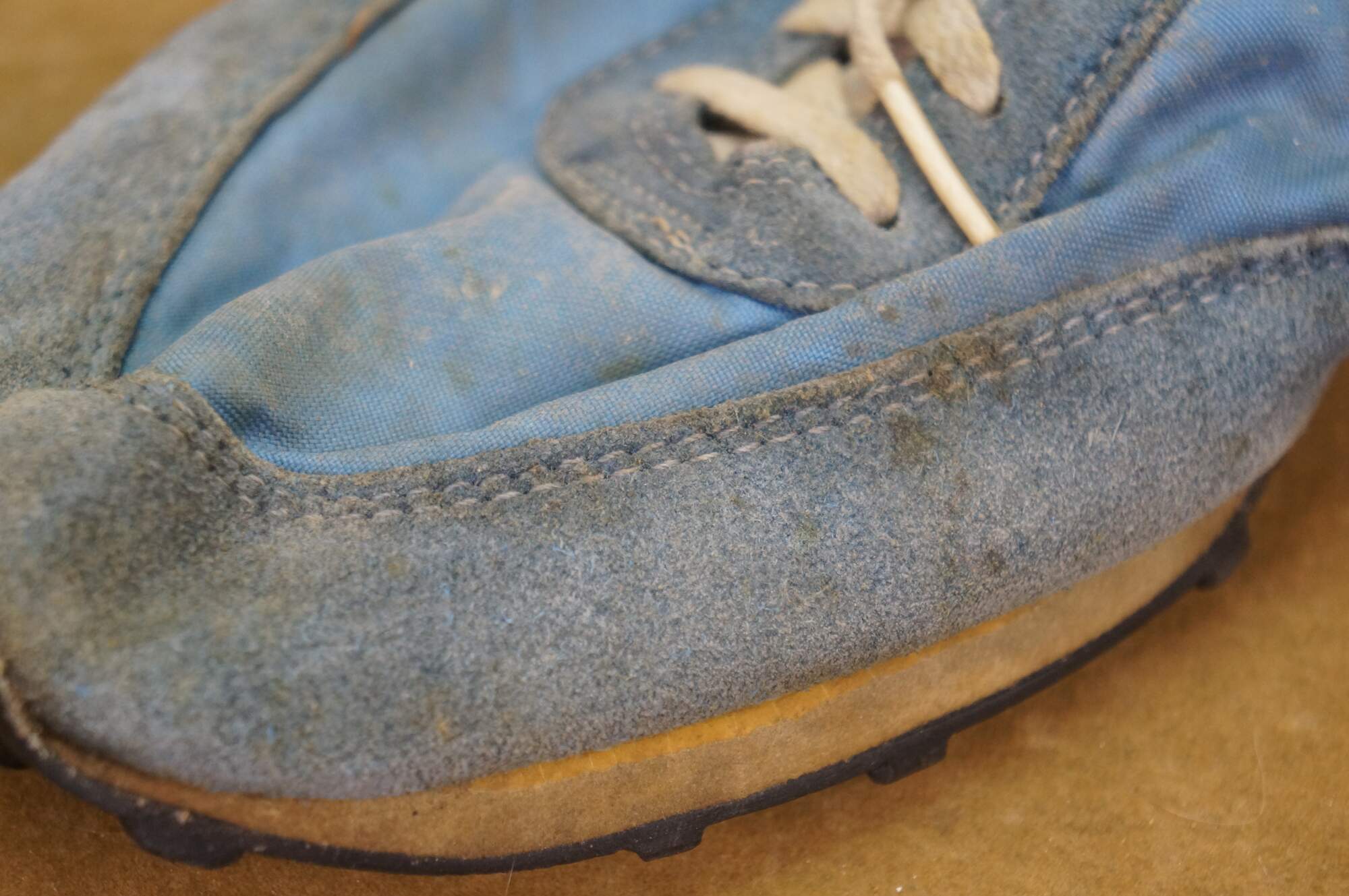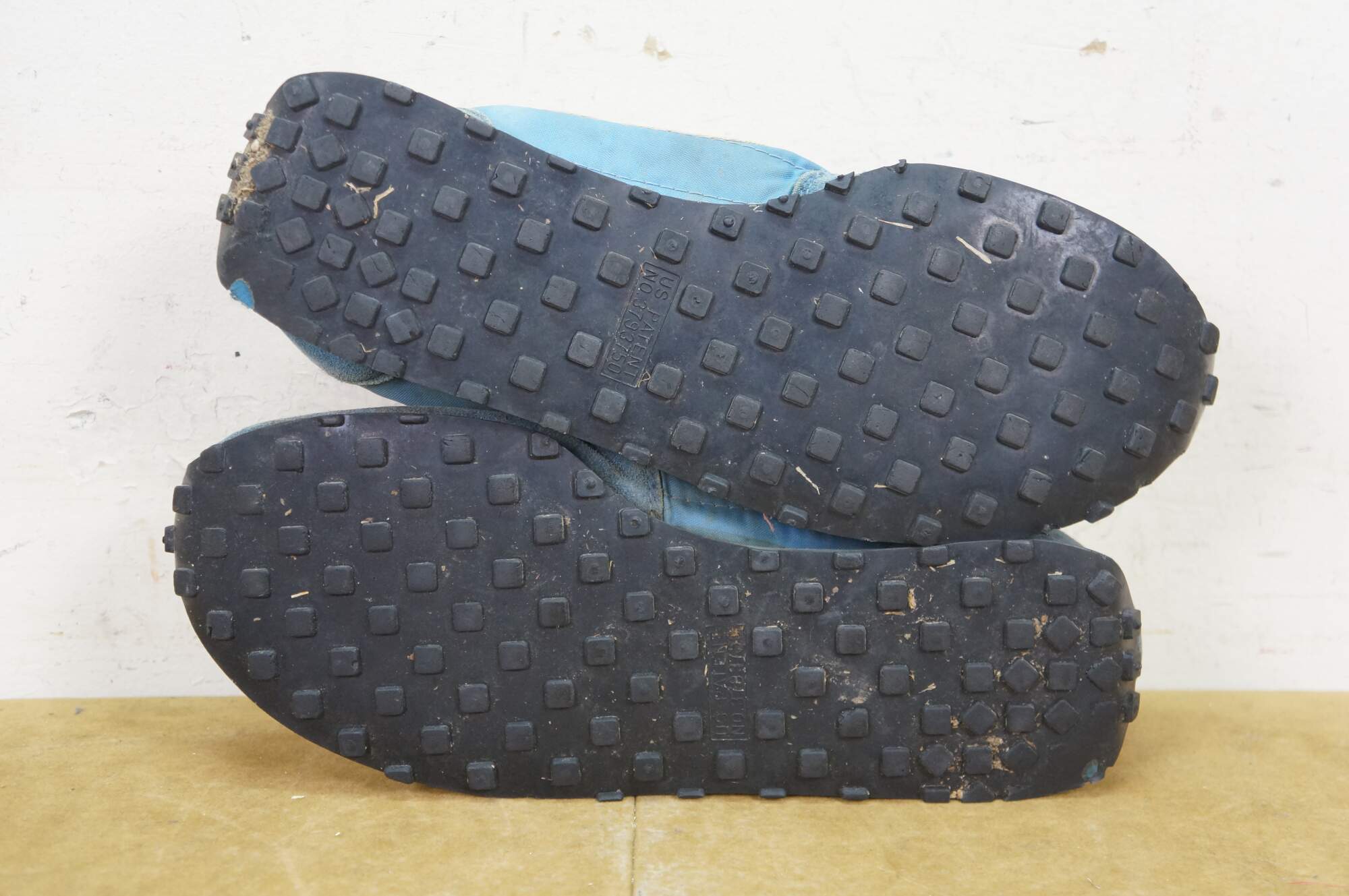 Vintage 1970s Nike Waffle Racing Flat, also known as the Nike Moon Shoe. Originally Designed by Nike co-founder and Oregon track coach Bill Bowerman, who used his wife's waffle iron to create a prototype sole that offered superior traction on the new, slick urethane tracks. The shoe was used at the 1972 Olympic trials in Eugene, Oregon. One of the most important artifacts in sneaker history.