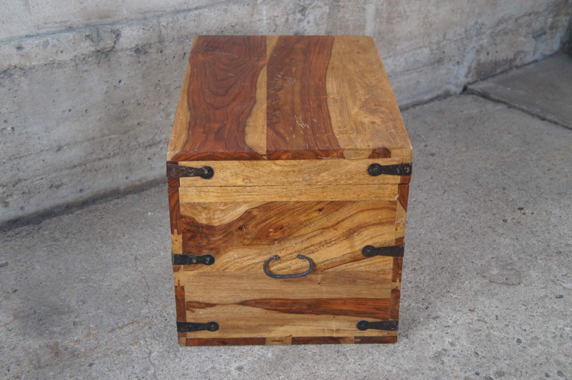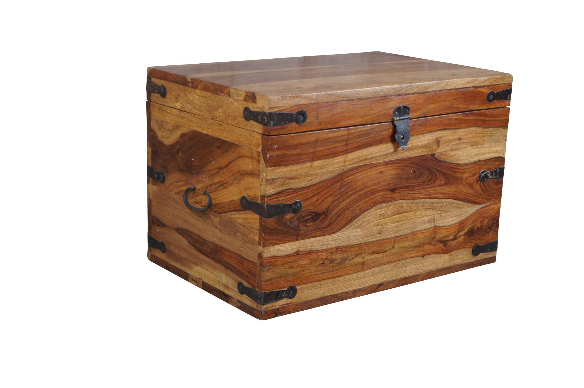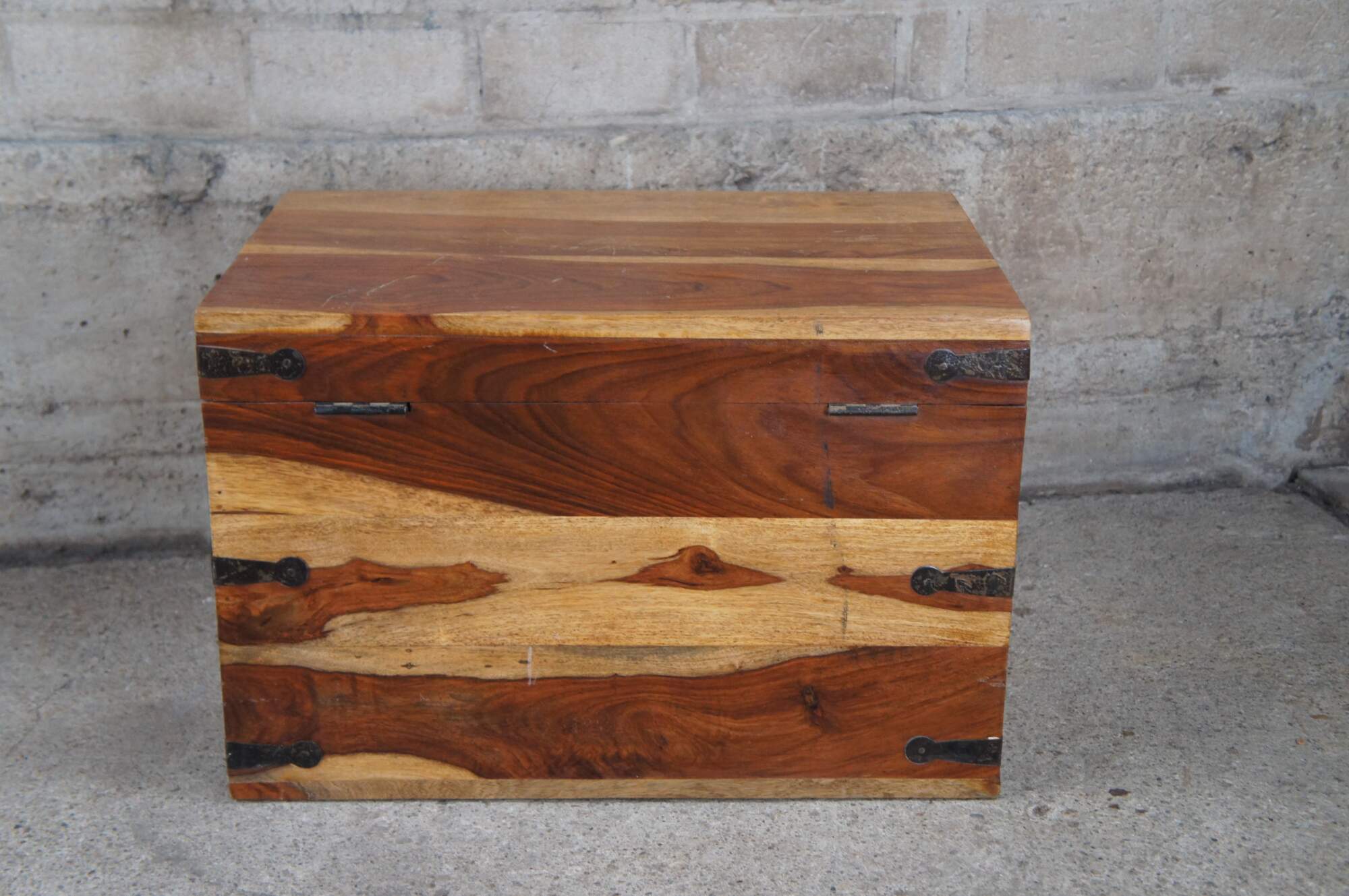 Late 20th century British Colonial style Sheesham wood blanket storage chest or coffee table. Features a beautiful two tone finish with iron hardware.