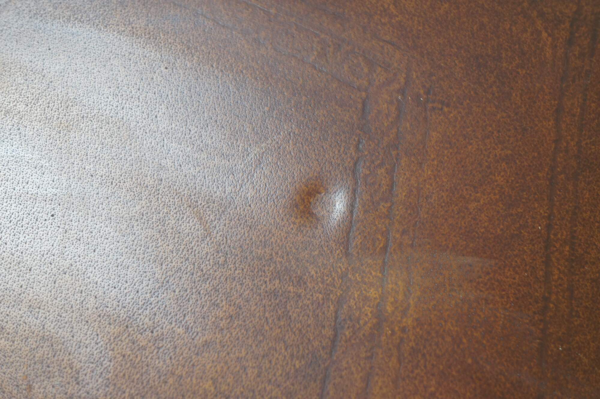Good Vintage Condition; Each ottoman has a pock mark / indent, some light wear to the leather tops from use and age. A few marks to leather and frames.