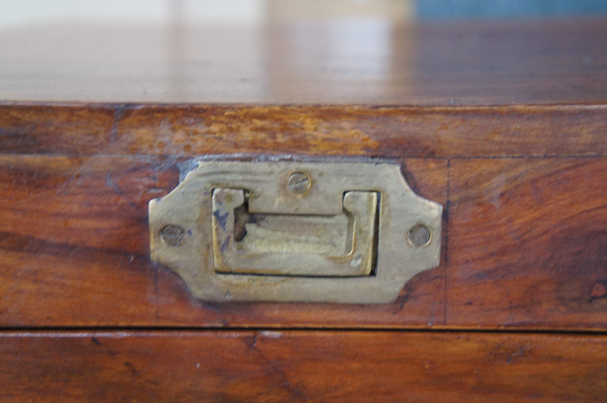 Late 20th century campaign style camphor chest. Features a rectangular frame with brass banded hand hardware and traditional campaign / anglo indian recessed pulls along the front.