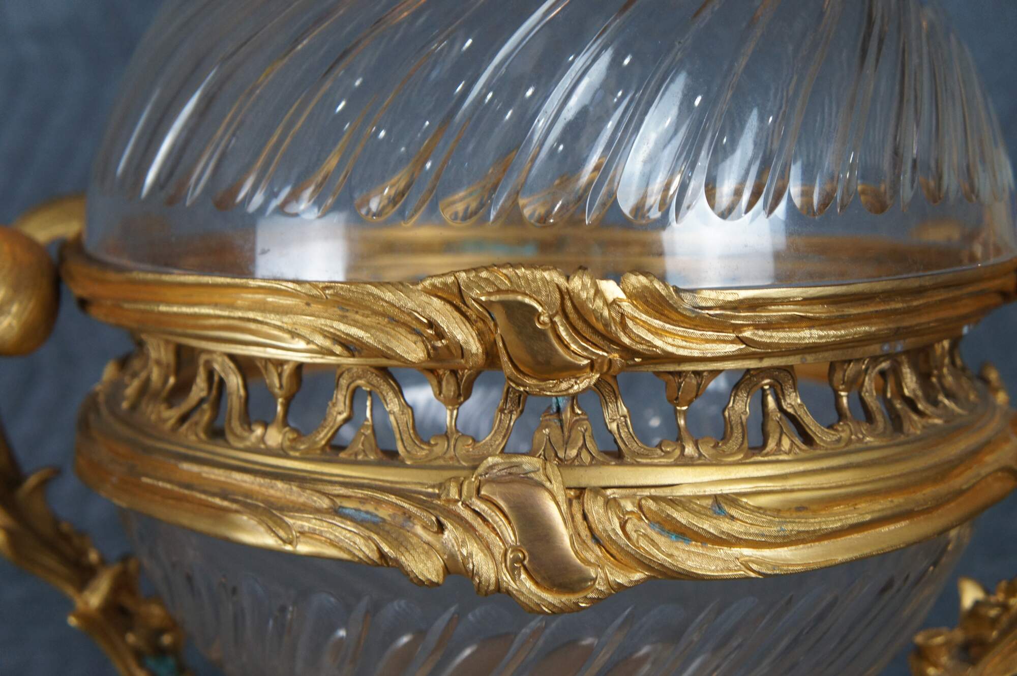 Large and impressive French Louis XV style ormolu-mounted crystal incense burner / centerpiece bowl and cover. Features beautifully chiseled brass mounts in 24 carats with tulip and acanthus foliate details. The bowl is pierced at the center and fixed to an ornate heavy base. Crystal is embossed with a gadrooned pattern. Circa 1990s.