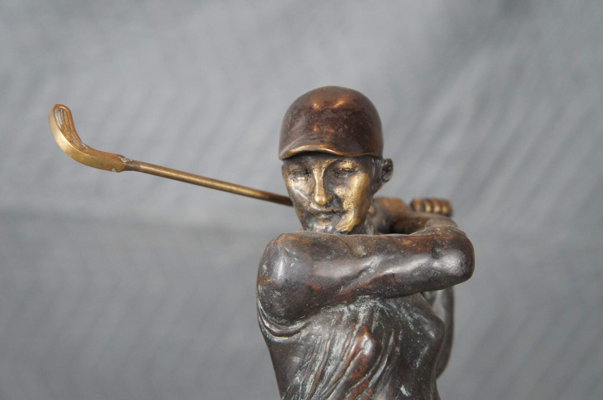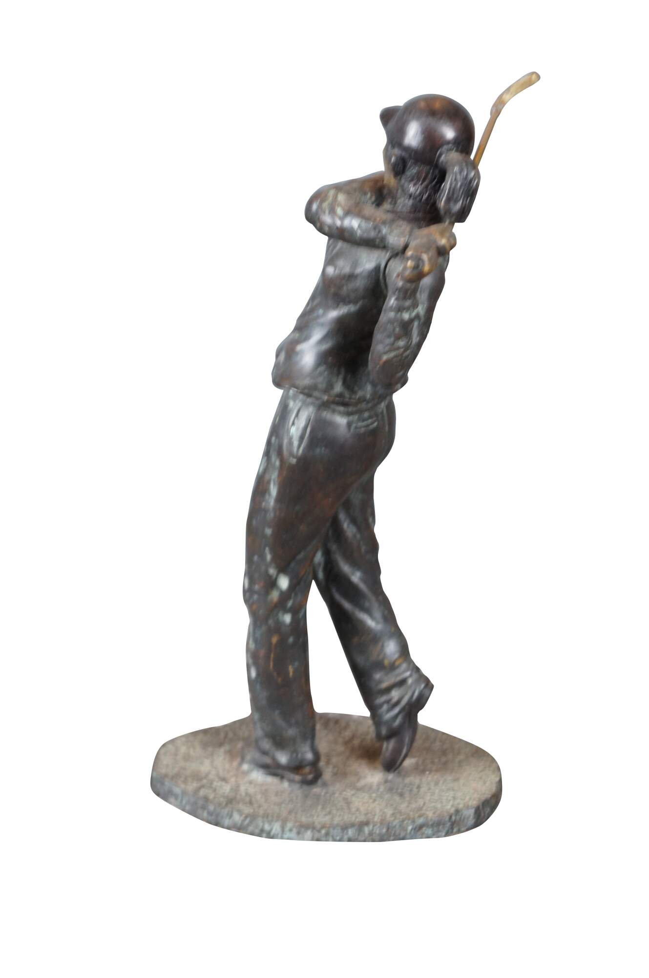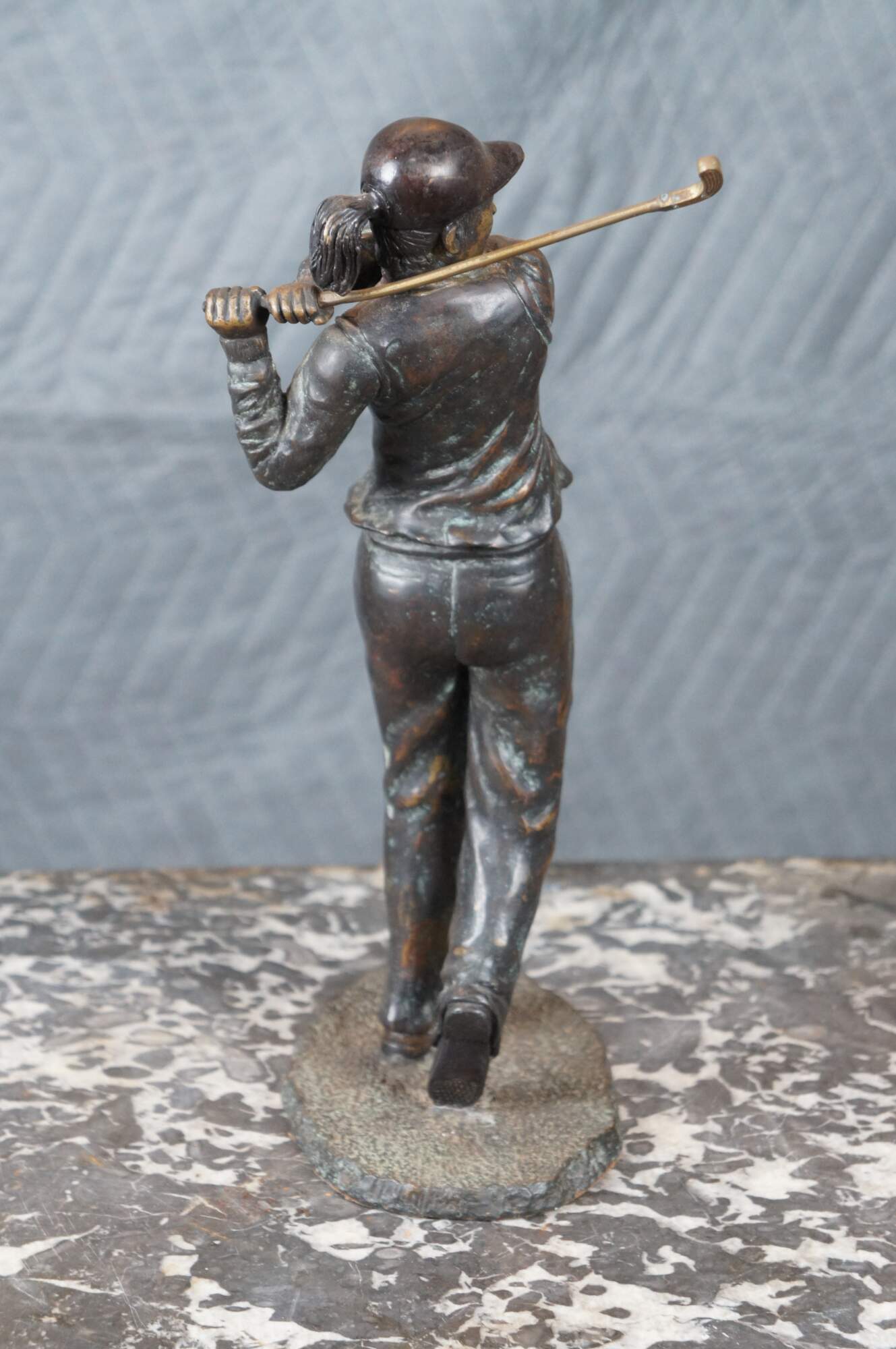 Maitland Smith bronze golfer. Features a right handed female in follow through after a shot. Marked along underside.