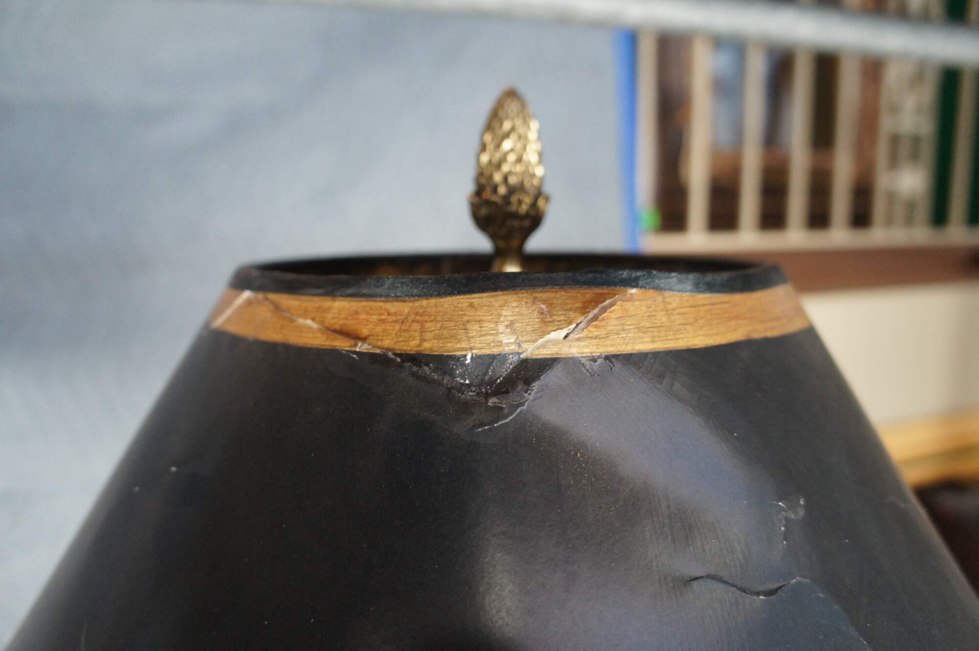 Good Overall; Base is in good condition; damage to the shade. Some crinkles as well as an area towards the top that is slightly crushed.