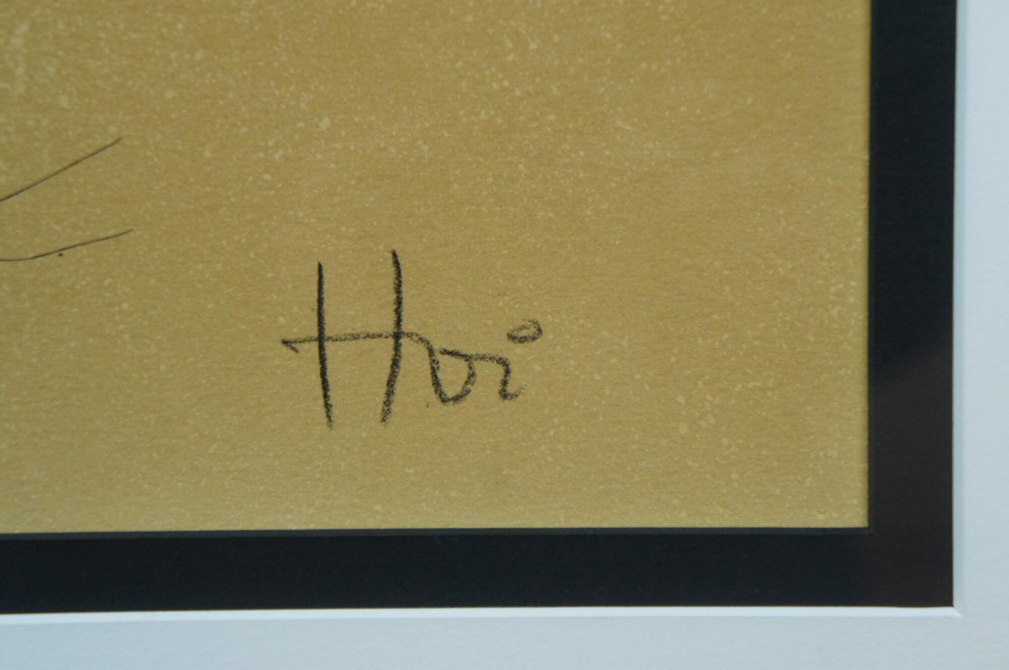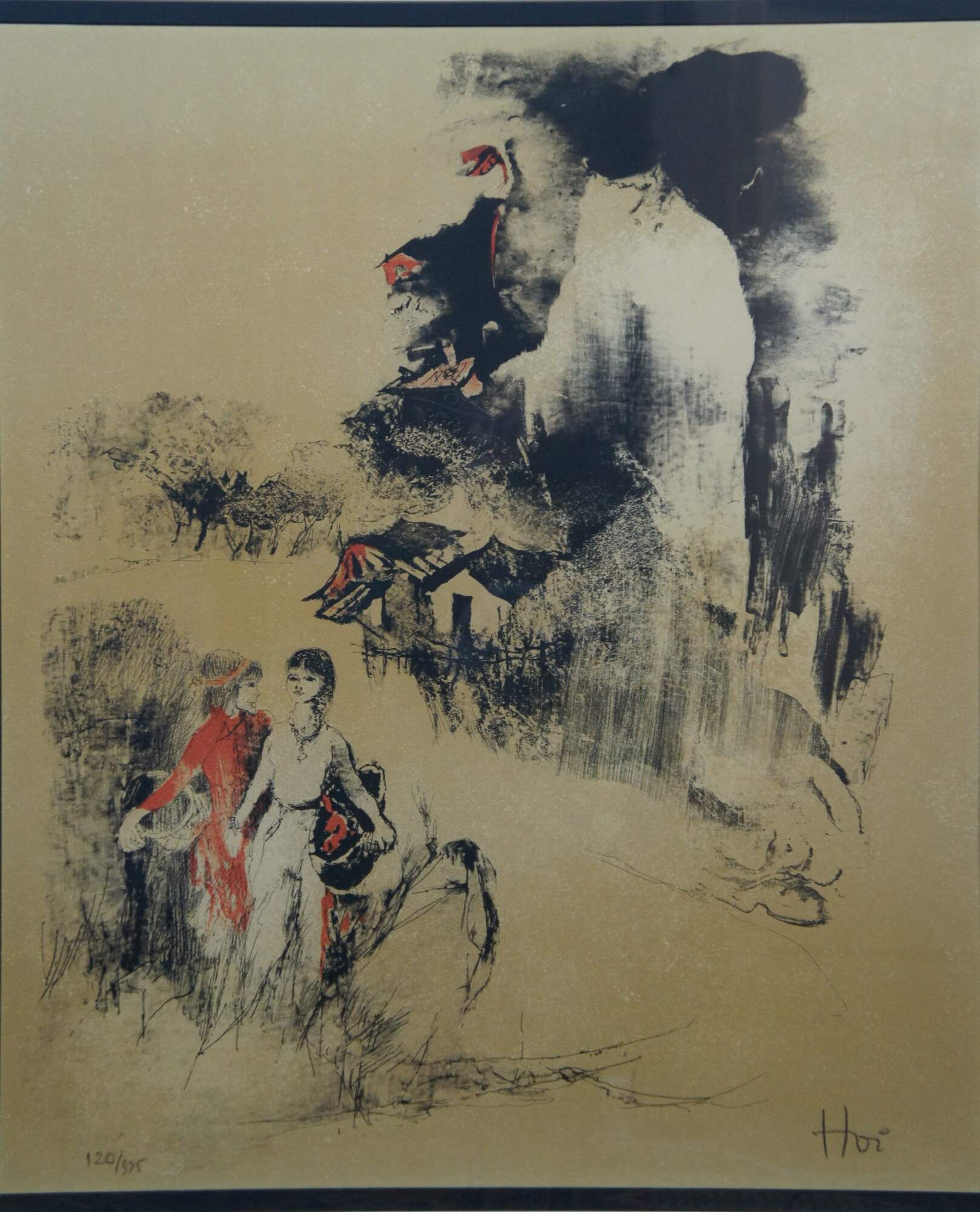 "Le Ba Dang (aka Hoi Lebadang - b.1921/1922-d.2015) was born in Quang Tri, Vietnam in 1922. He moved to France in 1939 to pursue an art career at Ecole de Beaus Arts de Toulouse. While studying there he was awarded prizes for painting, drawing, and sculpture and won his first commission. By 1950 the Paris art community had recognized Lebadang's work, appreciating the blend of European and Far Eastern culture and philosophies reflected in it. The director of the Far Eastern Department at UNESCO commissioned him to illustrate a book of poetry, published by Editions Euros. Lebadang was first represented in the United States, in 1966, with an exhibition of his paintings at the Cincinnati Art Museum. In describing his art today critics remark that it incorporates everyday subjects into dream-like expressions of thought. Lebadang, an accomplished printmaker, favors the techniques of etching, lithograph, and serigraph. He also has done lithographs using the name Hoi. Lebadang's work is exhibited in Dusseldorf, Paris, Nantes, Cologne, Cannes and Aix en Provence galleries. His work is owned in permanent private and public collections including: Rockefeller Collection, New York; Loo Collection in Tokyo; Verkerke Collection, Holland; Phoenix Art Museum, USA; Cincinnati Museum, USA; Columbia Art Institute, USA; Lund University Museum, Sweden; Foundation Museum, Kenya; and the Museum of Arts and Letters, France. " (Source: askART)