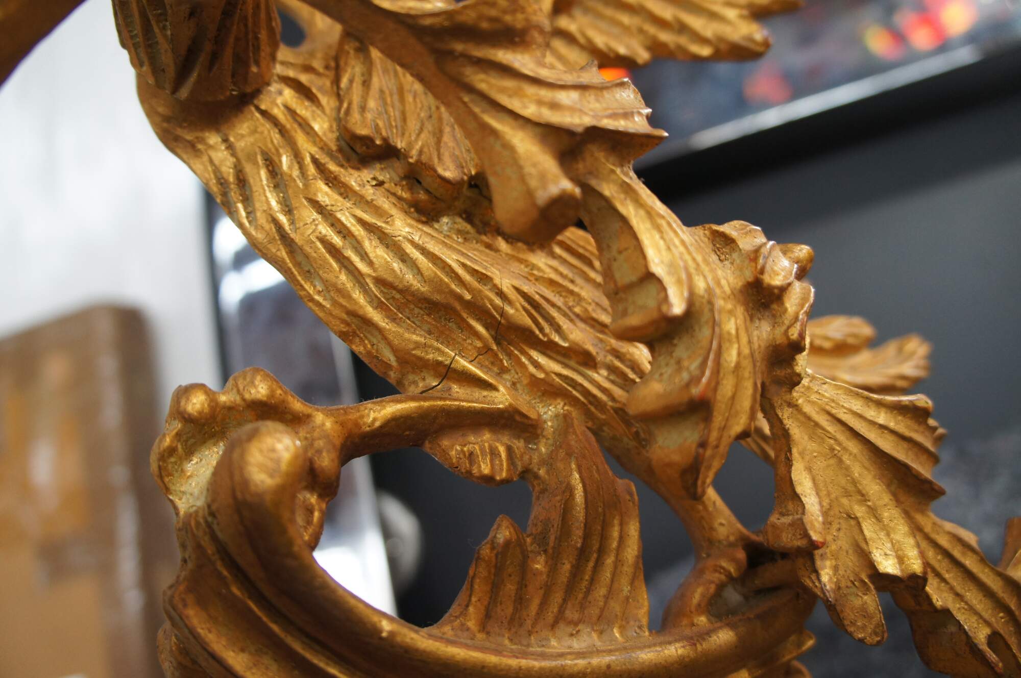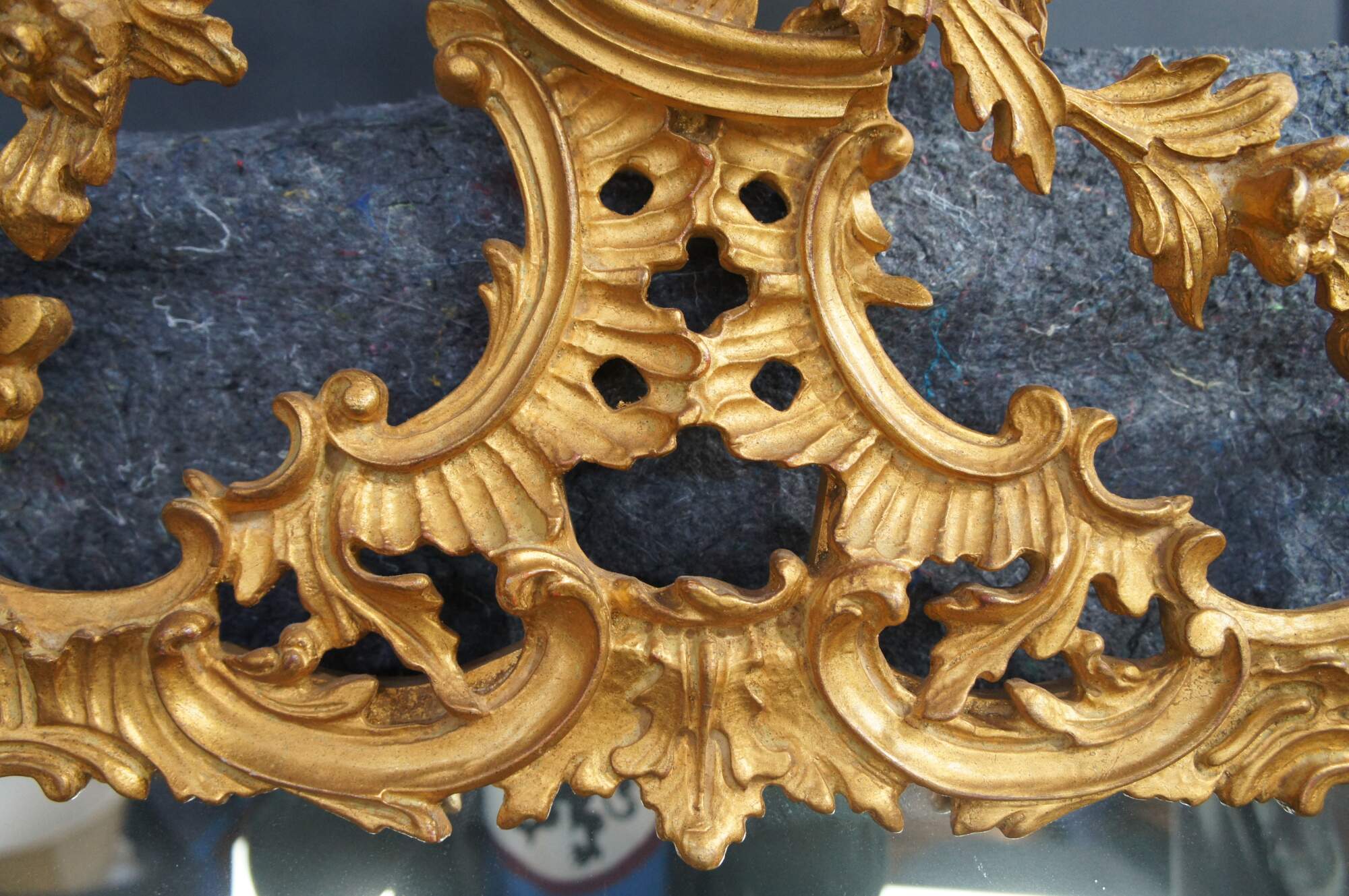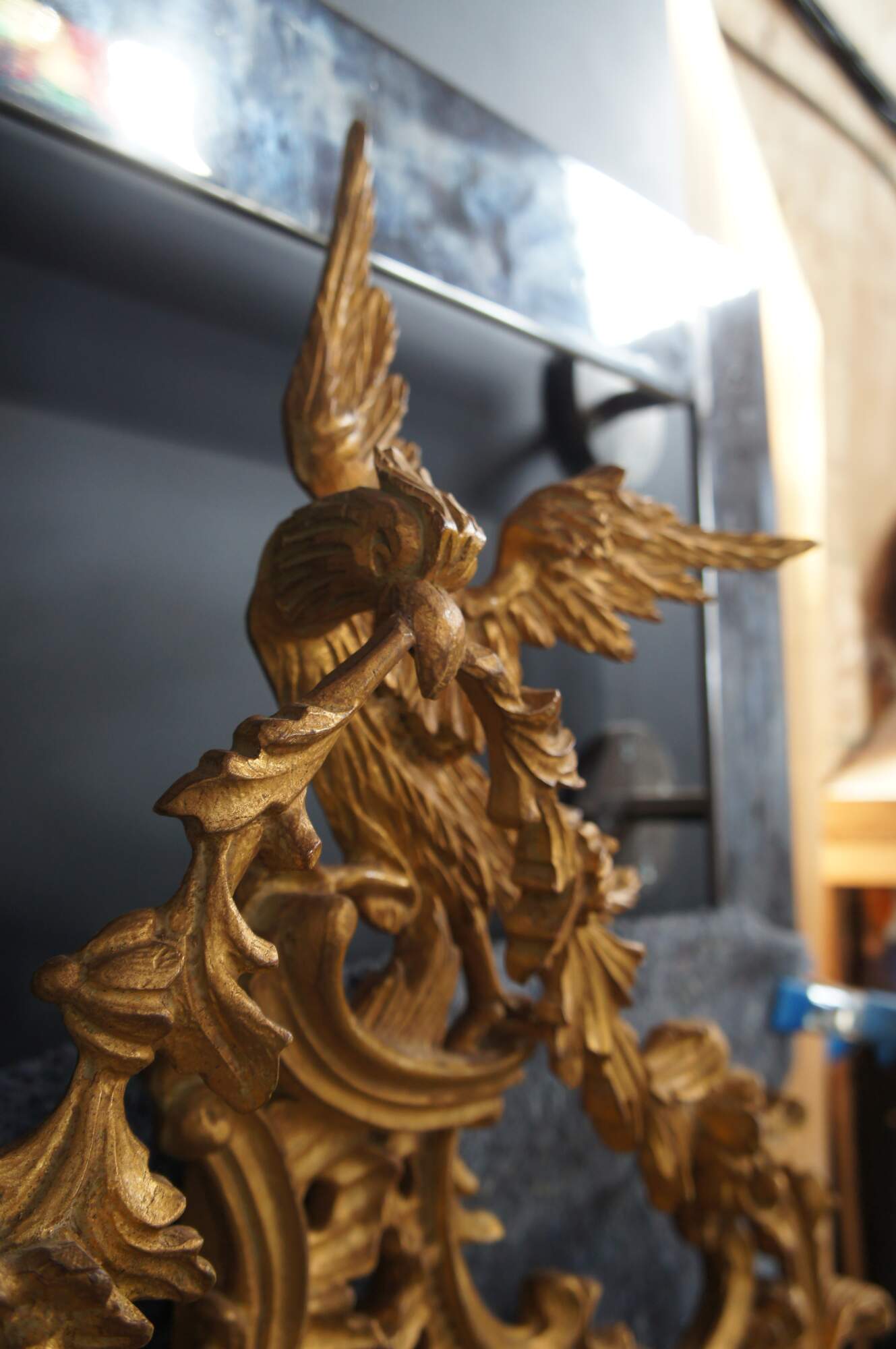 A Magnificent Chippendale Mirror in 18th century manner. the Grand Chippendale mirror is impressive in size at 80". Finished in patinated gold with a dramatic frame of pierced Rococo C scrolls, scalloping and foliate. The Phoenix, or Ho Ho Bird by the English reference, is cresting the top of the frame. A symbol taken from the Dynasties of ancient Egypt. The Bird is a mysterious creature with a long beak, curved neck, flowing tail and claws. A Phoenix was typical on Chippendale furniture and mirror frame design of the period symbolizing the prominence of 18th Century England. The Grand Chippendale Mirror dates to the second half of the 20th century.