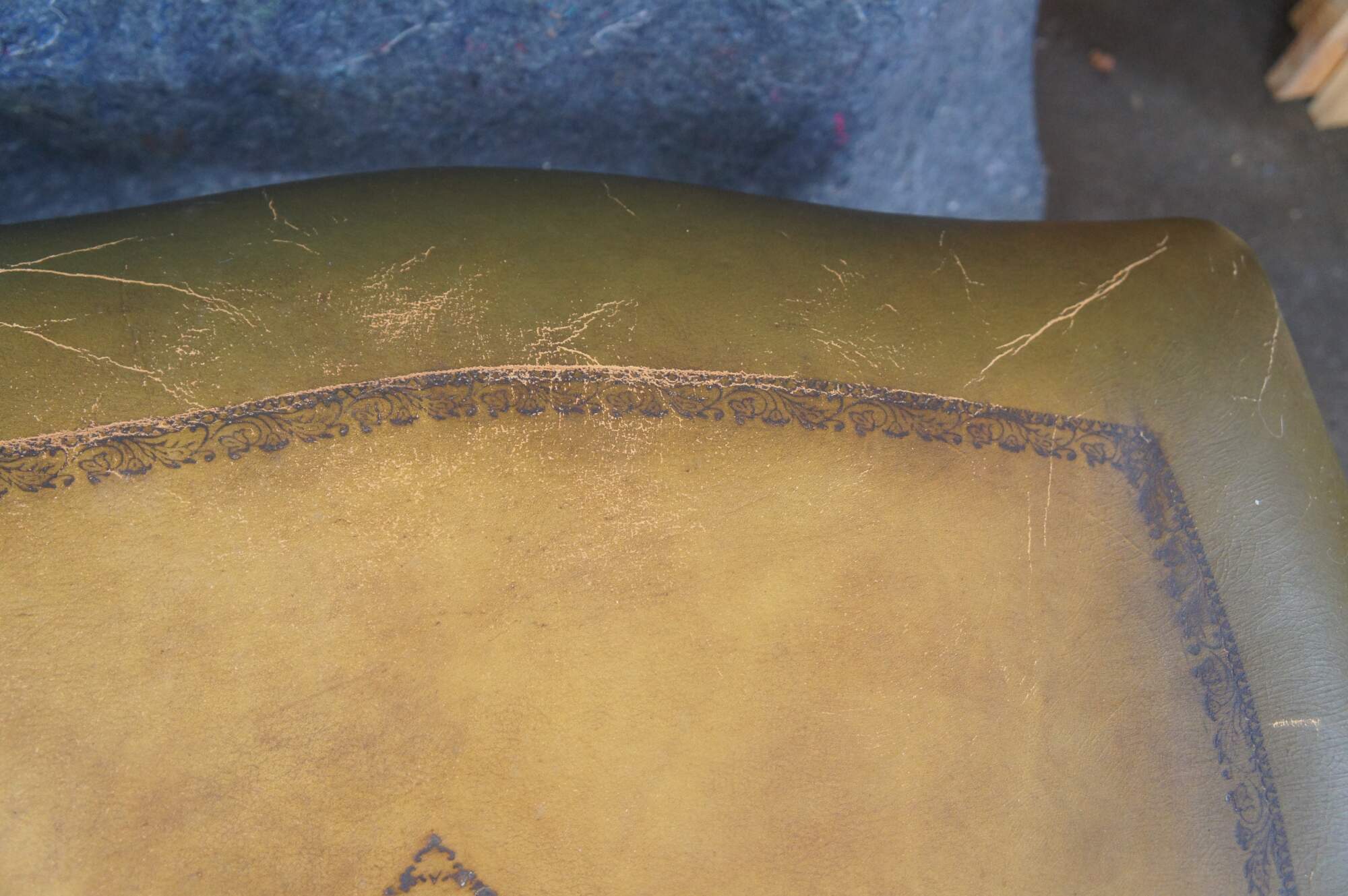 Good Condition; light wear commensurate with age. Distressing to the leathe from use
