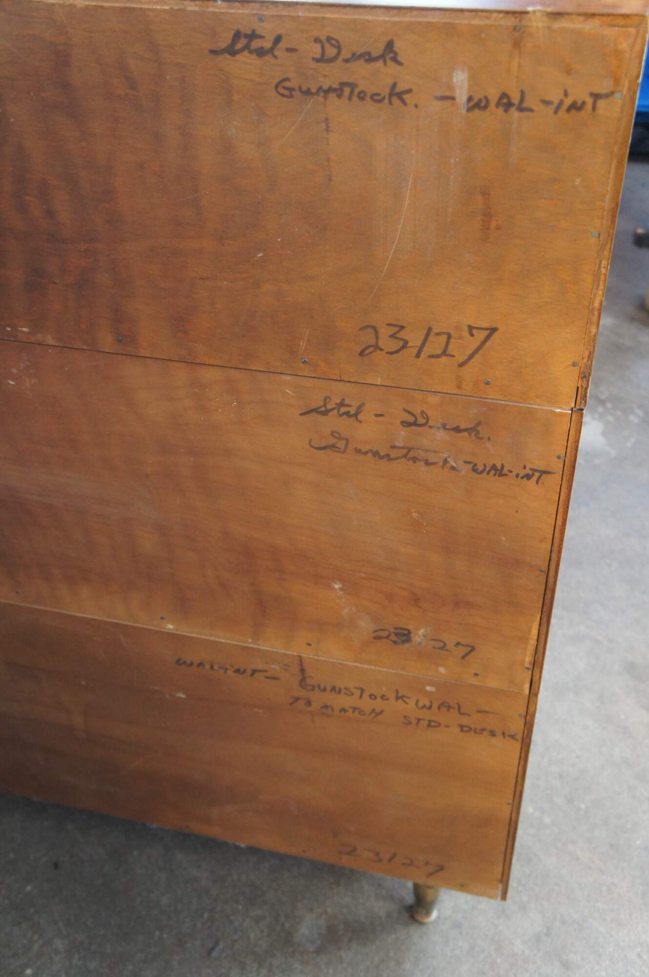 Good Vintage Condition; light marking and finish wear from age. Missing glass for lower part of cabinet. Middle shelf different tone than top and bottom.