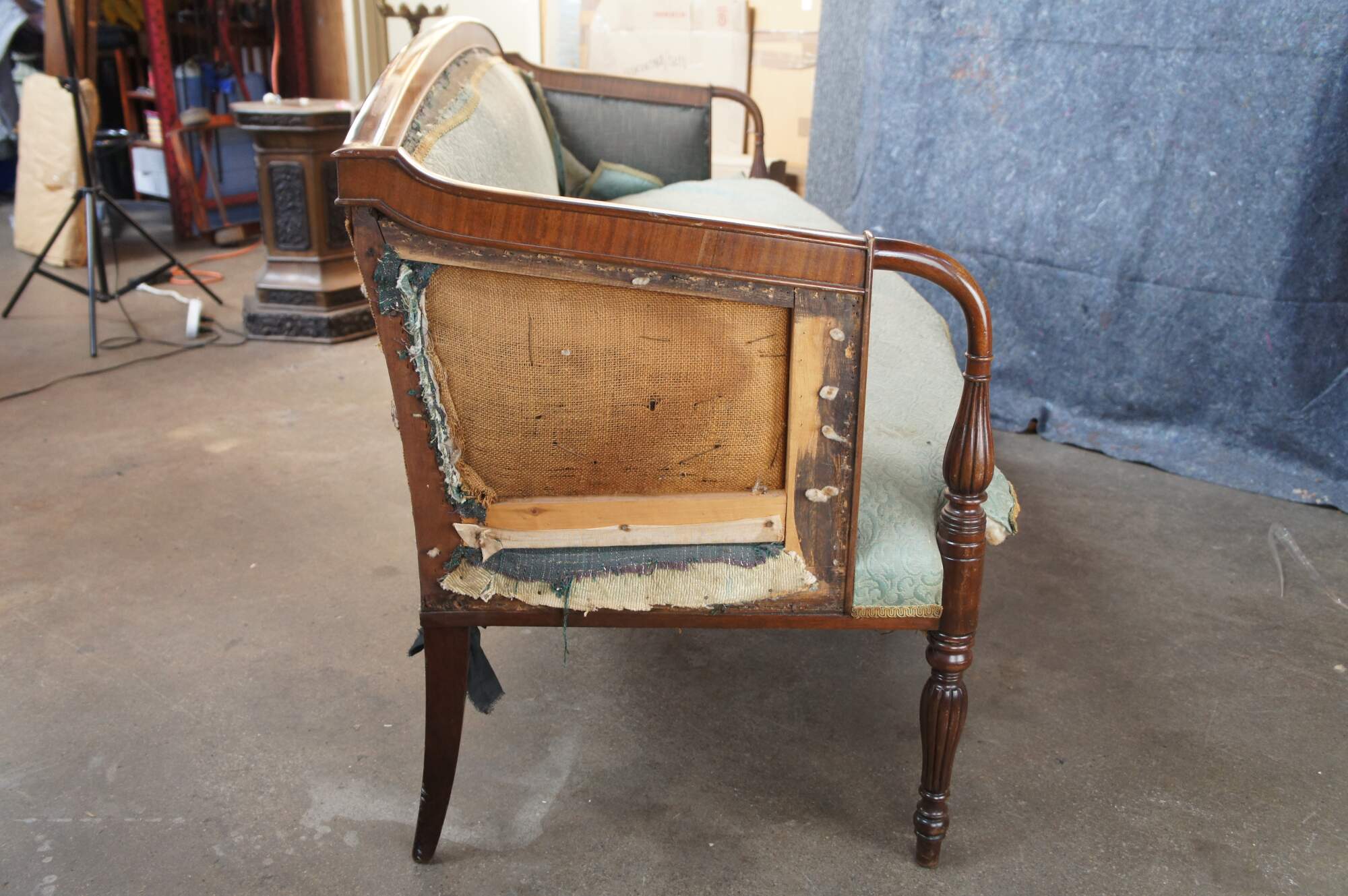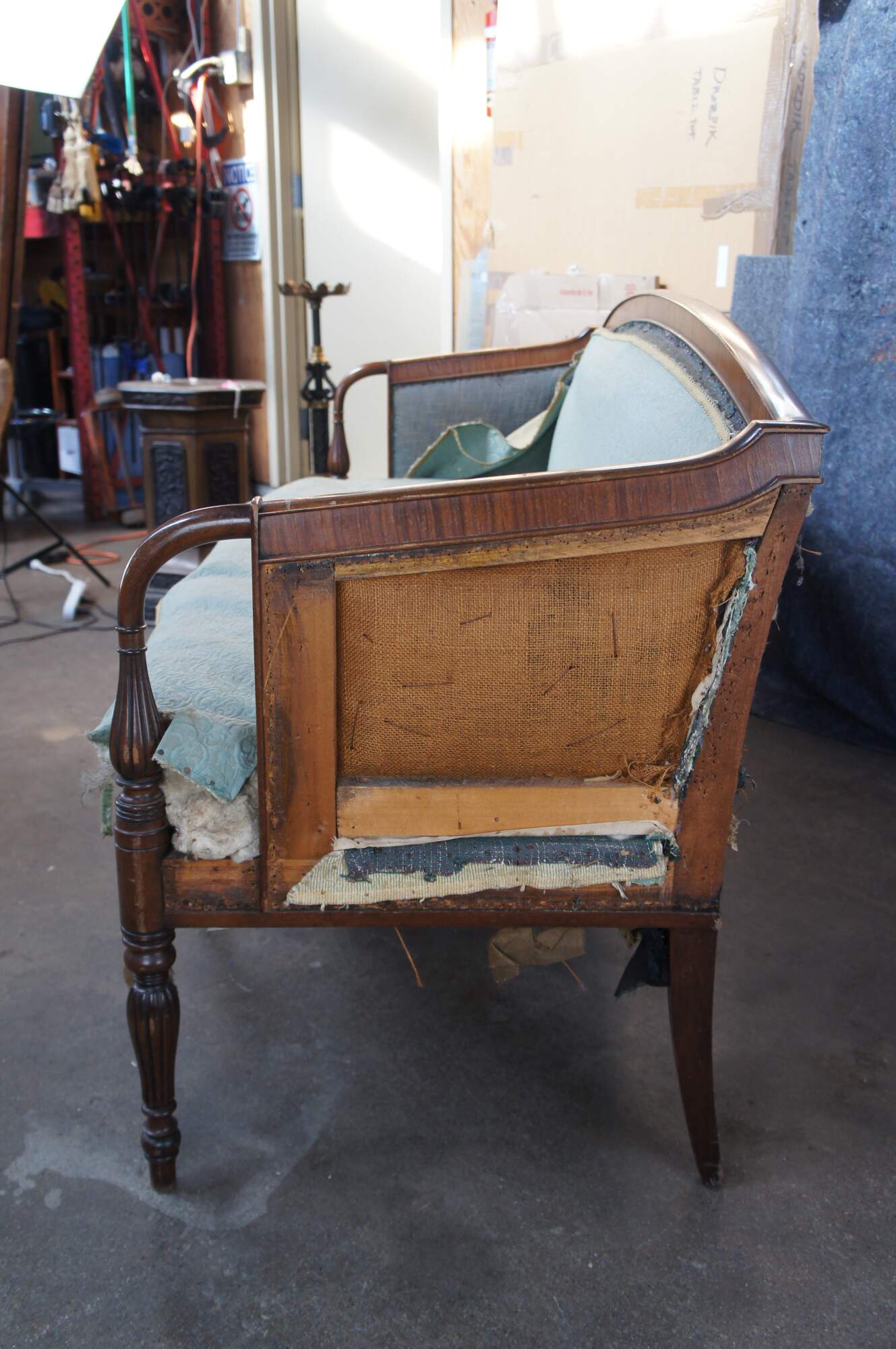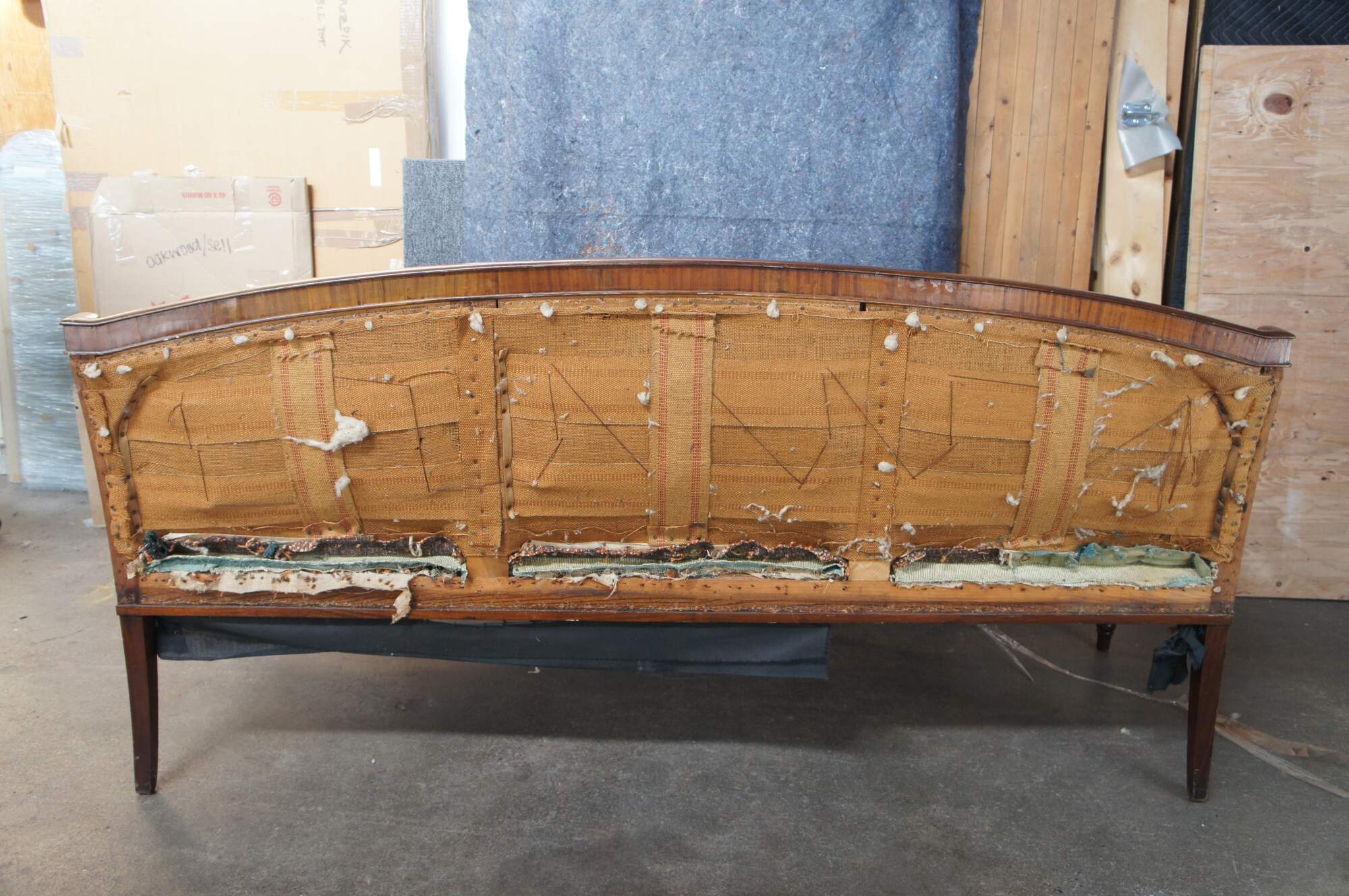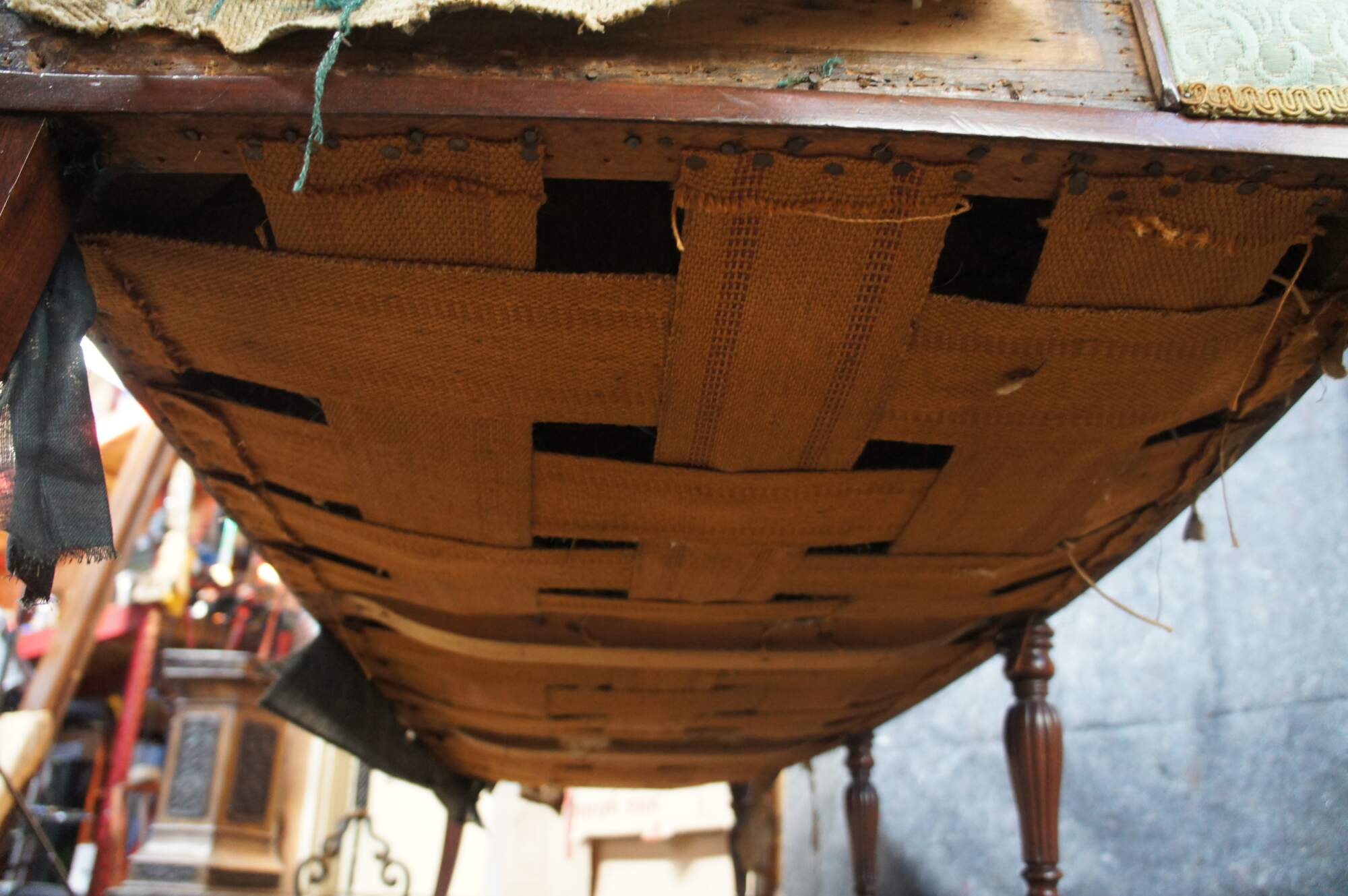 Good Overall; Frame shows some nick, marks and finish wear from age. Needs new upholstery. Old fabric is loose, missing in spots and stained.