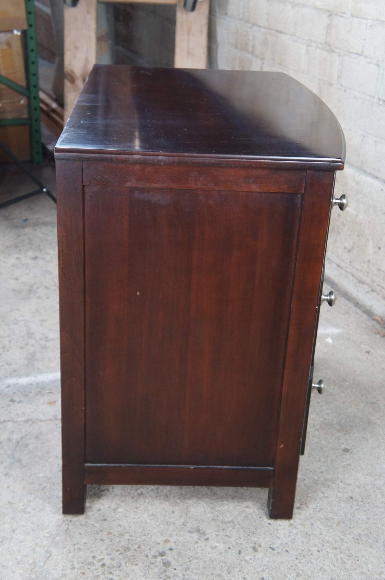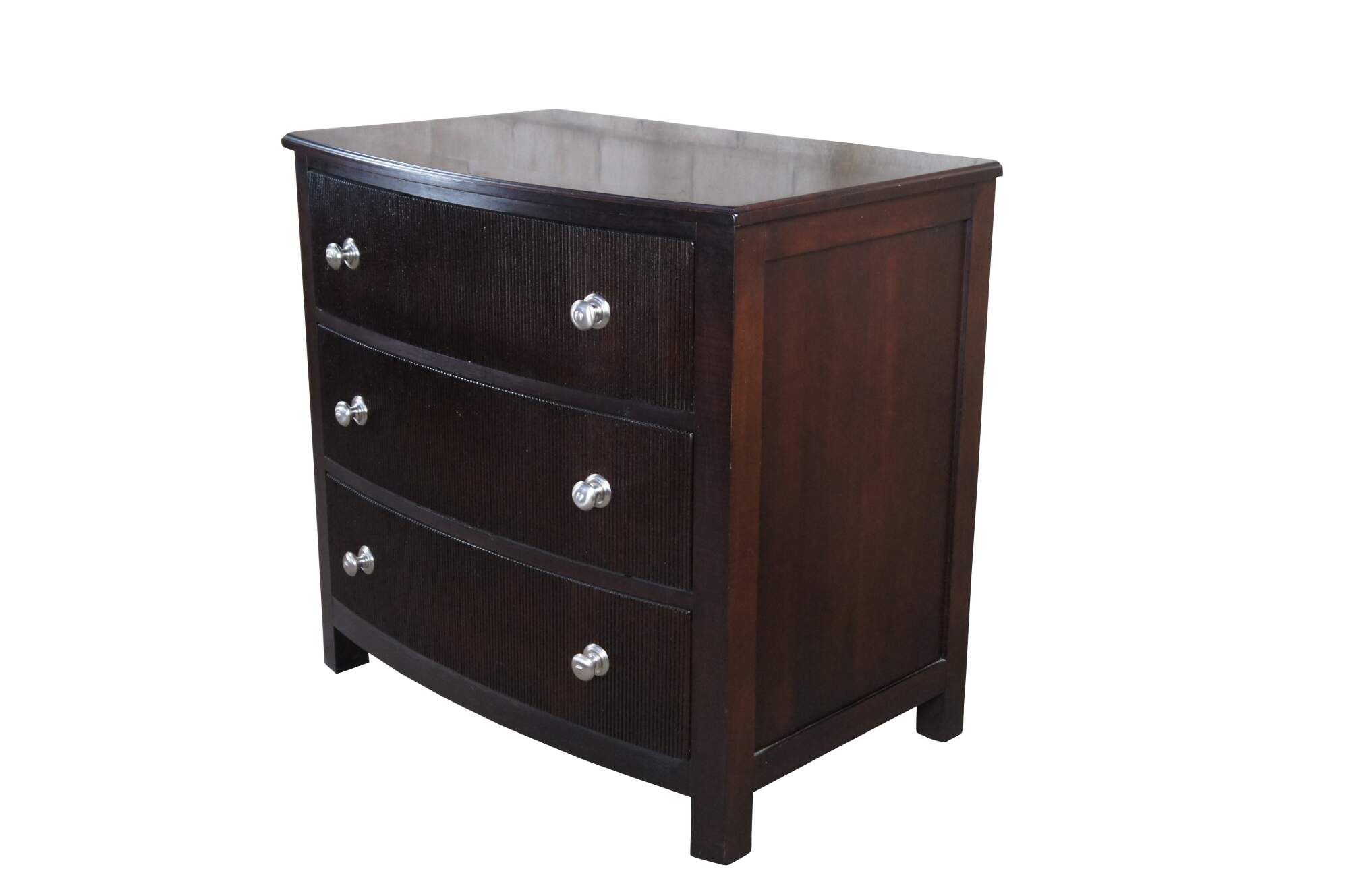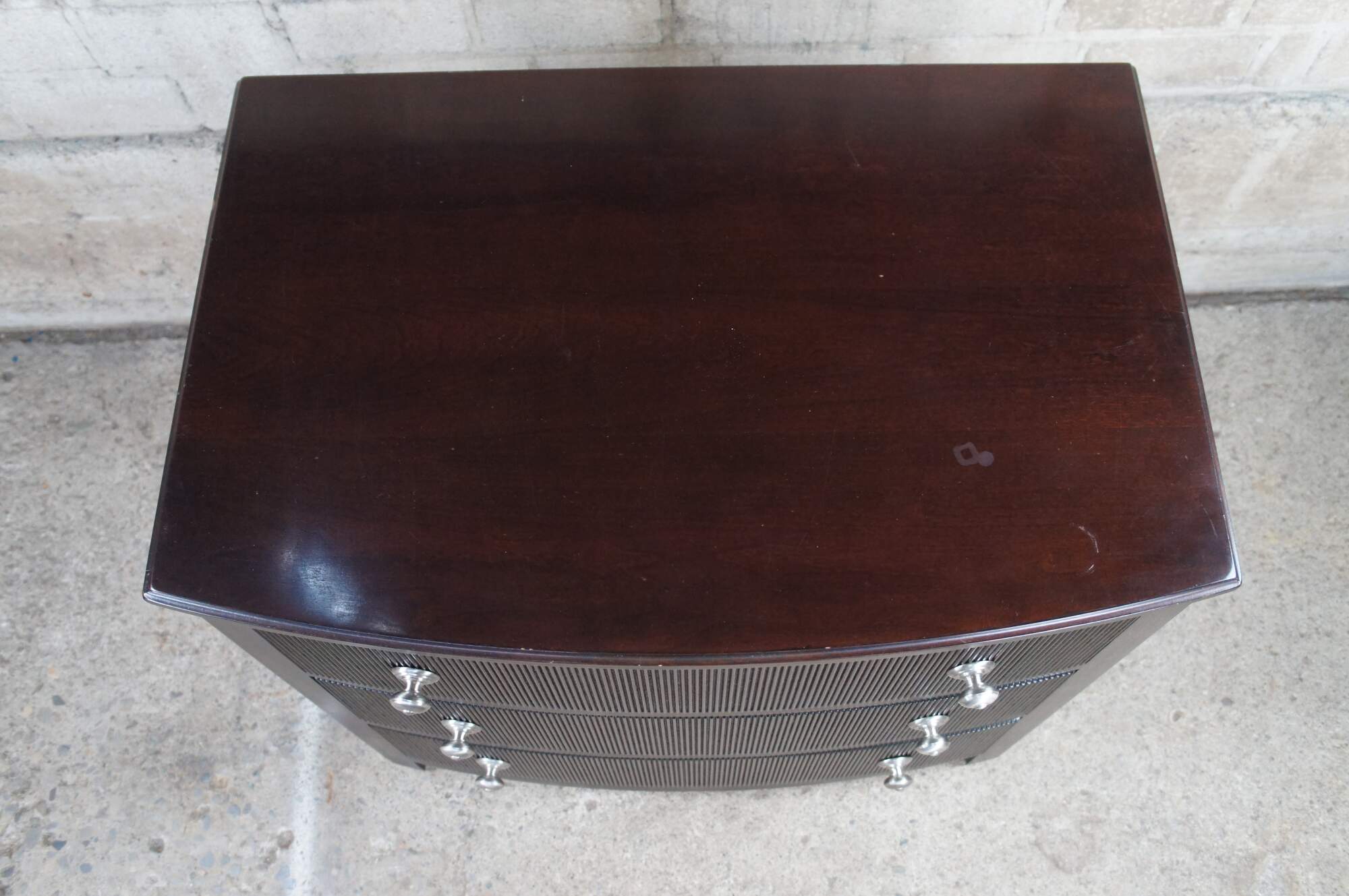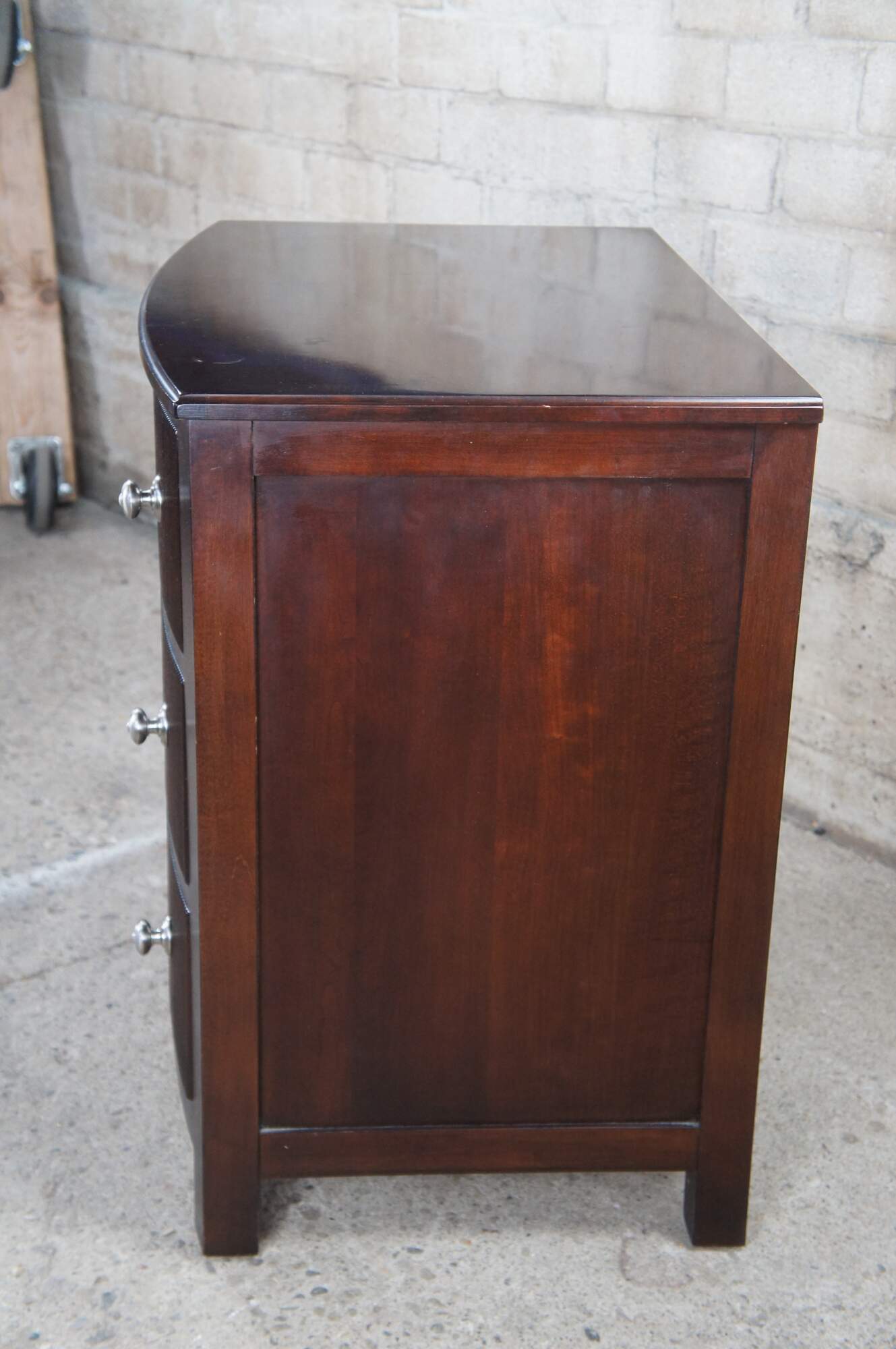 Nautica Home by Lexington Furniture commode or bedside table. Features a bow front with three dovetailed drawers. Drawer fronts are reeded with silver rounded pulls. Finished in cherry