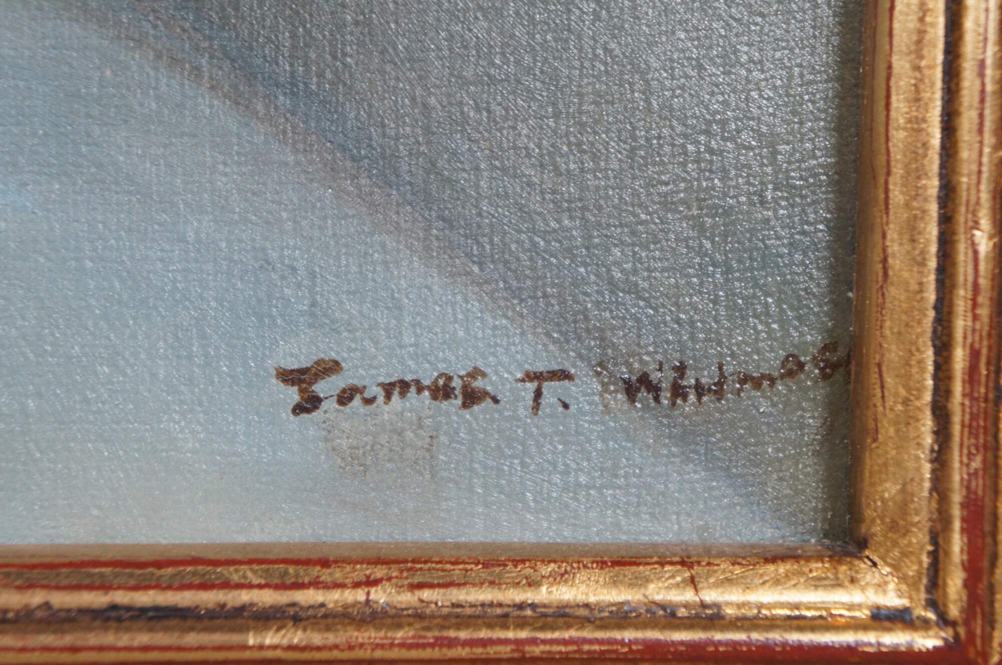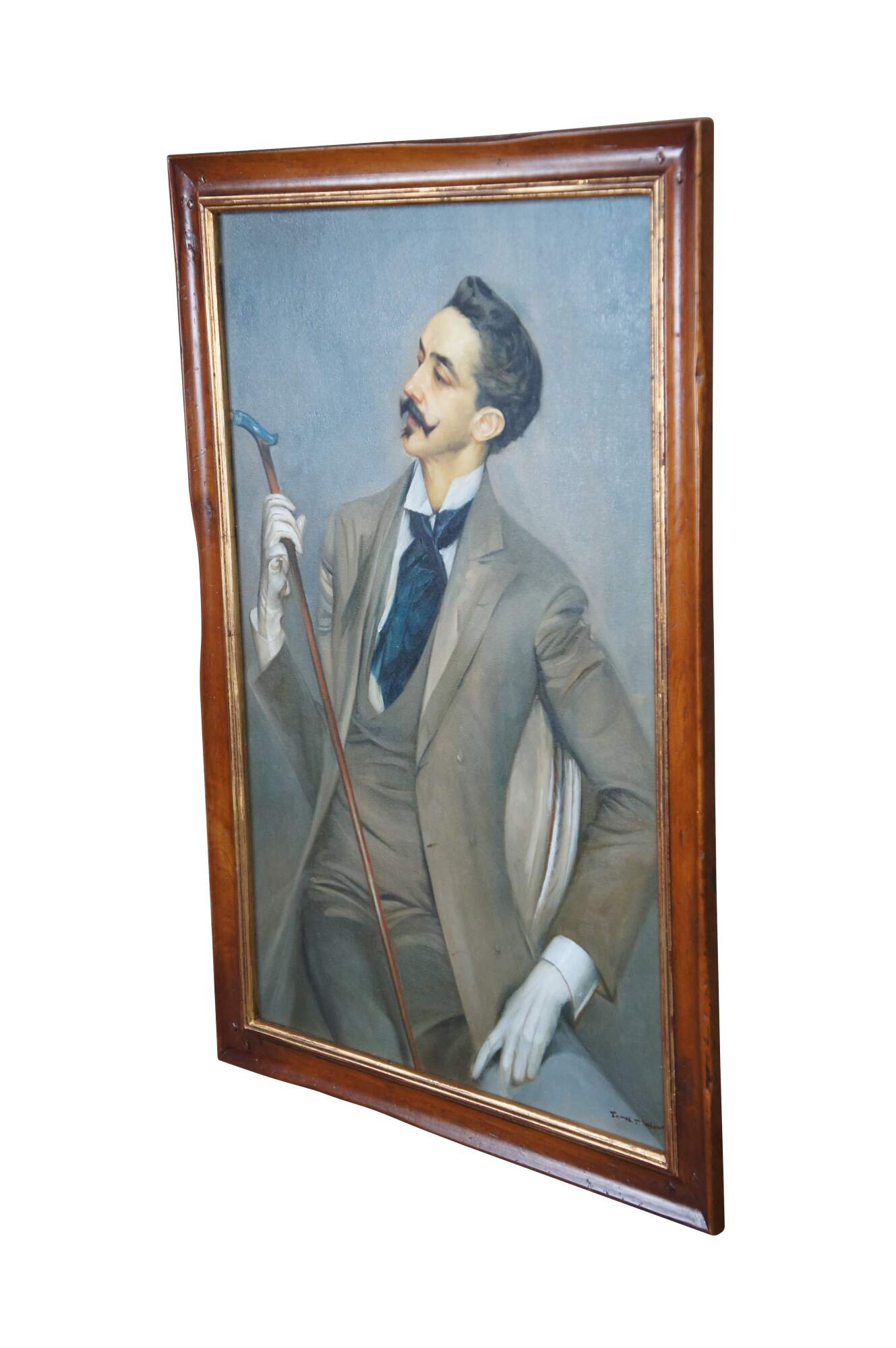 A reproduction oil painting of Robert de Montesquiou After Givanno Boldini, circa last quarter 20th century. Signed lower right by James T. Whitmas. Framed in pin with beveled interior and gold trim.