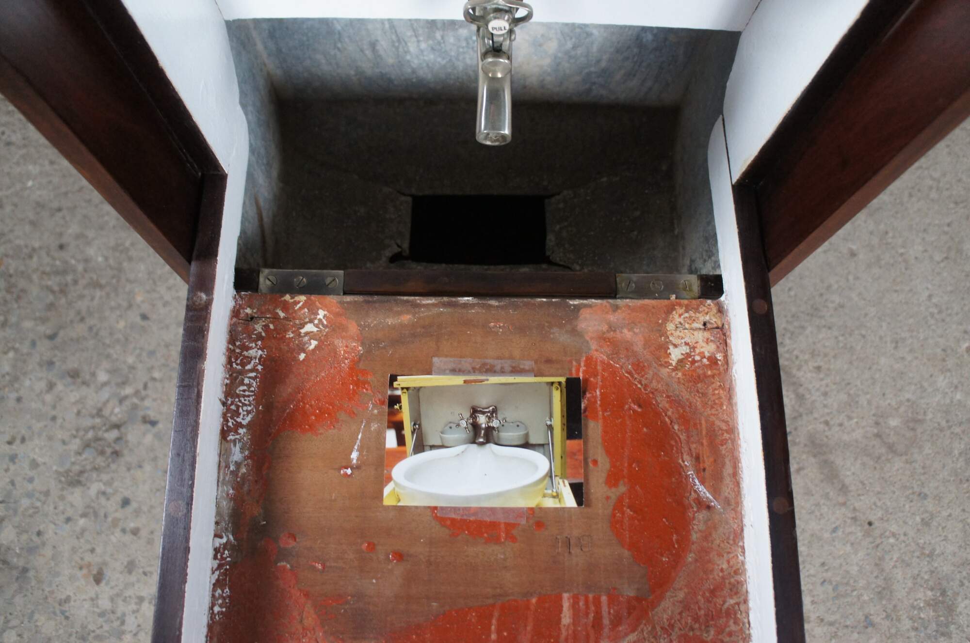 Fair antique condition, wear and distressing from age and use, sink and attachments need affixed, drawer latches and pulls need work.